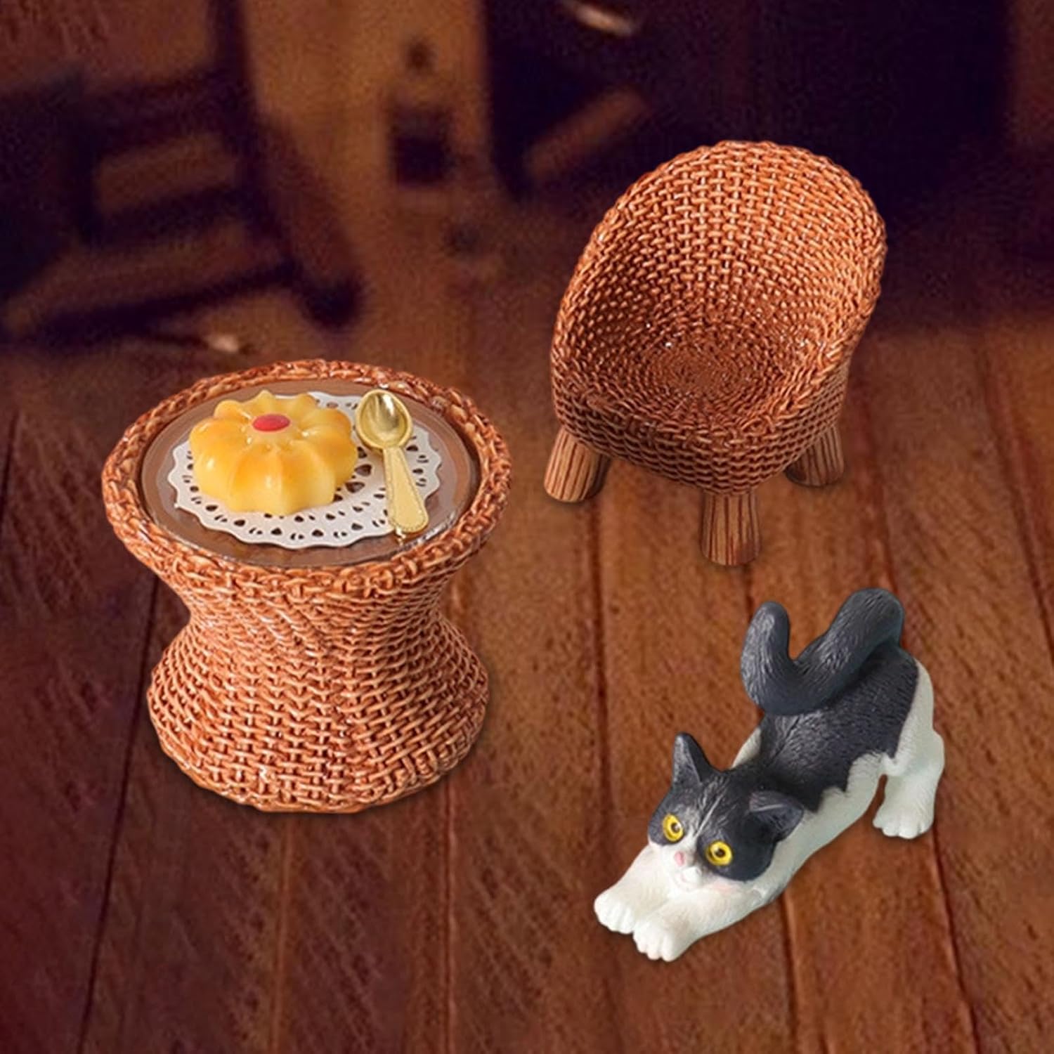 【Materiale】: Mobili per case delle bambole realizzati in resina e lega, questo divano per case delle bambole è robusto e duraturo 【Multiuso】I set da tavolo da pranzo in miniatura sono adatti per costruire giocattoli con scenari di tavoli di sabbia, modellini di treni, modelli architettonici, giardini delle fate, micro paesaggi, modelli di scene fai-da-te, ecc. 【Design classico】: la decorazione della scena in miniatura include tavolo, sedia, piatto di cibo, tovaglietta e 【Progetti fai da te】: il tavolino e la sedia in miniatura sono un'ottima decorazione per la tua casa delle bambole, creando scene di vita 【Adorabile figurina di gatto】: questa mini figurina di gatto aggiunge un tocco di stravaganza e personalità alla tua scena, rendendola la compagna perfetta per i residenti della tua casa delle bambole o un pezzo eccezionale nella tua collezione