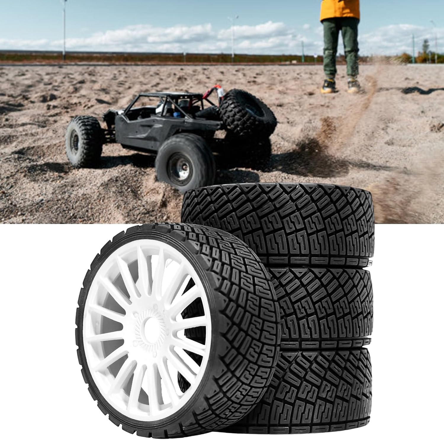 Indipendentemente da ciò, si naviga in percorsi al coperto o all'aperto all'aperto sono affrontati, questi pneumatici offrono un'ottima presa e manovrabilità per giochi competitivi e avventure su strada Facile da installare: i pneumatici sono facili da installare 4 pneumatici per WRC 1/7 e 1/8 Model Crawlers Aspetto: nuovo aspetto e squisita fattura Funzione: Questi sono facili a peso, stabilità e velocità aumentanti del veicolo