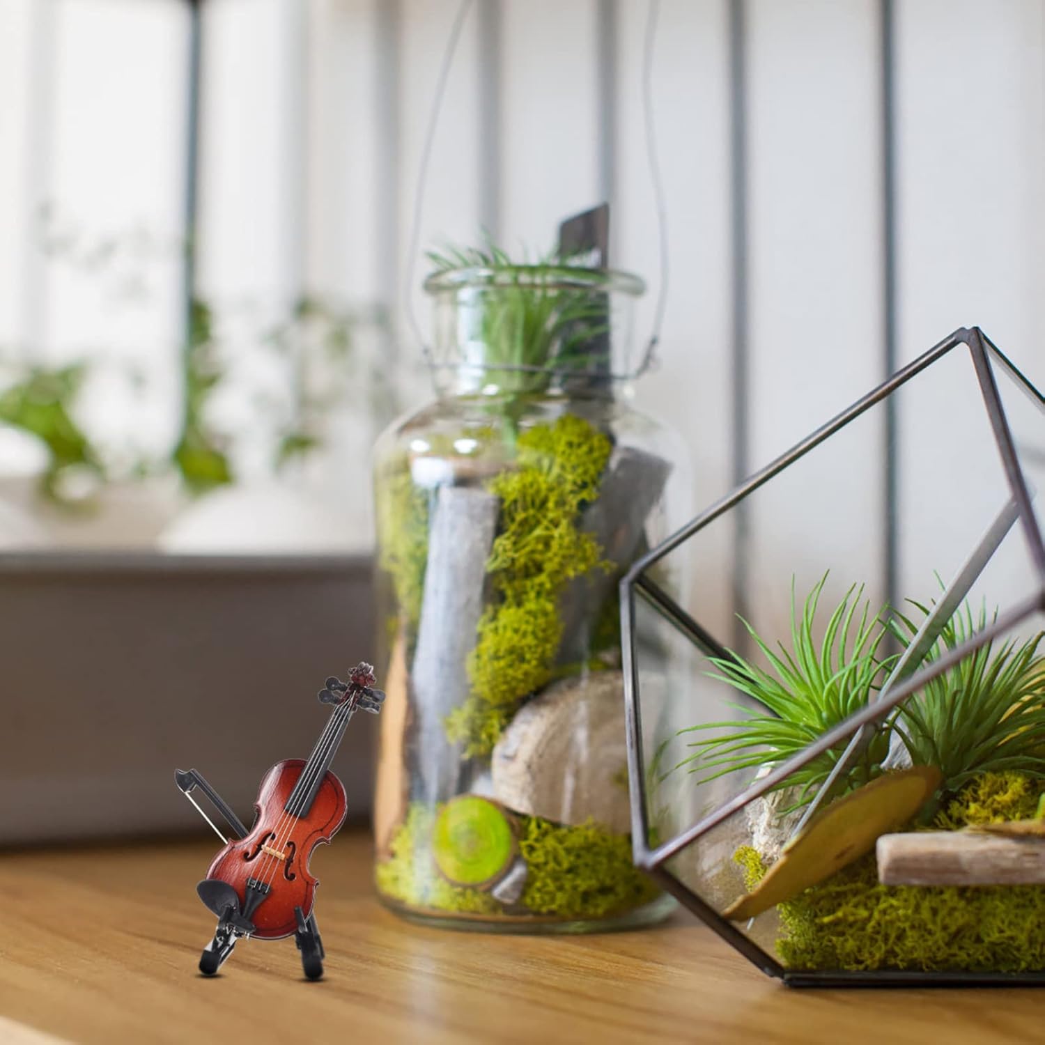Piccolo strumento - esalta lo stile del tuo modello di violino in miniatura, romantico ed elegante Piccolo - questo piccolo modello di violino è un ottimo pezzo decorativo da esporre sulla tua scrivania, tavolo da ufficio, violino in miniatura Accessori per violino - l'incantevole design del piccolo violino lo rende più attraente e aggiunge un piacevole tocco all'ornamento della tua scrivania, modello mini violino - puoi usarlo come eccellente desktop per la casa o come creativo per il tuo amico Usa, piccolo strumento musicale Violino Mini - Questo modello di violino in miniatura è realizzato in legno e con lavorazione della superficie verniciata, mini violini
