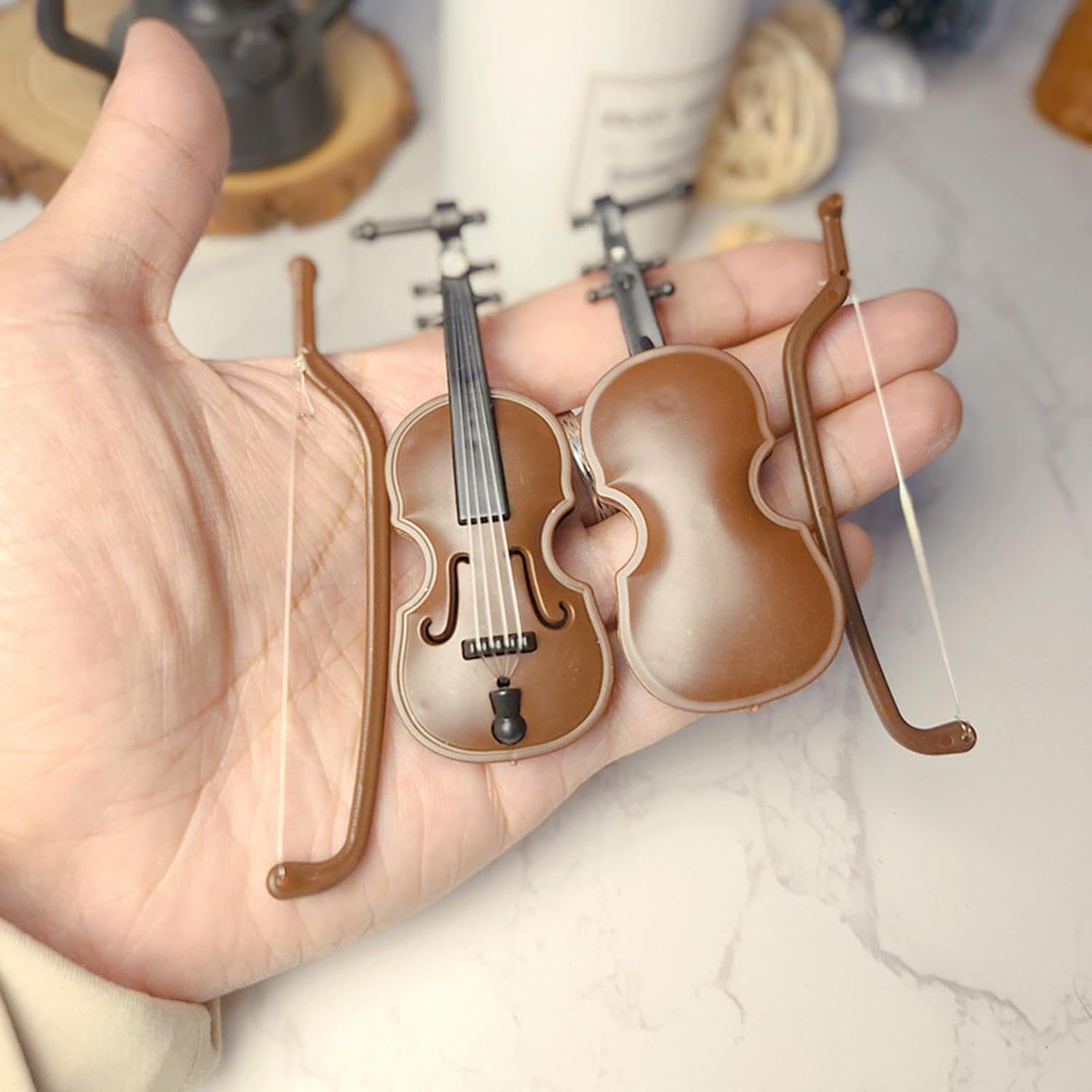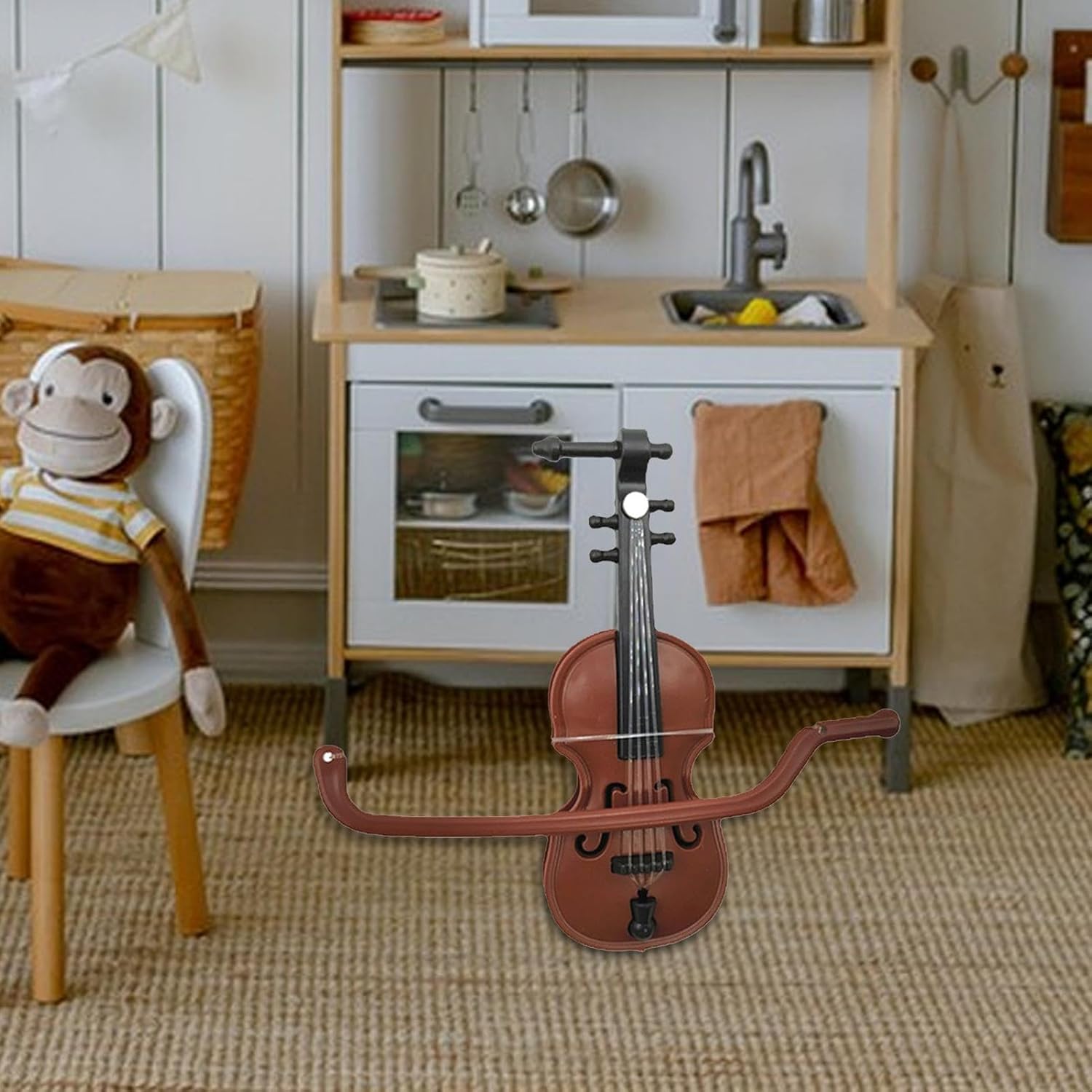 Migliora la scena musicale in miniatura: perfettamente realizzato con una dimensione piccola e squisita di 8,3 x 3,2 x 1,5 cm. Questo modello di violino di simulazione giocattolo aggiunge squisitezza ed è adatto per il posizionamento nelle scene della casa delle bambole. Migliora il realismo della scena: migliora l'atmosfera di qualsiasi ambiente con questo modello di violino giocattolo. I suoi intricati dettagli di design e l'aspetto vivido possono migliorare il realismo e il valore decorativo di qualsiasi arredamento, rendendolo un'aggiunta attraente alla tua collezione. Costruzione robusta: la sicurezza dei bambini durante il gioco è garantita dalla costruzione solida e infrangibile di questo violino giocattolo, realizzato interamente in materiale PP di alta qualità. Incoraggia il gioco fantasioso: i bambini possono ora liberare il loro musicista interiore con questo modello di violino giocattolo che promuove l'interesse musicale e le abilità pratiche di gioco. Questo giocattolo è una scelta eccellente per il gioco di ruolo, stimola la creatività e l'immaginazione ed è perfetto per qualsiasi scenario di casa delle bambole. Illumina il tuo spazio: con il suo design realistico, questo violino giocattolo incoraggia il gioco fantasioso e ispira l'amore per la musica nei bambini. Un ornamento in miniatura altamente decorativo, è perfetto per aggiungere fascino alle scene delle case delle bambole, alle scrivanie e agli scaffali