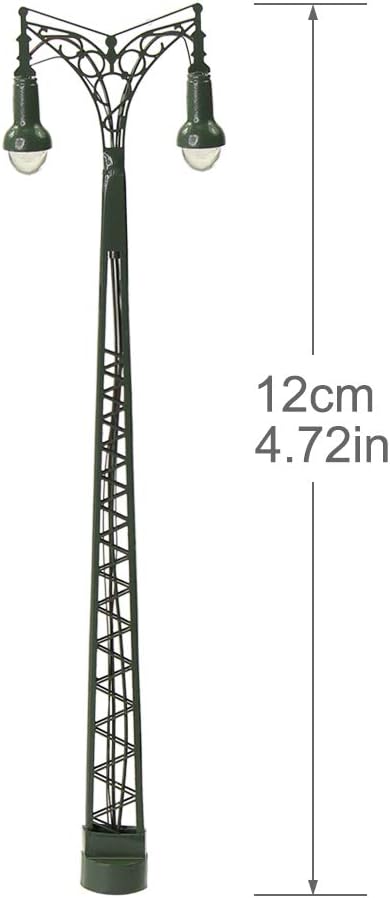 Dimensioni: come mostra l'immagine. ca. 12cm(H):1:87, adatto per scartamento h0. Voltaggio operativo: compatibile 3V, AC o DC. Corrente operativa: 20 mA. Colore chiaro: bianco caldo. NON utilizzarli direttamente su 12V o 16V per evitare di danneggiare il LED. Il prodotto è alimentato da batterie