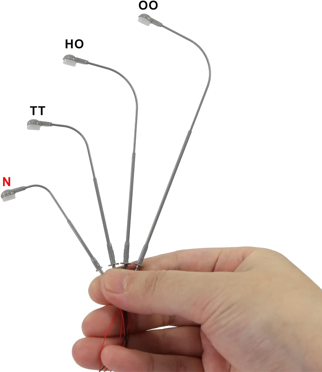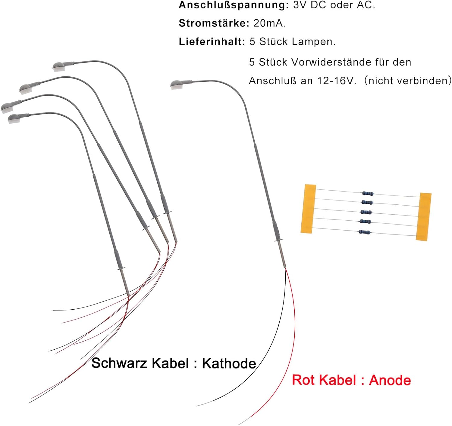 Scala: 1:160, adatta per binario N. Contenuto della spedizione: 5 lampade (con paralume.) 5 resistenze in serie per il collegamento a 12-16 V.