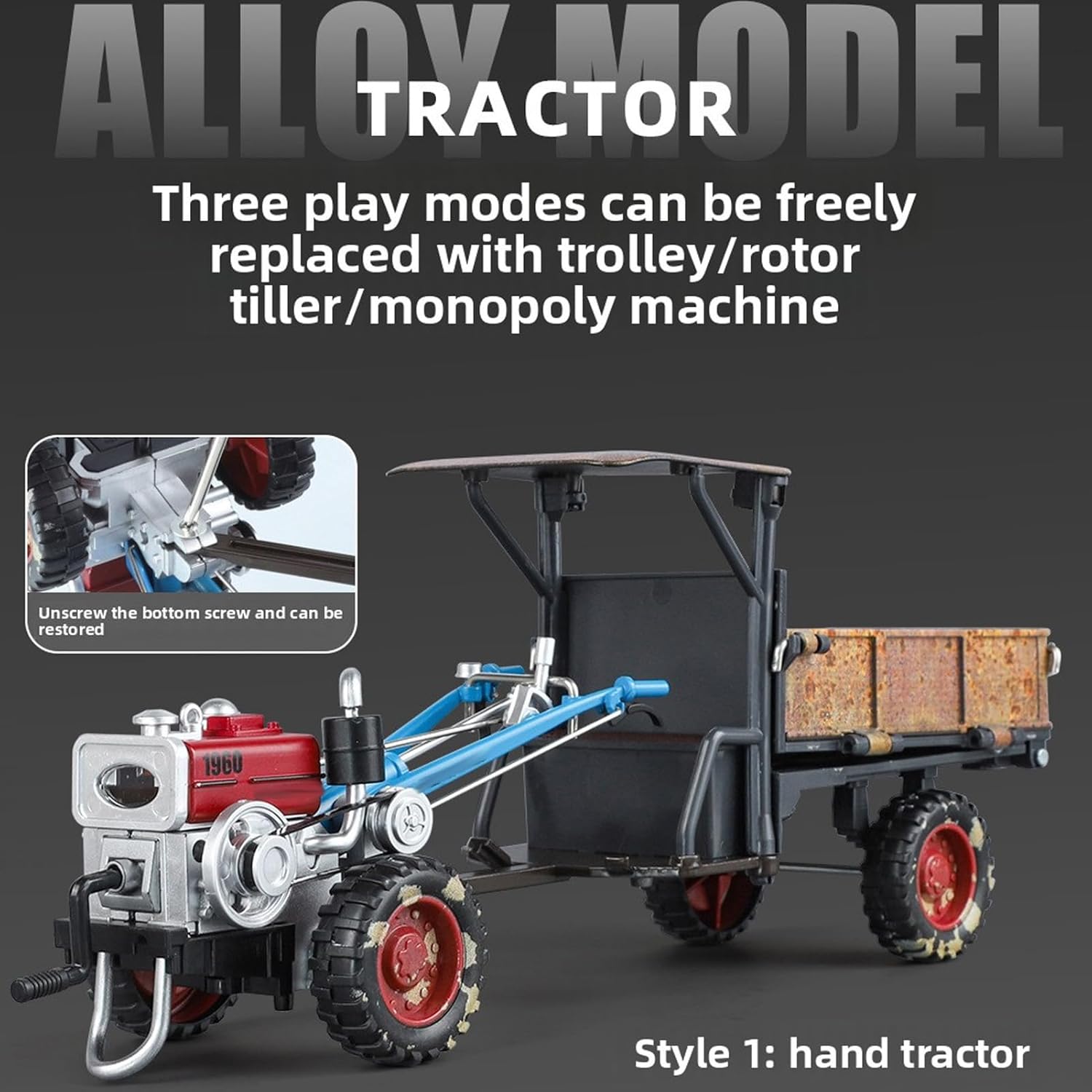 [VIBRAZIONI VINTAGE] Viaggia indietro nel tempo con il design nostalgico di questo modello giocattolo di trattore manuale vintage, per collezionisti. [ASSEMBLEA EMOZIONANTE] Divertiti con il kit 3 in 1 che offre vari strumenti agricoli da costruire, creando un'esperienza divertente e coinvolgente. [FACILE DA USARE] Divertiti senza problemi con il design a manovella che non richiede batterie ed è adatto a giocatori di tutte le età. [COLLEZIONE UNICA] Distinguiti dalla massa con questo caratteristico trattore agricolo, aggiungendo carattere e fascino a qualsiasi collezione. [COSTRUZIONE ROBUSTA] Realizzato con materiali in lega di alta qualità, questo giocattolo per veicoli agricoli è robusto e durevole, garantendo un divertimento duraturo per gli utenti.