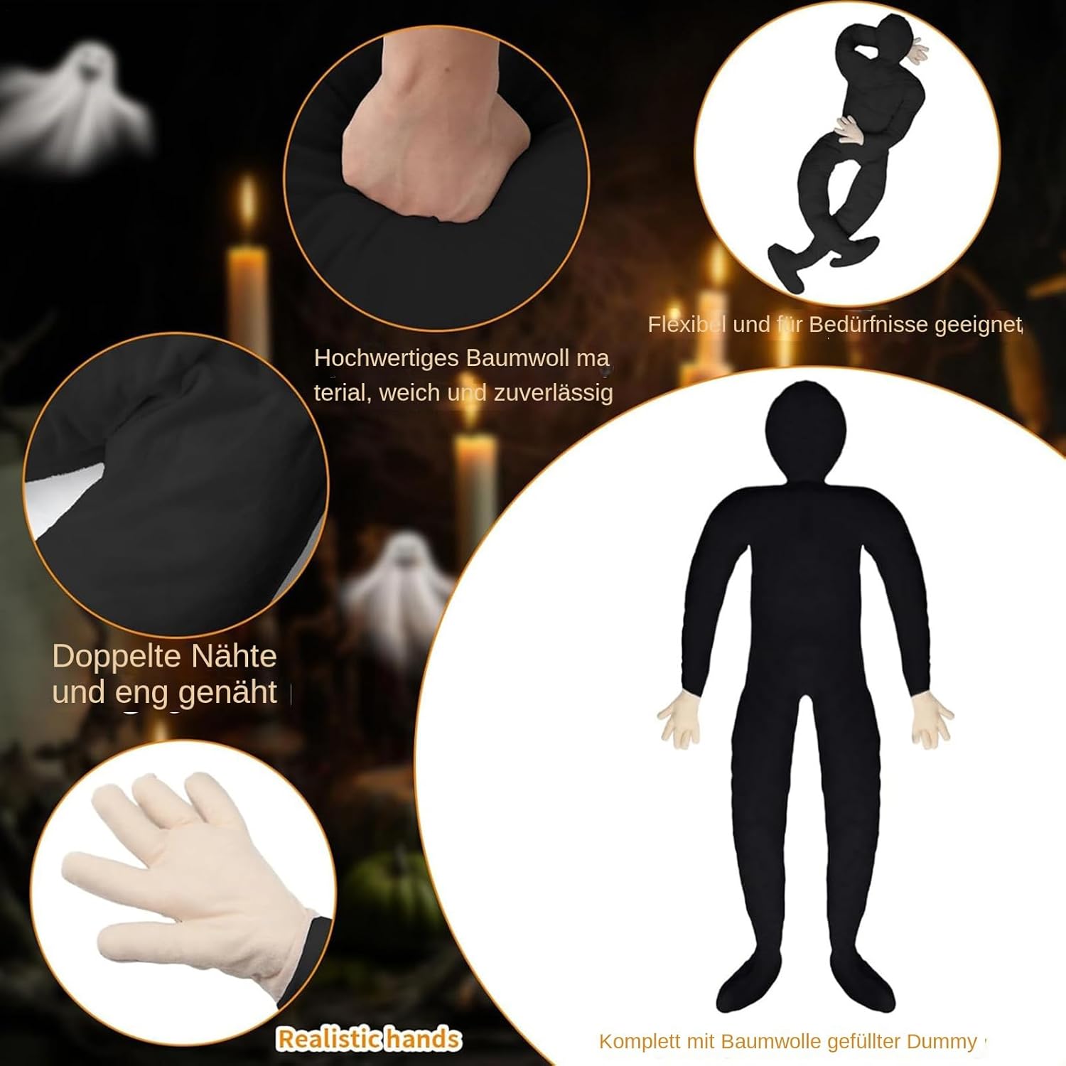 Mobilità naturale: tessuto flessibile e corpo in poliuretano realistico per una facile regolazione, l'eliminazione della rigidità e la valutazione di schizzi come le decorazioni di Halloween sviluppate. Mani naturali: combinazione strategica di mani flessibili imbottite ed effetti spettrali in questo modello completo, che consente costumi di Halloween visivamente accattivanti con un'installazione semplificata Efficace effetto cadavere: modello di Halloween con aspetto cadavere realistico per l'atmosfera macabra, si trova da solo e facilita la creazione di scene del crimine spaventose senza l'assemblea necessaria. Impatto garantito: elemento chiave per trasformare istantaneamente qualsiasi stanza in un'esperienza indimenticabile e terribile. Stimola forti emozioni durante le celebrazioni autunnali senza richiedere configurazioni complesse. Una soluzione terrificante: ottieni immagini terribili grazie agli effetti spettrali. Progettato per gli appassionati di cosplay di Halloween con una texture flessibile e flessibile. Struttura gonfiabile da 1,8 metri per garantire una trasformazione terribile completa dalla testa ai piedi.