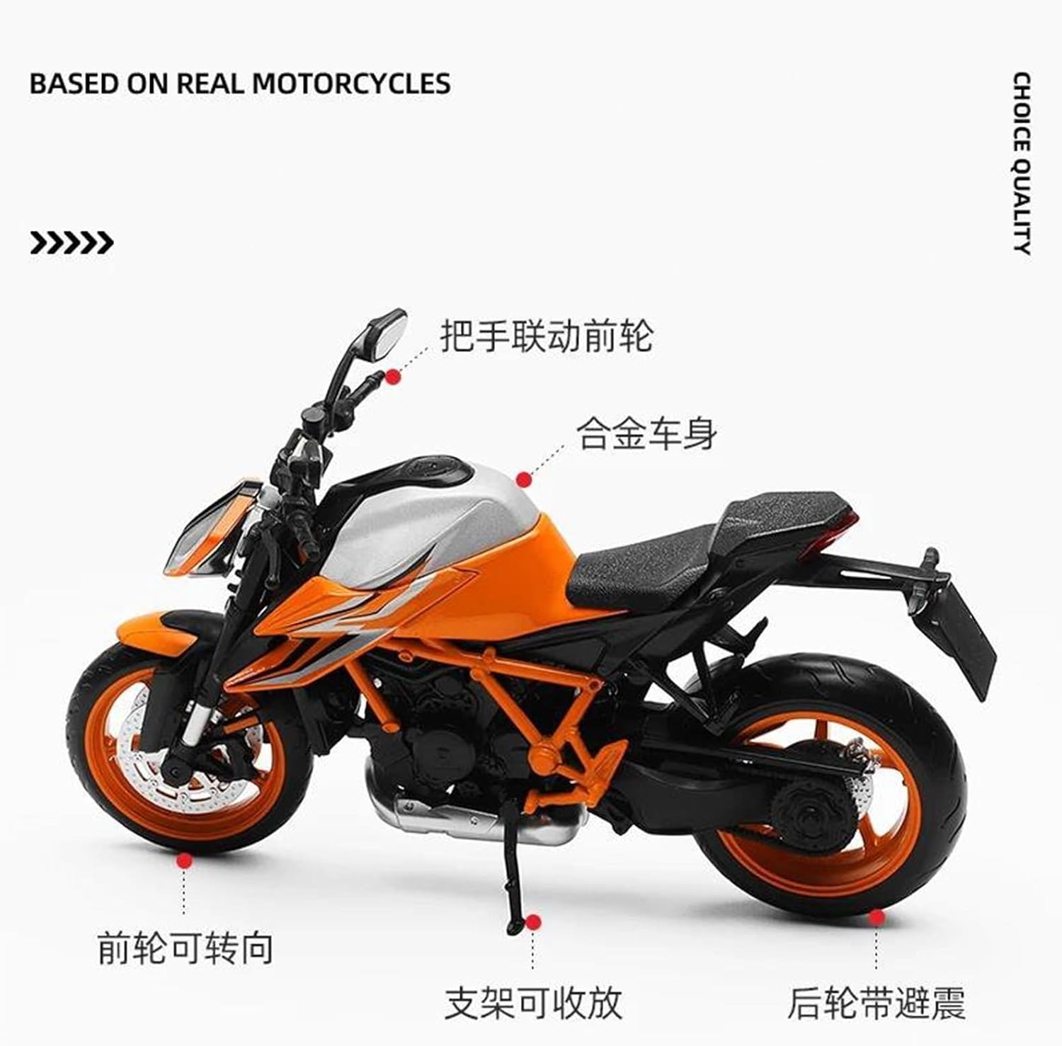 Grazie alla sua pregevole fattura, il modello di moto è un bellissimo pezzo da esposizione per i collezionisti. Visualizzazione del valore della collezione regalo di simulazione di motociclette 1:12 per 1290 per Super per Duke R Decorazione e visualizzazione estetica: il modello di moto è realizzato in metallo. Con la sua lavorazione squisita, le linee morbide e la forma ricreata, diventa un punto culminante decorativo per la casa, l'ufficio o il negozio, testimoniando l'amore del proprietario per la cultura motociclistica o il suo gusto personale. Strumento scientifico pratico: il modello di motocicletta mostra in modo intuitivo la struttura principale della motocicletta (come motore, telaio, sospensioni, cambio, ecc.), aiutando i giovani o gli appassionati di meccanica a comprendere i principi meccanici. Il modello di moto è un ottimo regalo per ogni amante della moto.