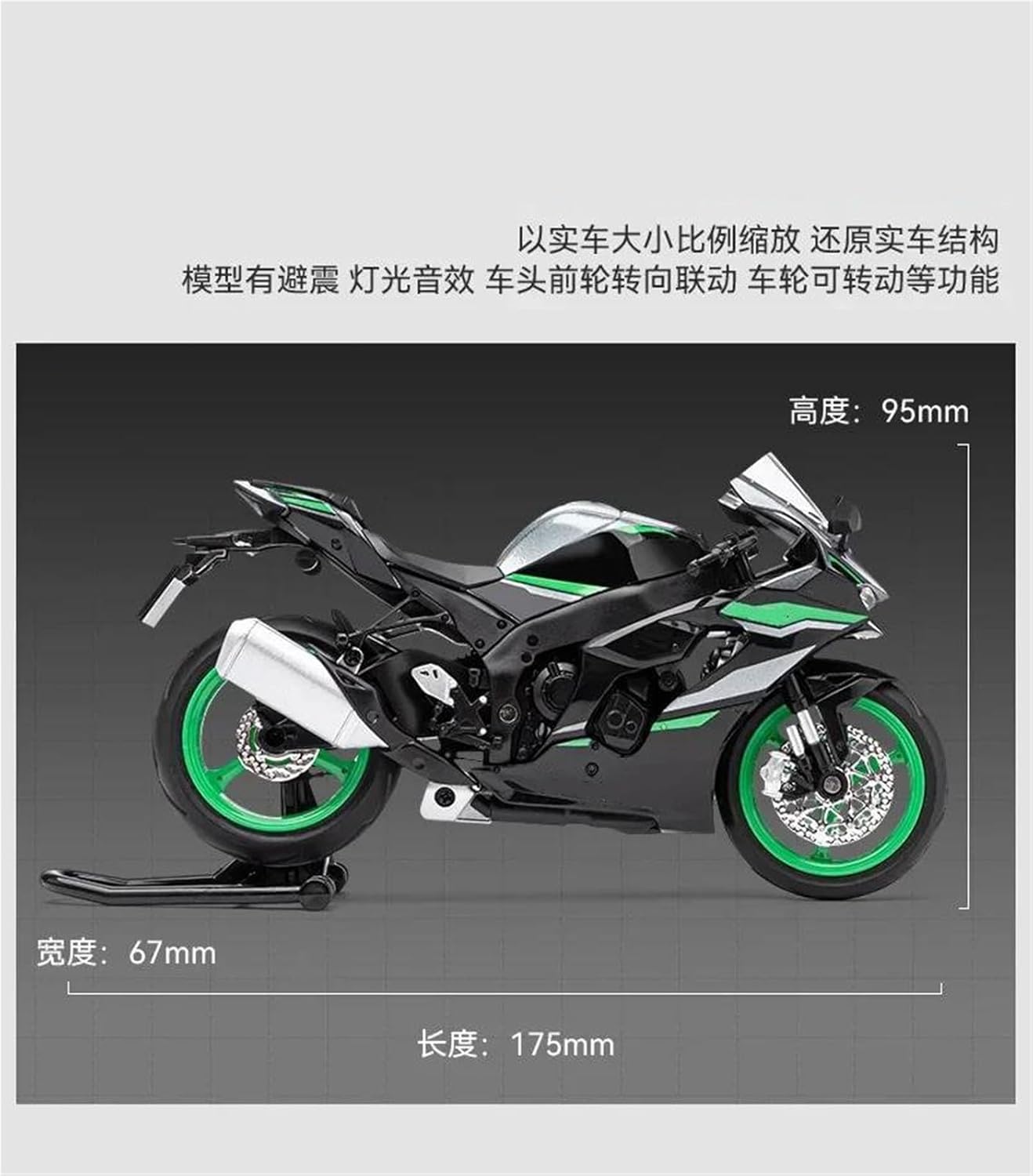 Questo è il tuo modello di moto preferito. 1:12 Per Moto Per Kawasaki ZX-10R Veicoli Pressofusi Collezionabili Hobby Modellini Di Motociclette Giocattoli Decorazione ed estetica: il modello di motocicletta è realizzato in metallo. Grazie alla sua squisita fattura, alle linee morbide e alla forma simulata, diventa un elemento decorativo di spicco per la casa, l'ufficio o il negozio, dimostrando l'amore del proprietario per la cultura motociclistica o il suo gusto personale. Strumento di divulgazione scientifica: il modello di motocicletta può mostrare in modo intuitivo la struttura principale della motocicletta (ad esempio: motore, telaio, sospensioni, cambio, ecc.), aiutando i giovani o gli appassionati di meccanica a comprenderne i principi meccanici. Se hai domande, puoi inviarci un'e-mail in qualsiasi momento!