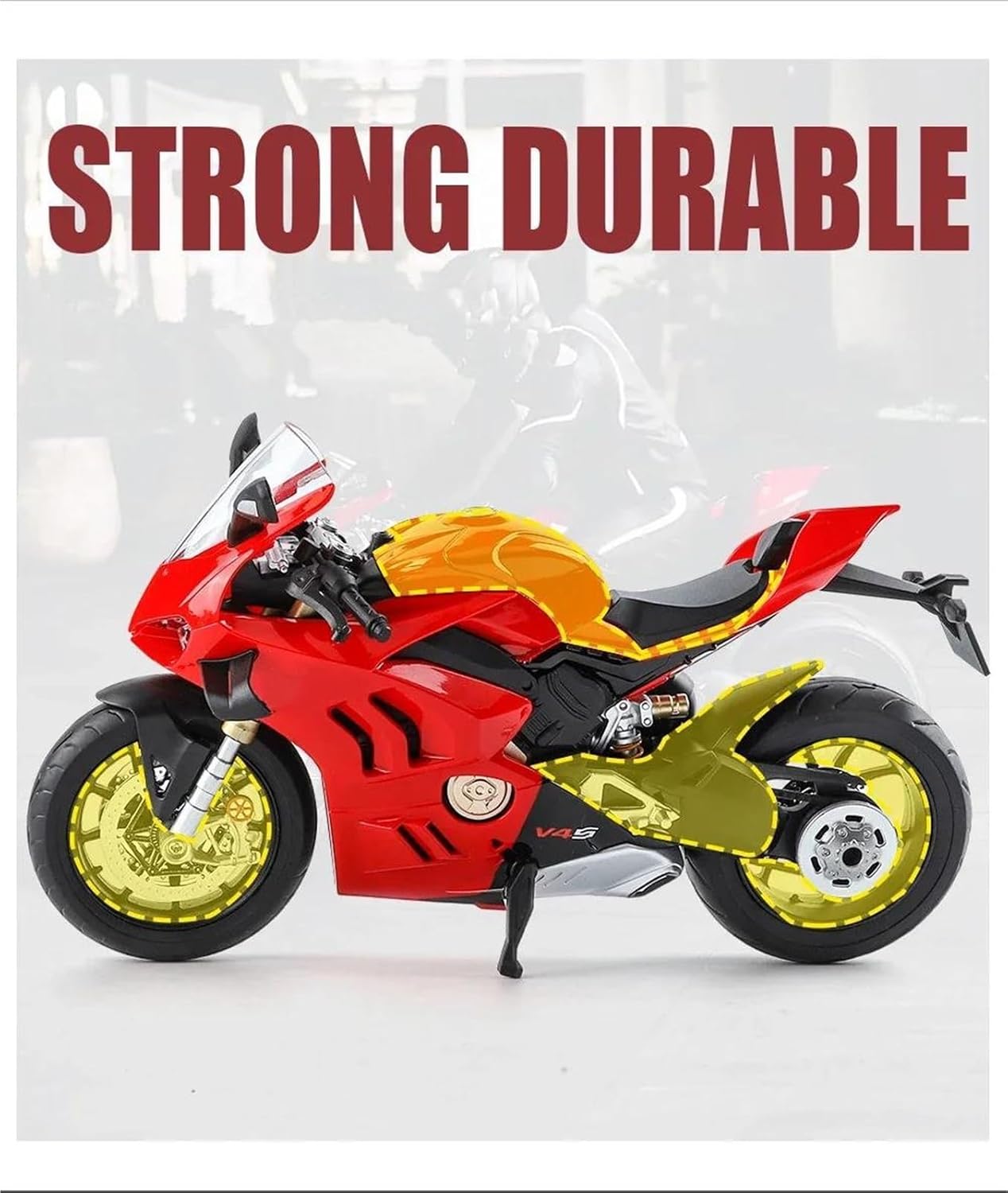 Questo è il tuo modello di moto preferito. Modellino Di Motocicletta 1:9 Pressofuso, Portatile, Da Corsa, Da Dito, Giocattolo Da Collezione, Per Ducati Panigale V4S Decorazione ed estetica: il modello di motocicletta è realizzato in lega e plastica. Grazie alla sua squisita fattura, alle linee morbide e alla forma simulata, diventa un elemento decorativo di spicco per la casa, l'ufficio o il negozio, dimostrando l'amore del proprietario per la cultura motociclistica o il suo gusto personale. Strumento di divulgazione scientifica: il modello di motocicletta può mostrare in modo intuitivo la struttura principale della motocicletta (ad esempio: motore, telaio, sospensioni, cambio, ecc.), aiutando i giovani o gli appassionati di meccanica a comprenderne i principi meccanici. Se hai domande, puoi inviarci un'e-mail in qualsiasi momento!