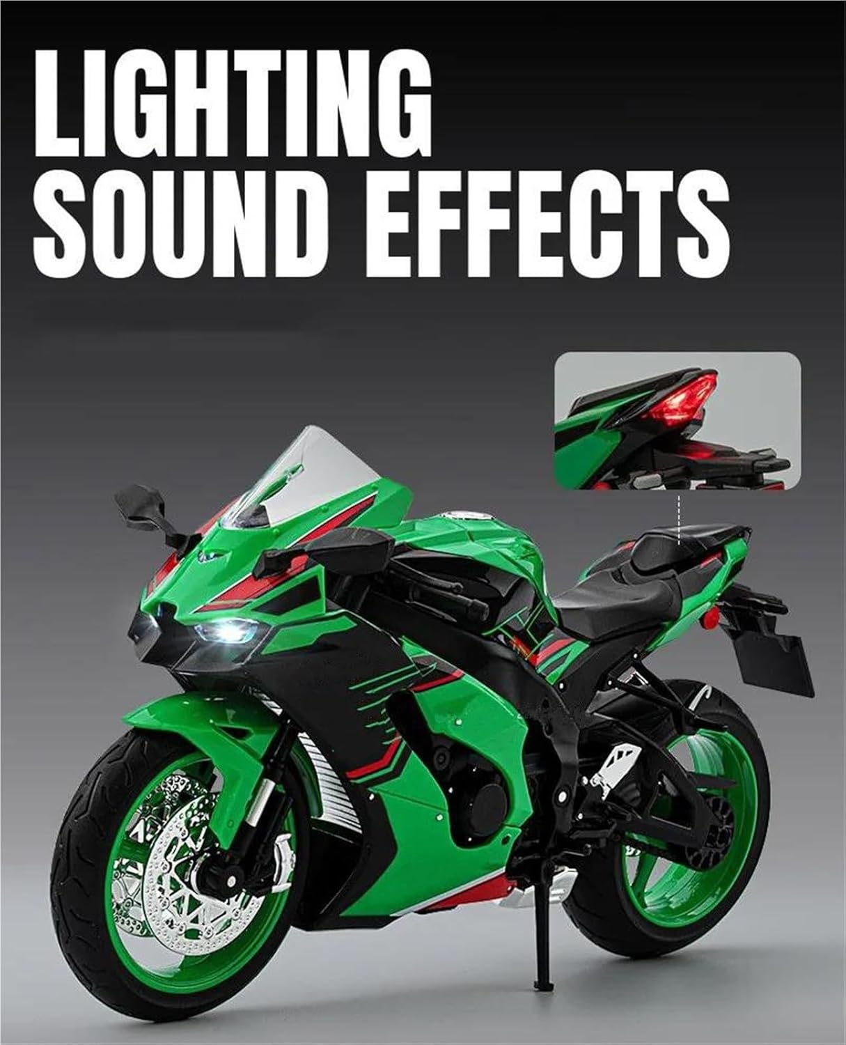 Questo è il tuo modello di moto preferito. Modellino Di Motocicletta Da Corsa In Scala 1:9 Con Suoni E Luci, Giocattolo Per La Casa, Decorazione D'interni, Regalo Di Compleanno Per Kawasaki ZX-10R Decorazione ed estetica: il modello di motocicletta è realizzato con carrozzeria in metallo + telaio in plastica + pneumatici in gomma. Grazie alla sua squisita fattura, alle linee morbide e alla forma simulata, diventa un elemento decorativo di spicco per la casa, l'ufficio o il negozio, dimostrando l'amore del proprietario per la cultura motociclistica o il suo gusto personale. Strumento di divulgazione scientifica: il modello di motocicletta può mostrare in modo intuitivo la struttura principale della motocicletta (ad esempio: motore, telaio, sospensioni, cambio, ecc.), aiutando i giovani o gli appassionati di meccanica a comprenderne i principi meccanici. Se hai domande, puoi inviarci un'e-mail in qualsiasi momento!