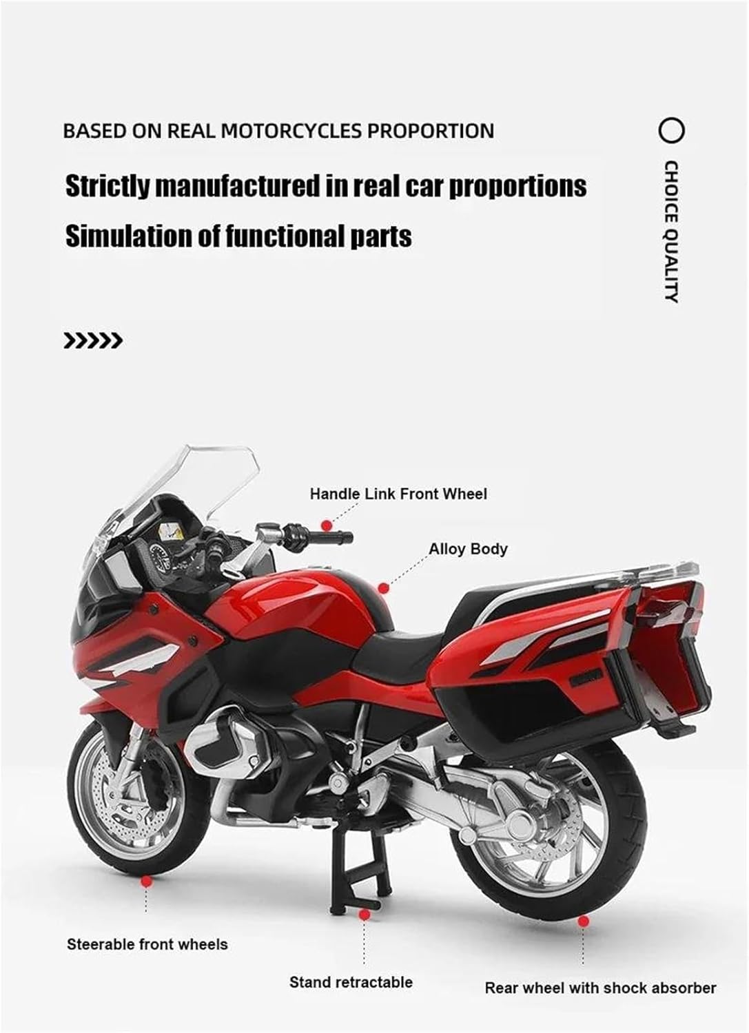 Questo è il tuo modello di moto preferito. Modellino Pressofuso Statico In Scala 1/12 Per BMW R1250RT, Modello Di Moto Giocattolo In Lega Da Collezione Decorazione ed estetica: il modello di motocicletta è realizzato in metallo. Grazie alla sua squisita fattura, alle linee morbide e alla forma simulata, diventa un elemento decorativo di spicco per la casa, l'ufficio o il negozio, dimostrando l'amore del proprietario per la cultura motociclistica o il suo gusto personale. Strumento di divulgazione scientifica: il modello di motocicletta può mostrare in modo intuitivo la struttura principale della motocicletta (ad esempio: motore, telaio, sospensioni, cambio, ecc.), aiutando i giovani o gli appassionati di meccanica a comprenderne i principi meccanici. Se hai domande, puoi inviarci un'e-mail in qualsiasi momento!