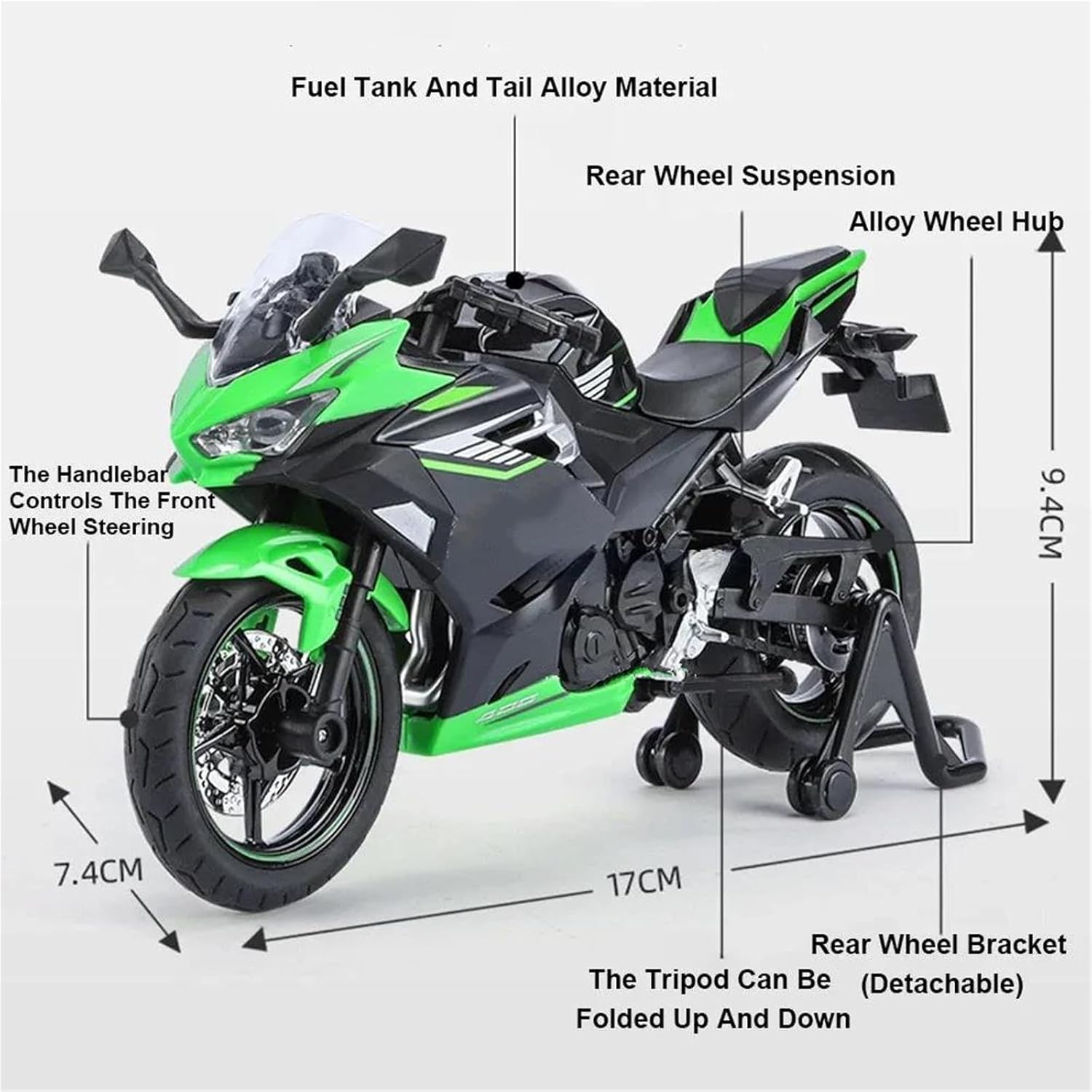 Questo è il tuo modello di moto preferito. Modellino Pressofuso Statico In Scala 1:12 Per Kawasaki 400, Modello Di Motocicletta Giocattolo In Lega Da Collezione Decorazione ed estetica: il modello di motocicletta è realizzato in metallo. Grazie alla sua squisita fattura, alle linee morbide e alla forma simulata, diventa un elemento decorativo di spicco per la casa, l'ufficio o il negozio, dimostrando l'amore del proprietario per la cultura motociclistica o il suo gusto personale. Strumento di divulgazione scientifica: il modello di motocicletta può mostrare in modo intuitivo la struttura principale della motocicletta (ad esempio: motore, telaio, sospensioni, cambio, ecc.), aiutando i giovani o gli appassionati di meccanica a comprenderne i principi meccanici. Se hai domande, puoi inviarci un'e-mail in qualsiasi momento!