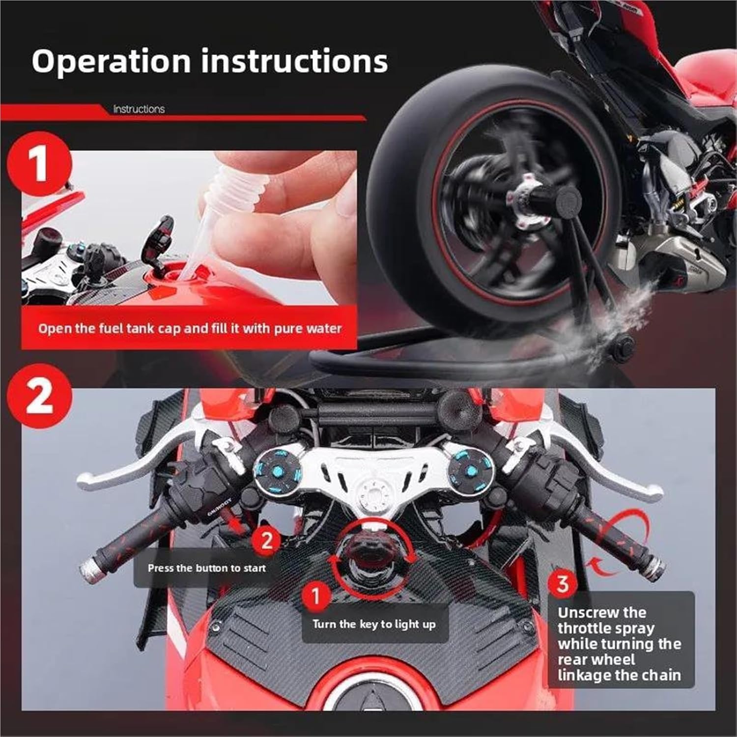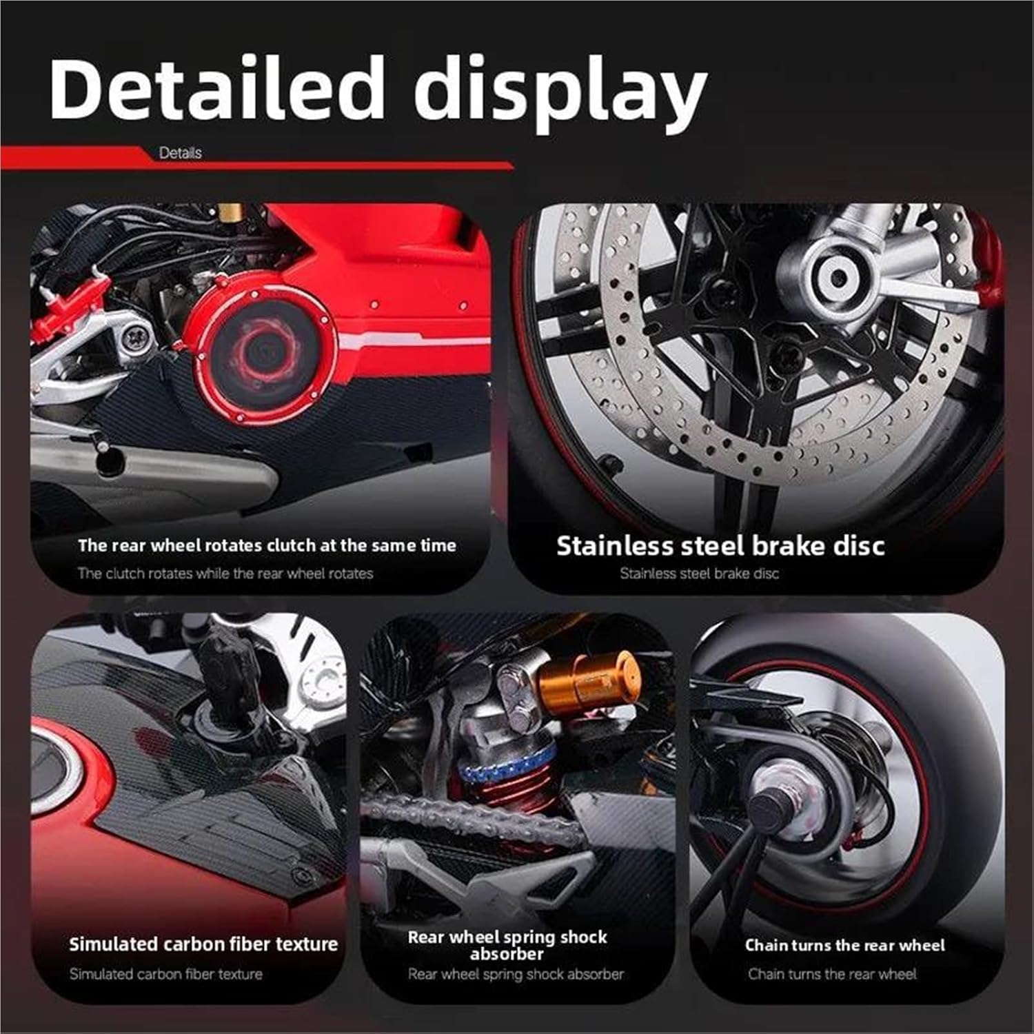Questo è il tuo modello di moto preferito. Spray Pressofuso 1:7 Per Ducati Per Superleggera V4 Per Super Modellino Di Moto Da Collezione, Miniatura, Ornamento, Regalo, Giocattolo Decorazione ed estetica: il modello di motocicletta è realizzato in metallo. Grazie alla sua squisita fattura, alle linee morbide e alla forma simulata, diventa un elemento decorativo di spicco per la casa, l'ufficio o il negozio, dimostrando l'amore del proprietario per la cultura motociclistica o il suo gusto personale. Strumento di divulgazione scientifica: il modello di motocicletta può mostrare in modo intuitivo la struttura principale della motocicletta (ad esempio: motore, telaio, sospensioni, cambio, ecc.), aiutando i giovani o gli appassionati di meccanica a comprenderne i principi meccanici. Se hai domande, puoi inviarci un'e-mail in qualsiasi momento!