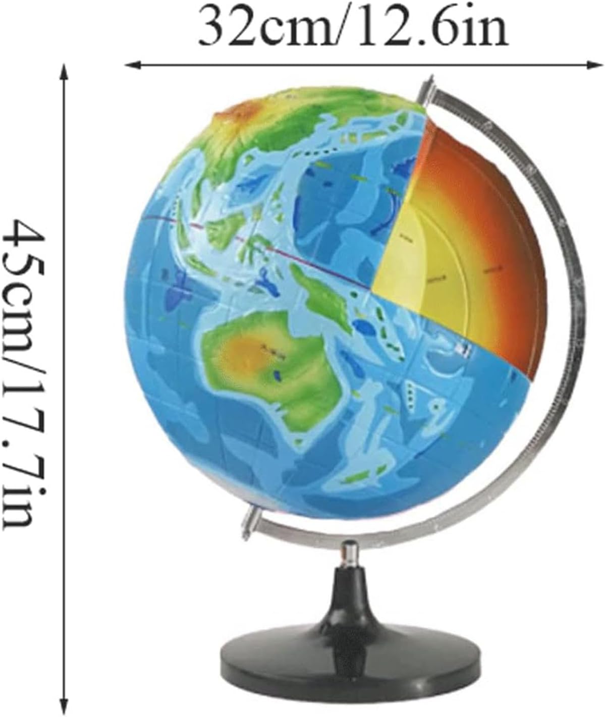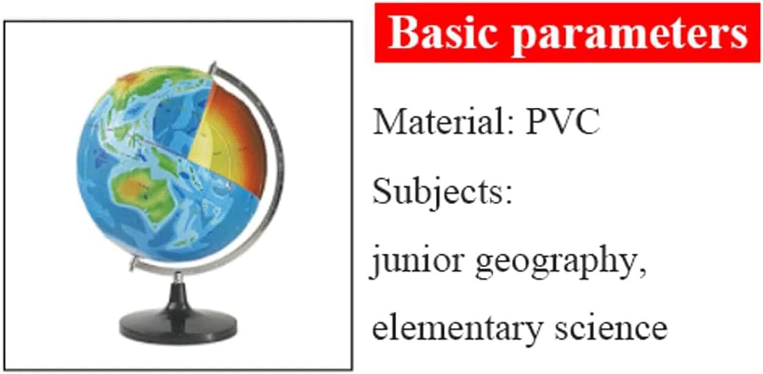 ★【Tema struttura della terra】: La nostra nuova serie scientific earth fornisce modelli di globo 3d che raffigurano la struttura della terra in sezione trasversale per stimolare l'interesse per le scienze naturali. ★【Materiale e dimensioni】: La superficie della sfera mostra approssimativamente il modello topografico della superficie terrestre. È composto da una sfera in pvc, un righello in metallo e una base. Altezza 45 cm/17,7 pollici, larghezza 32 cm/12,6 pollici ★ 【Categoria di prodotto】: Modelli della struttura interna della terra (nucleo interno, nucleo esterno, mantello e crosta) ★【Usi】: Utilizzato per dimostrazioni didattiche, per comprendere la struttura interna della crosta lenta del nucleo terrestre; per aiutare gli studenti a comprendere la struttura del terreno accidentato della superficie terrestre. ★ 【Aspetto realistico】: Costruisci la tua replica del kit modello earth world globe, ottieni un grande senso di realizzazione una volta completato. È un ottimo arredamento per la casa, l'aula o l'ufficio
