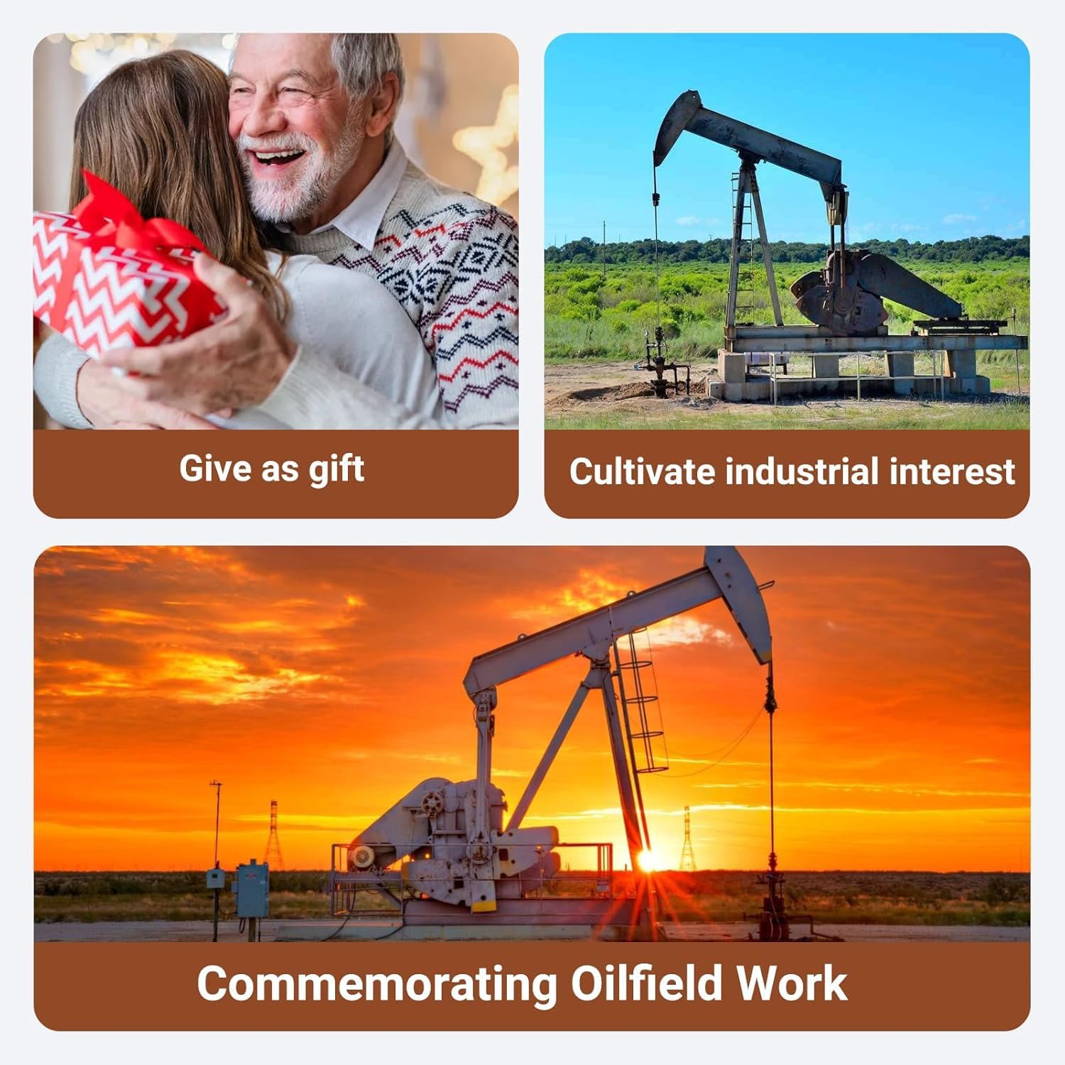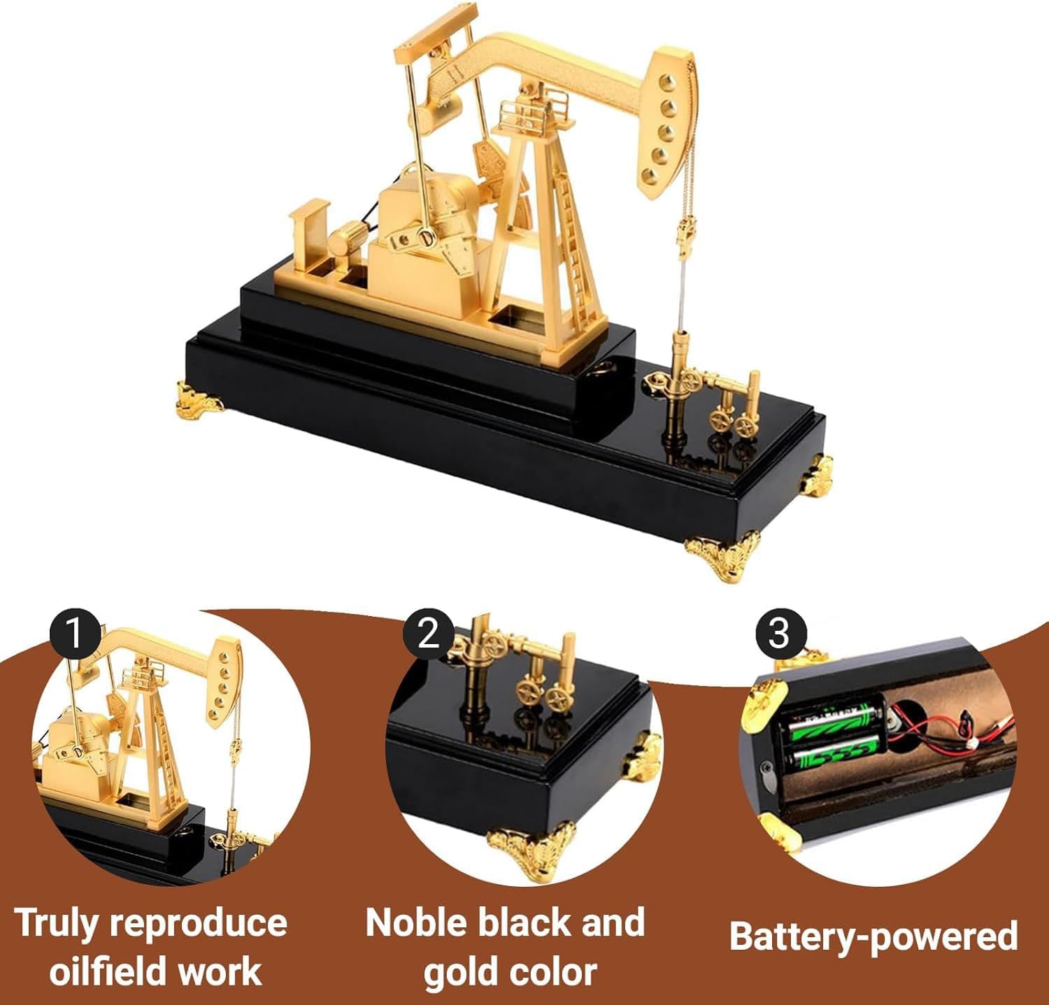[MODELLO DI POMPA DELL'OLIO ALTAMENTE DETTAGLIATO] Realizzato in lega di zinco di alta qualità, questo modello è placcato in oro per una finitura realistica e una rappresentazione fedele di una pompa dell'olio funzionante. [FUNZIONAMENTO FLUIDO E SENZA SFORZO] Guarda la pompa ruotare continuamente a una velocità di 10-12 giri al minuto, imitando il movimento naturale di una vera pompa dell'olio. [DESIGN ICONICO ISPIRATO ALLA STORIA INDUSTRIALE] Questo modello si ispira a un'invenzione classica della tecnologia industriale e arricchisce la tua collezione con un pezzo di storia dell'ingegneria. [REGALO IDEALE PER COLLEZIONISTI ED EDUCATORI] Questo modello è ideale per chiunque sia interessato alla meccanica industriale, all'ingegneria o all'estrazione del petrolio ed è un ottimo regalo per collezionisti o per scopi didattici. [DESIGN ICONICO ISPIRATO ALLA STORIA INDUSTRIALE] Questo modello si ispira a un'invenzione classica della tecnologia industriale e arricchisce la tua collezione con un pezzo di storia dell'ingegneria.
