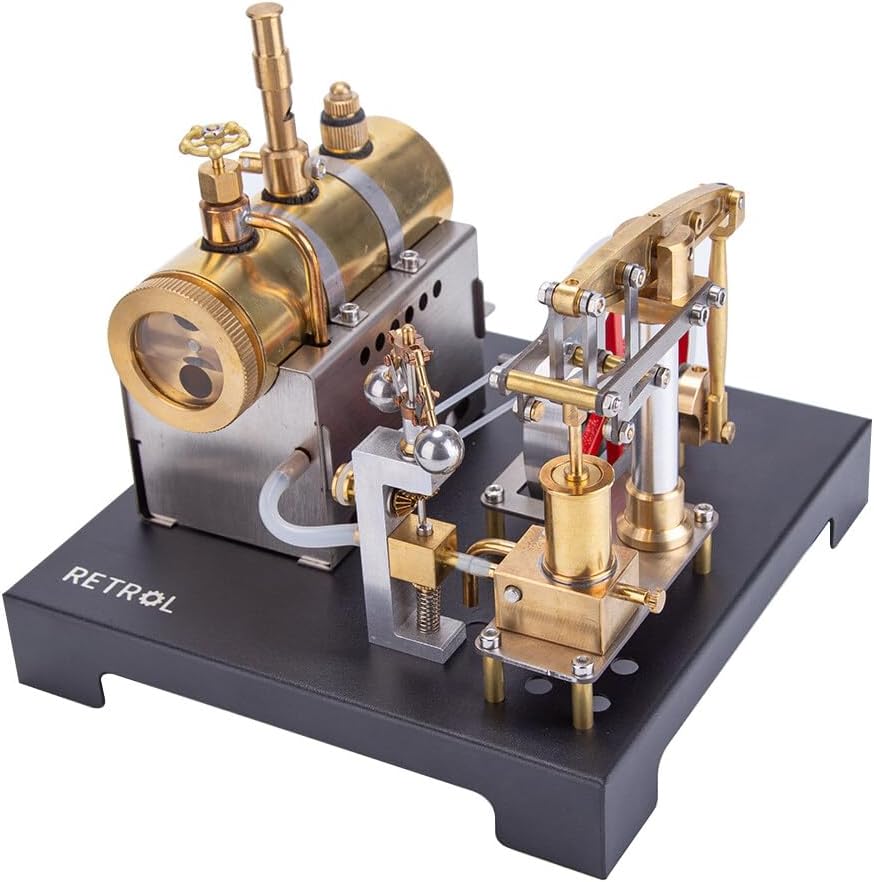Struttura del motore verticale a doppio cilindro: dotata di due pistoni coordinati per un funzionamento più fluido e un migliore equilibrio in condizioni di vapore vivo. PISTONE CON ALBERO MOTORE DINAMICO: presenta un albero motore semicircolare bilanciato dinamicamente che migliora l'efficienza del movimento e il realismo. Costruzione fai da te completamente in metallo di alta qualità: realizzata in ottone resistente e acciaio inossidabile con giunti e parti dettagliate, perfetto per il montaggio a mano. Ottimo per dimostrazioni di fisica: visualizza i principi di pressione, equilibrio ed energia cinetica, ideale per uso educativo e da collezione. Un regalo raffinato per gli appassionati di ingegneri: un modello a vapore di fascia alta che offre complessità meccanica e forma elegante, perfetto da esporre o da regalare.