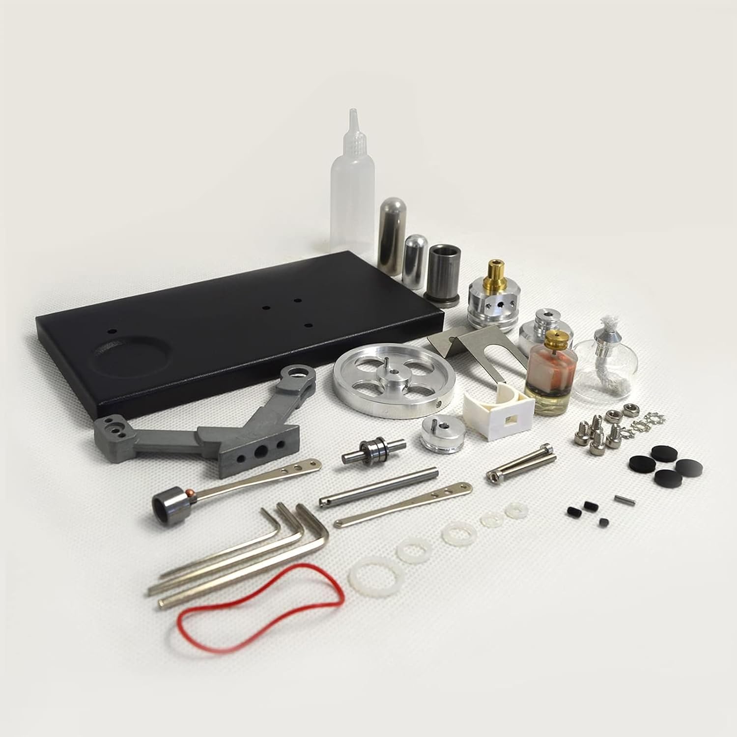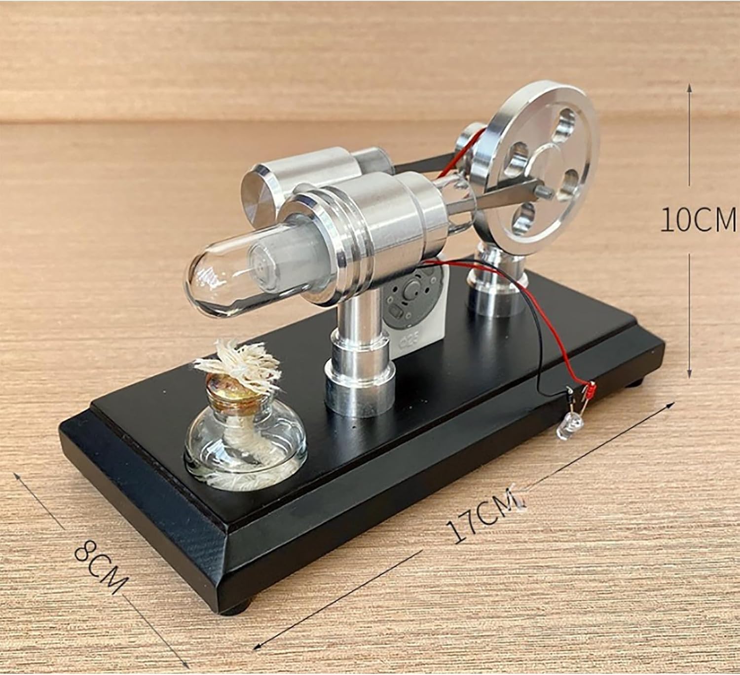 Il motore è dotato di 4 luci LED, che si accendono quando il generatore e l'alternatore funzionano. Una volta assemblata, riempire la lampada ad alcool con alcool al 95% e accenderla. Brucia l'estremità rotonda del tubo riscaldante per circa 30-50 secondi, quindi gira delicatamente il volano per iniziare a funzionare. La piastra inferiore è in metallo, squisita e bella. La staffa è realizzata in lega di zinco, stabile e solida. La camicia del cilindro e il pistone sono tutti torniti e fresati con precisione in lega di alluminio. Il cilindro di potenza e il cilindro termico sono realizzati in acciaio inossidabile, robusto e pratico. La boccola è in ottone lucido, stabile e non necessita di lubrificazione. Aiuta gli studenti a comprendere meglio questa teoria fisica. Utilizzato principalmente per l'insegnamento in classe e gli esperimenti di laboratorio. Il miglior regalo per studenti, insegnanti, bambini, amici e colleghi.