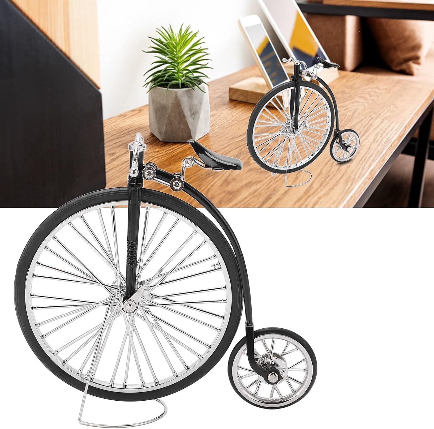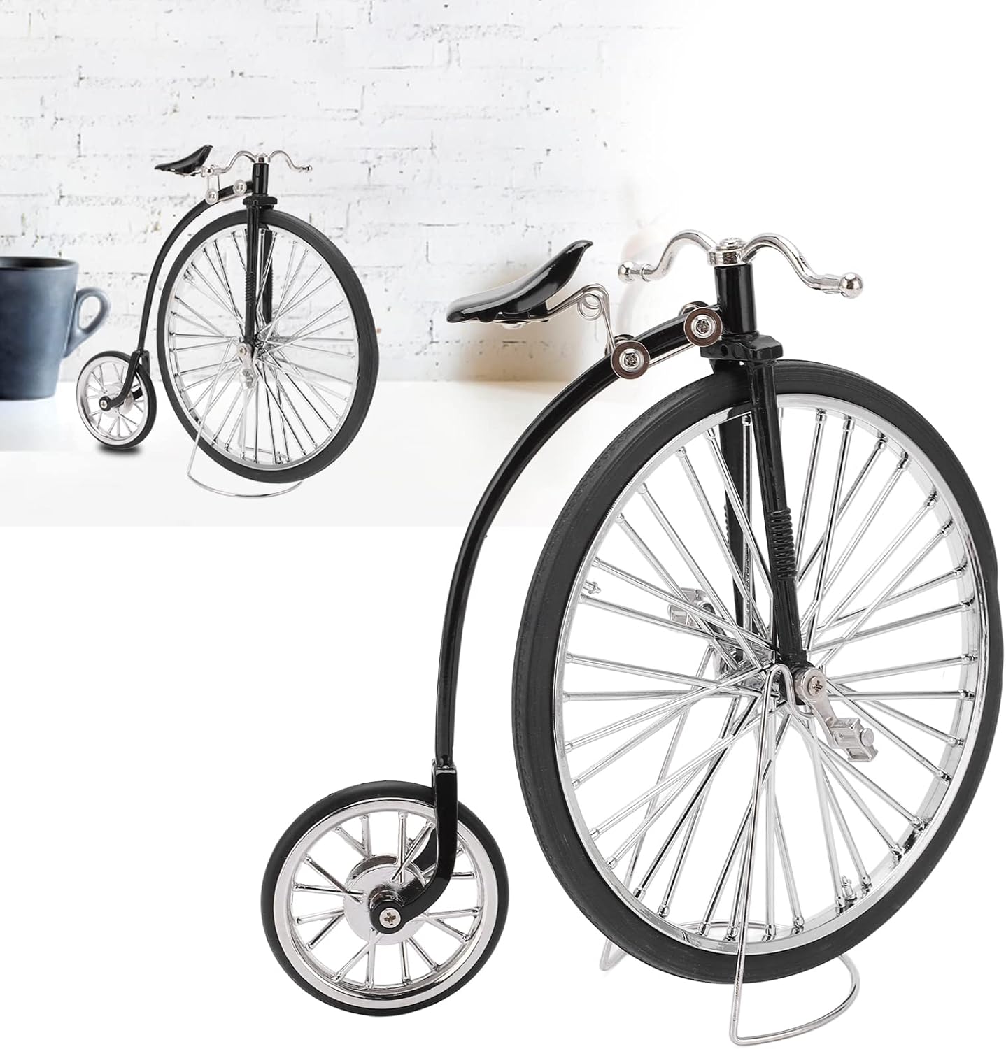 Design retrò: il modello nero presenta un design retrò classico, eccellente per coloro che apprezzano lo stile vintage e gli oggetti da collezione. Robusto materiale in lega: realizzata in robusta lega, questa bicicletta giocattolo in miniatura è costruita per durare, garantendo un divertimento duraturo come ornamento o oggetto di gioco. Ideale: sorprendi i tuoi amici o i tuoi cari con questo prodotto unico e premuroso, adatto a Natale, compleanni o occasioni speciali. Decorazione versatile: il modello di bicicletta può essere utilizzato come elemento decorativo per comodini, librerie, davanzali e persino automobili, aggiungendo un tocco di fantasia a qualsiasi stanza. Include una clip: presenta una clip per una facile visualizzazione, che ti consente di mostrare il tuo nuovo modello con stile.