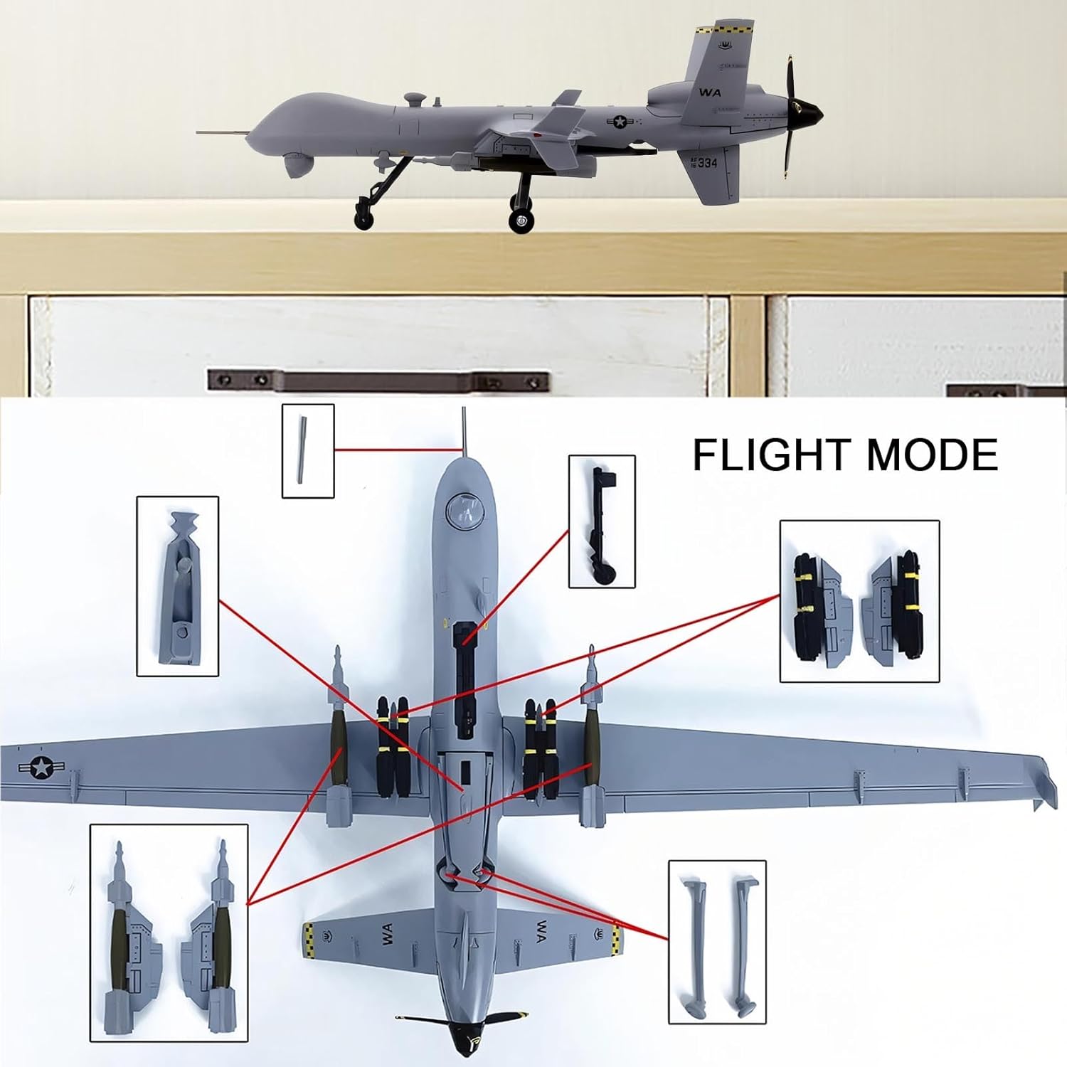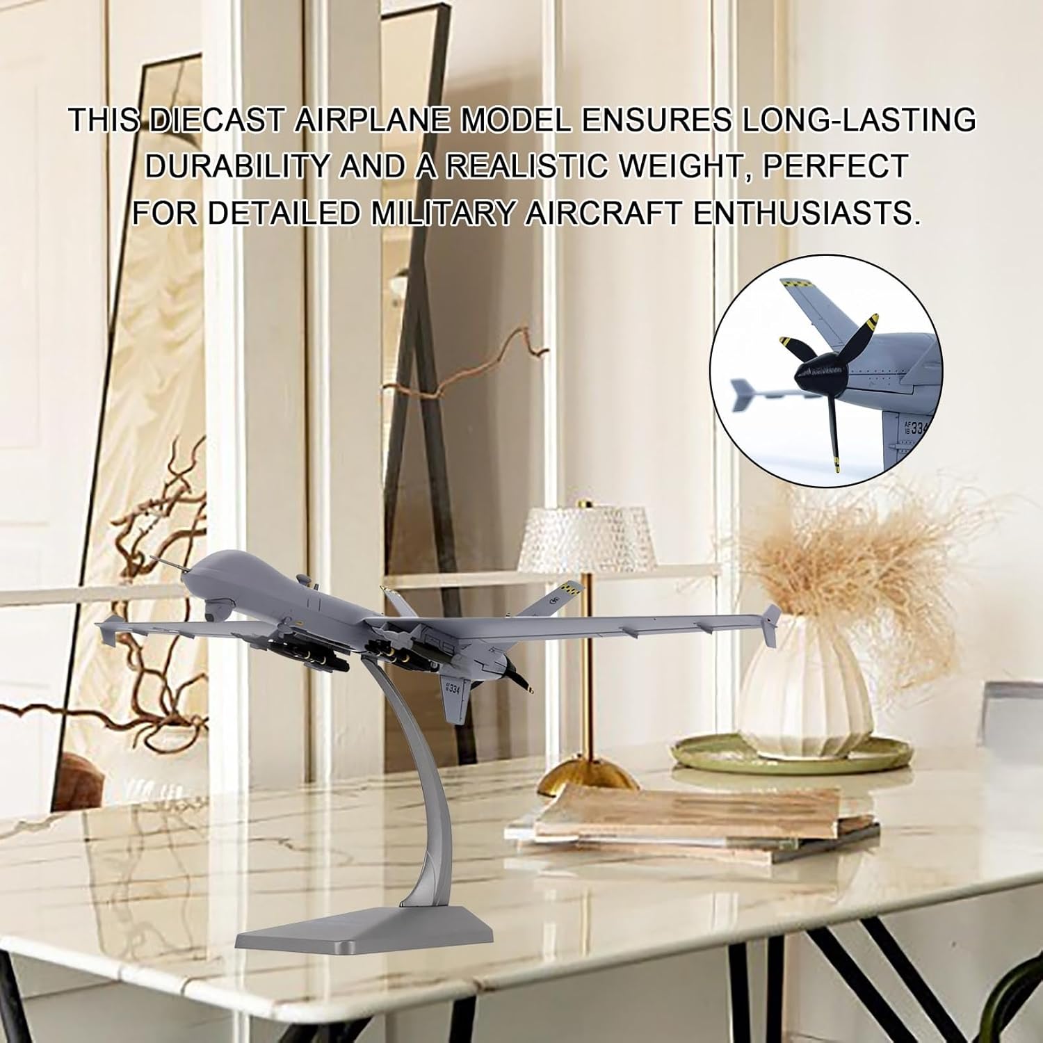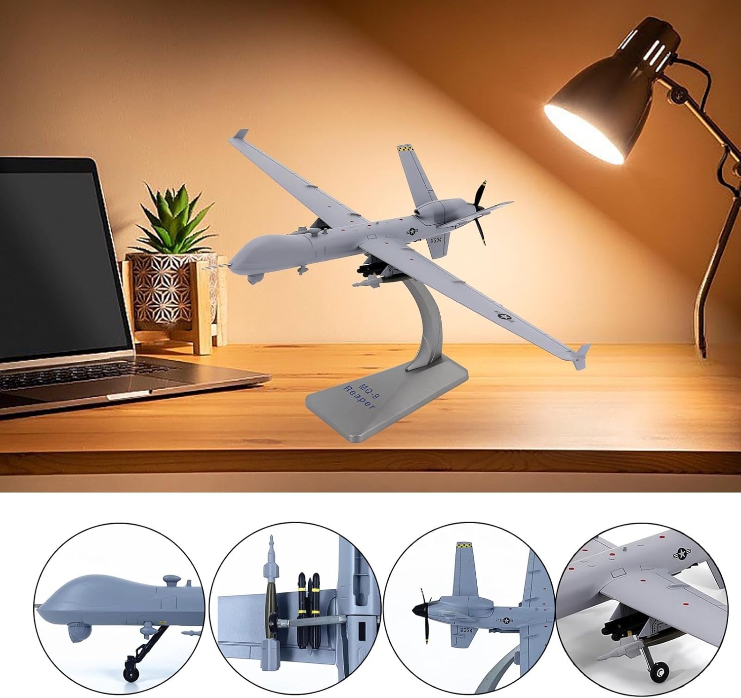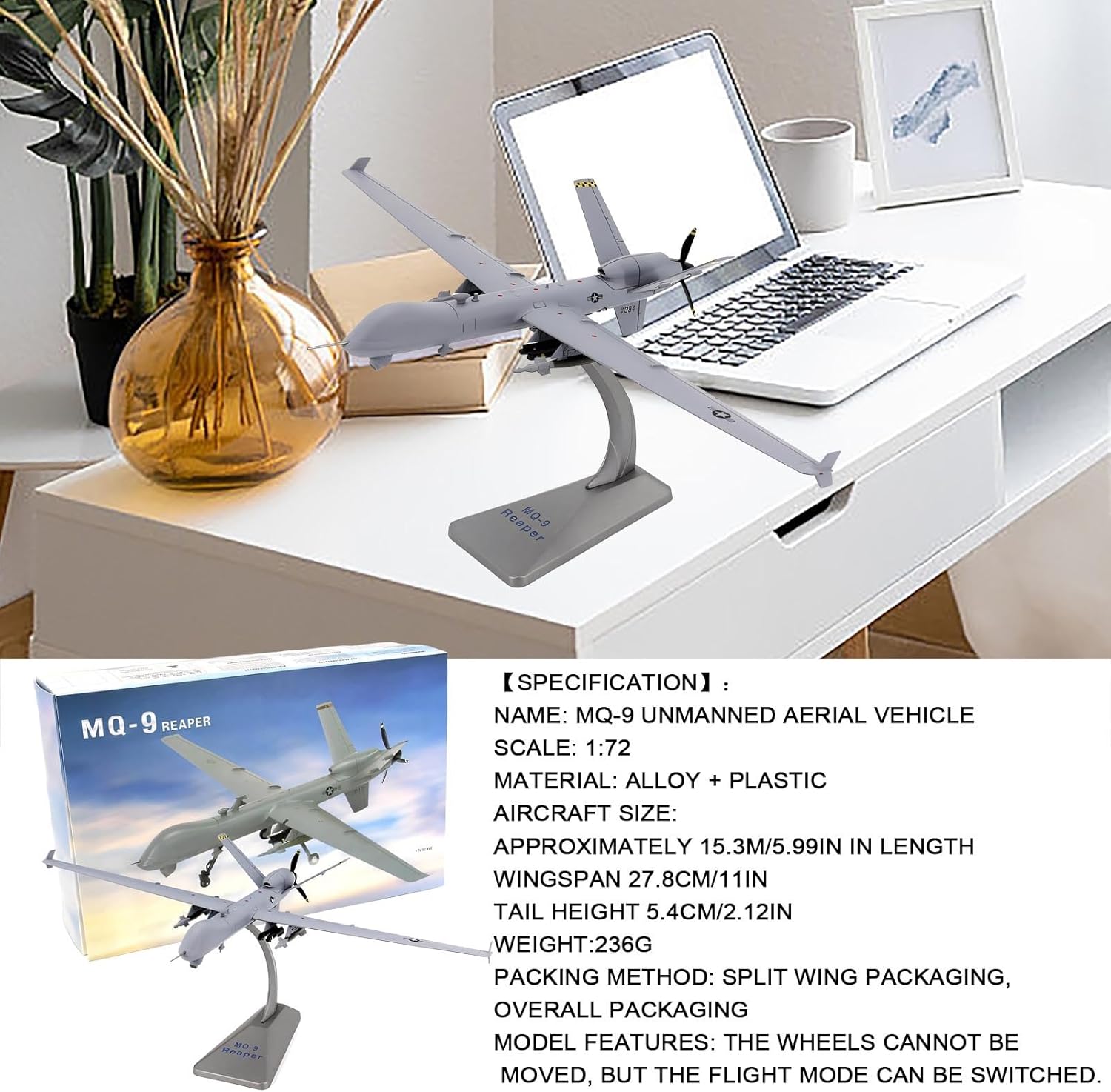 【Ingegneria di precisione in scala 1:72】: Lavorato a CNC secondo specifiche esatte, riproduce fedelmente l'iconica fusoliera aerodinamica, le linee dei pannelli e i dettagli dei rivetti dell'MQ-9, for una precisione realistica. La replica ad alta fedeltà include componenti mobili, cuciture della cabina di pilotaggio incise e texture del vano armi, ideali for i collezionisti più esigenti che apprezzano la precisione storica. 【Costruzione in lega di plastica di alta qualità】: il corpo principale è realizzato in lega pressofusa di alta qualità for garantire peso e realismo, mentre ruote e missili utilizzano plastica tecnica resistente, garantendo integrità strutturale e dettagli autentici. 【Parti interattive rimovibili】: presenta ruote rimovibili, missili intercambiabili ed eliche rotanti: personalizza il tuo display for configurazioni dinamiche a terra o in volo. 【Supporto espositivo robusto in lega incluso】: viene fornito con un elegante supporto in lega for una presentazione sicura e rialzata, che valorizza la presenza del modello in qualsiasi ambiente. Si trasforma senza sforzo da decorazione da scrivania a elemento centrale della mostra, perfetto for l'istruzione aeronautica, l'estetica dell'ufficio o le vetrine for hobbisti. 【Pittura realistica e durevolezza】: la tecnologia avanzata di verniciatura a forno offre una finitura liscia e resistente allo sbiadimento che dura oltre 10 anni, con marcature militari nitide e mimetica dalla texture opaca.
