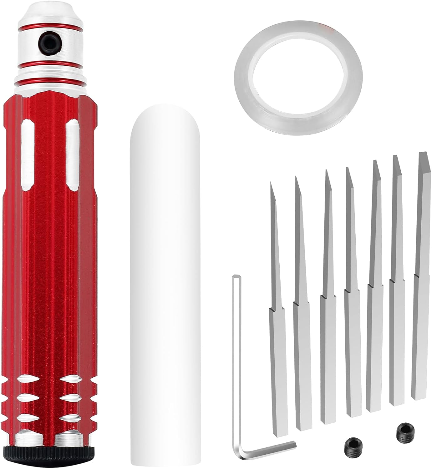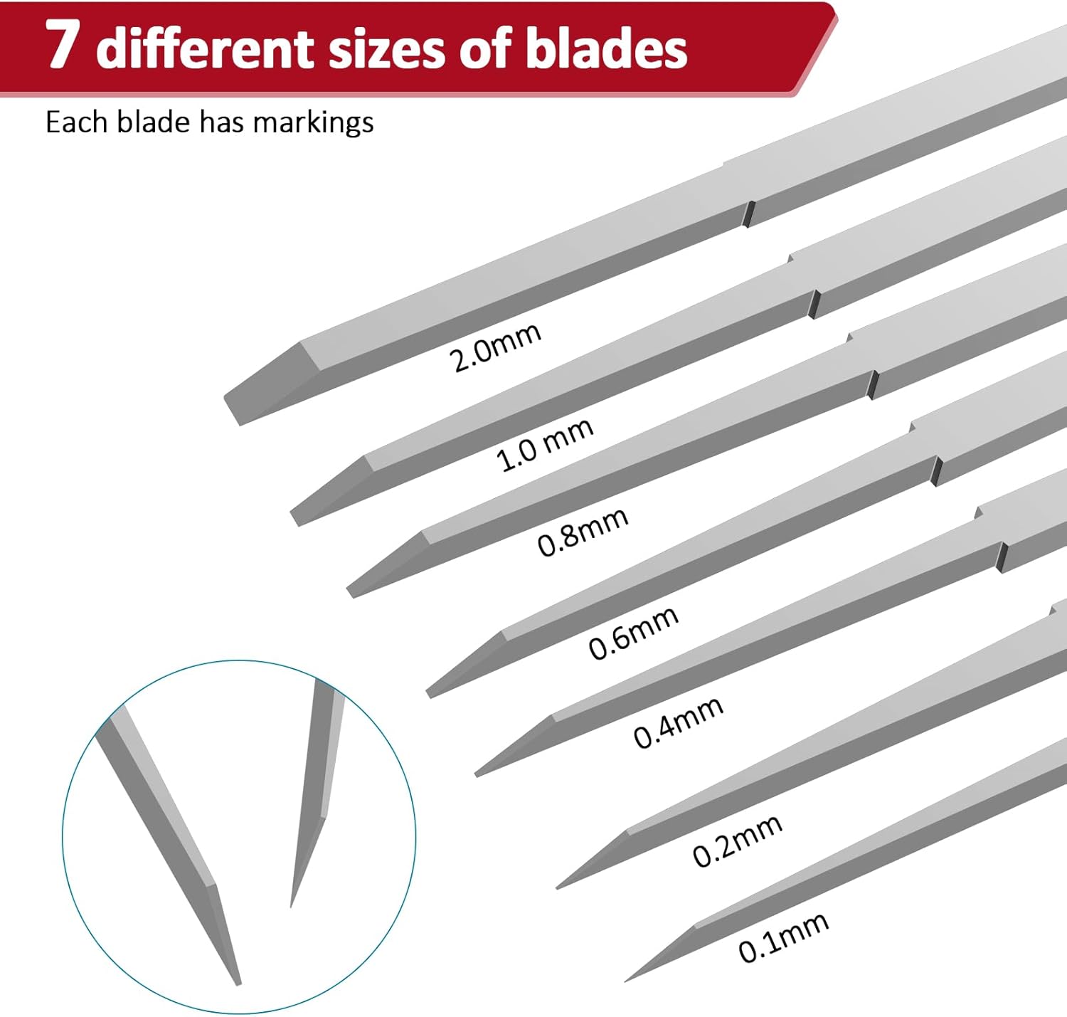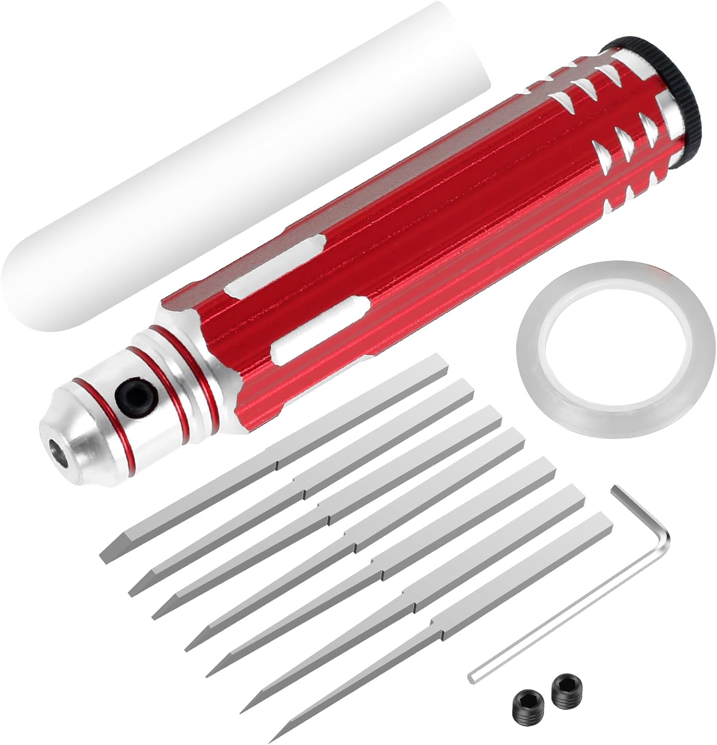 7 diverse dimensioni della lama: lo strumento di scrittura del modello Prime ha 7 diverse dimensioni della lama: 0,1/0,2/0,4/0,6/0,8/1,0 /2,0 mm, ogni lama è contrassegnata e il pacchetto viene anche fornito con nastro di scrittura da 3 mm x 20 m aAiutarti a fare linee rette Incisivi e durature: le lame sono realizzate in acciaio di tungsteno per una lunga vita, con punte incisive e resistenti all'usura, riducendo il numero di sostituzioni Ampie applicazioni: questo kit di metallo inciso è adatto per i kit per auto e aeromobili;bonsai;potatura vegetale;taglio del filo e altro ancora Facile da usare: una chiave a forma di L esagonale e viti M4 assicurano che tutte le pale montate sulla maniglia siano fisse e stabili Manico non slip: lo strumento di linea Scribe è dotato di una maniglia non slittata per un'impugnatura comoda che riduce l'attrito tra la maniglia e la mano.Lo strumento di taglio hobby è leggero e facile da trasportare in