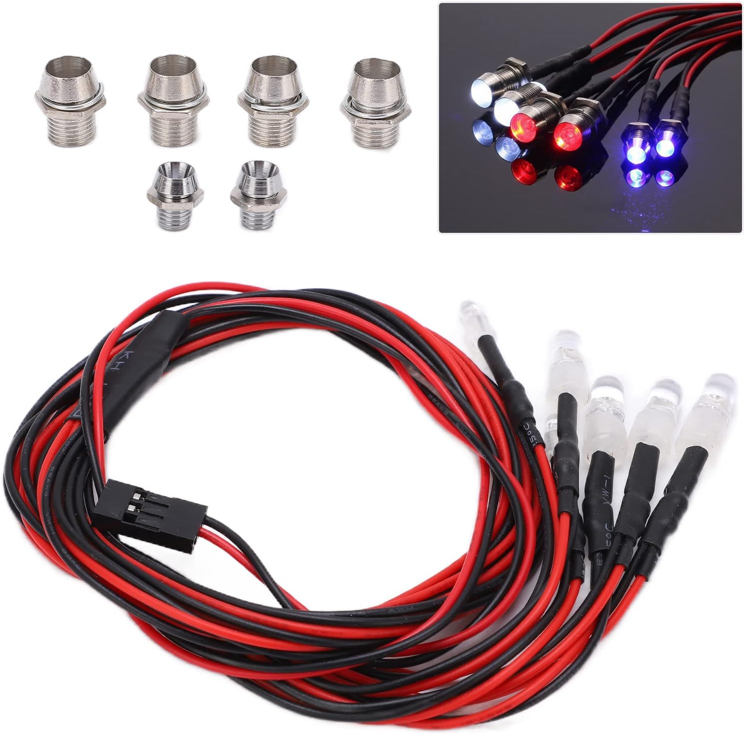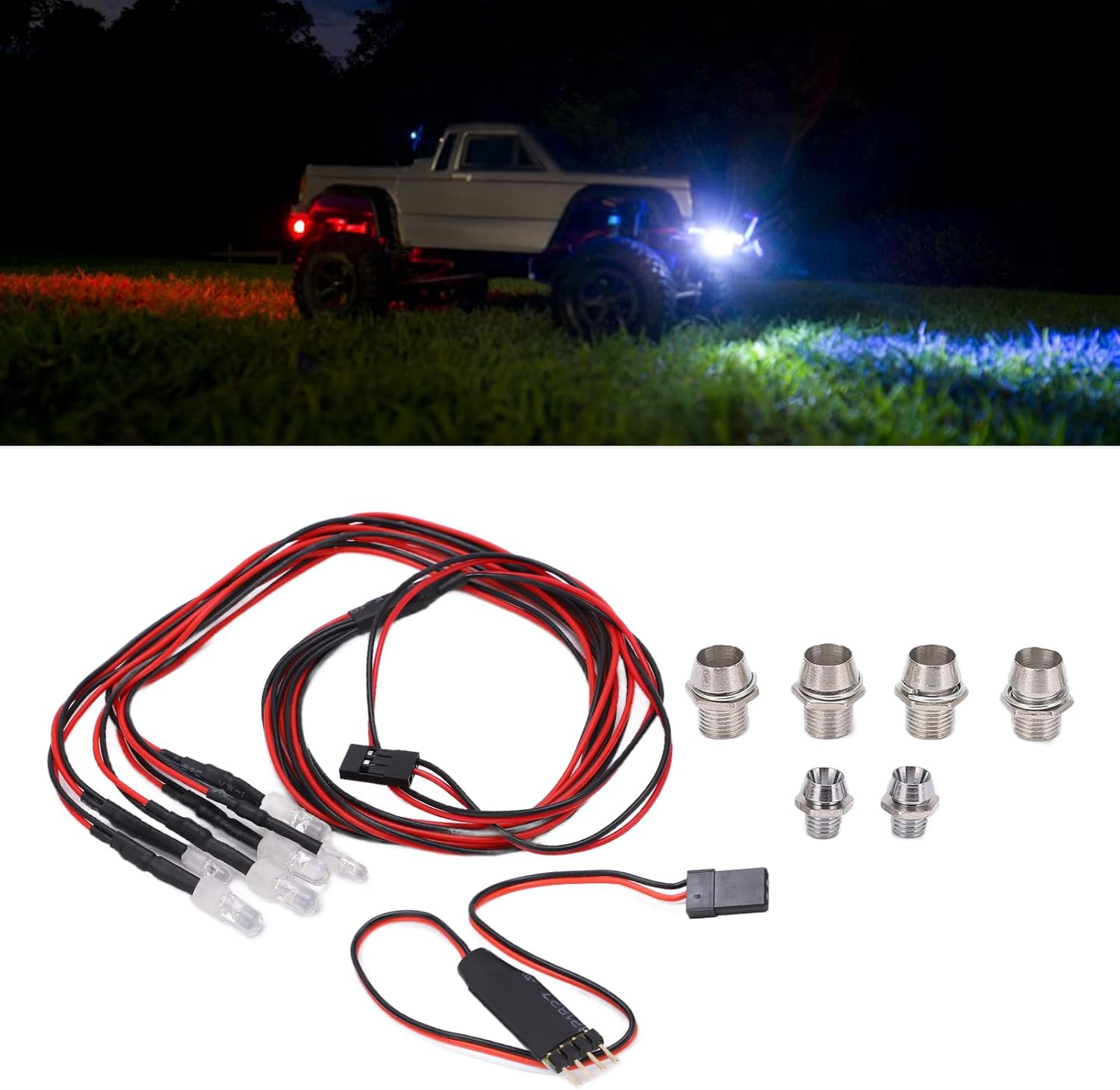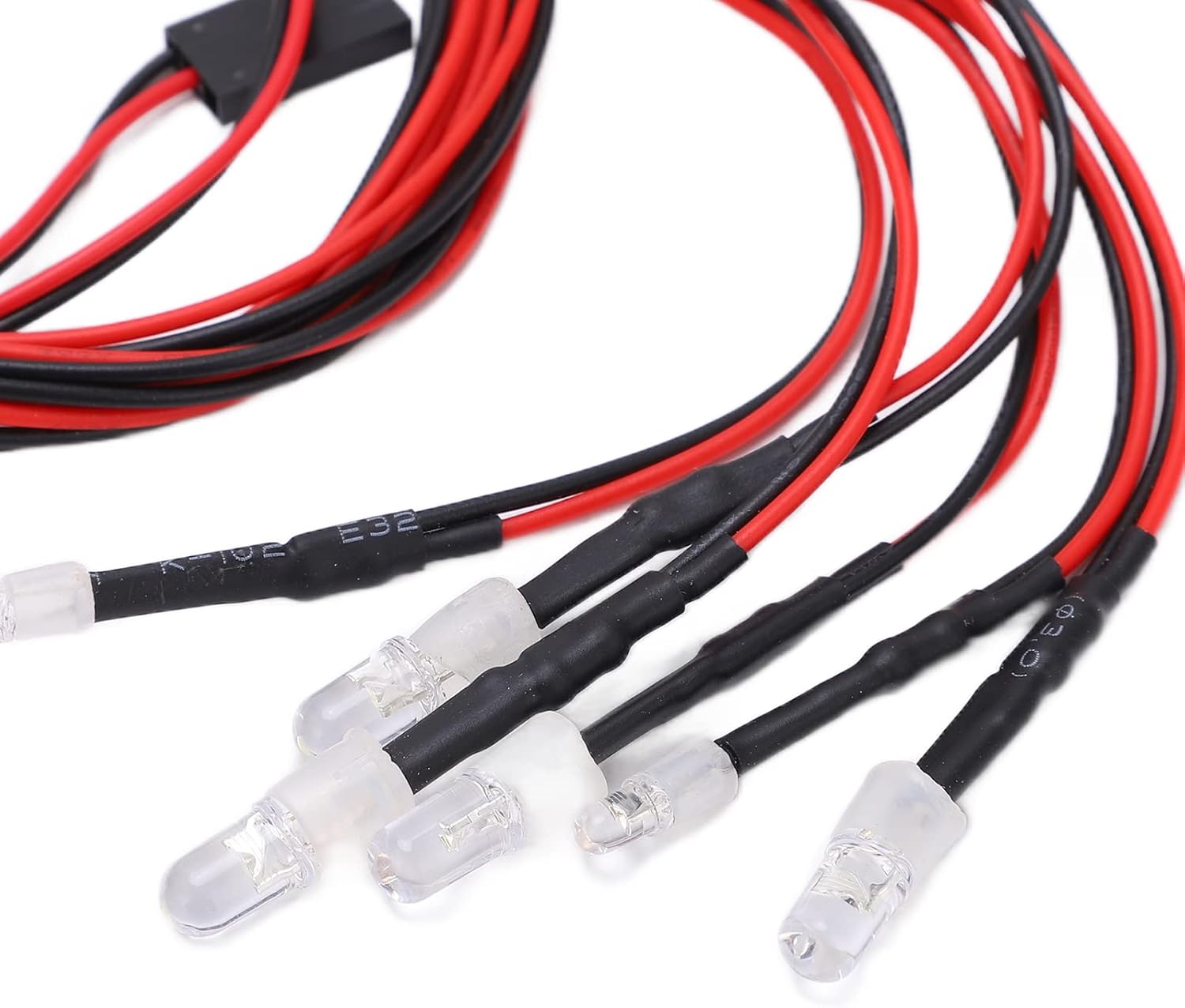 [Materiali di alta qualità] Realizzato con LED di alta qualità e plastica robusta, questo kit di luci LED RC è costruito per durare. La struttura robusta garantisce stabilità durante l'uso, mentre il design durevole può resistere a terreni accidentati e sessioni di corsa intense. Perfetto per gli appassionati che richiedono affidabilità e durata dai propri accessori RC. [Capacità di visione notturna superiore] Dotato di 6 LED ultraluminosi di cui 2 luci bianche, 2 rosse e 2 blu. Questo kit migliora notevolmente la visibilità della tua auto telecomandata in condizioni di scarsa illuminazione. La potente illuminazione trasforma la notte in un'esperienza emozionante mantenendo una chiara visibilità del percorso del tuo veicolo e dell'ambiente circostante. [Installazione e funzionamento semplici] con un semplice design plug and play con portalampade in metallo. Questo kit luci LED si collega direttamente al ricevitore per una configurazione semplice. I cavi da 70 cm inclusi offrono opzioni di installazione flessibili, mentre l'interruttore di controllo dedicato consente una comoda gestione della luce durante il funzionamento. [Realismo e stile migliorati] Questi fari a LED dal design meticoloso aggiungono un fascino visivo accattivante ai tuoi modellini di auto RC. La combinazione di luci di colore diverso si traduce in effetti luminosi sorprendenti che non solo migliorano la funzionalità notturna, ma migliorano anche notevolmente l'aspetto estetico e il realismo della simulazione del tuo veicolo. [Compatibilità versatile] Appositamente progettato per modelli RC in scala da 1/8 a 1/10. Questo kit luci si adatta a marchi famosi tra cui Axial Scx10 Traxxas TRX4 D90 Gen8 e HPI. Il pacchetto completo include 6 luci LED, 6 lampadine e 1 interruttore di controllo, fornendo tutto il necessario per i miglioramenti dell'illuminazione RC professionale.