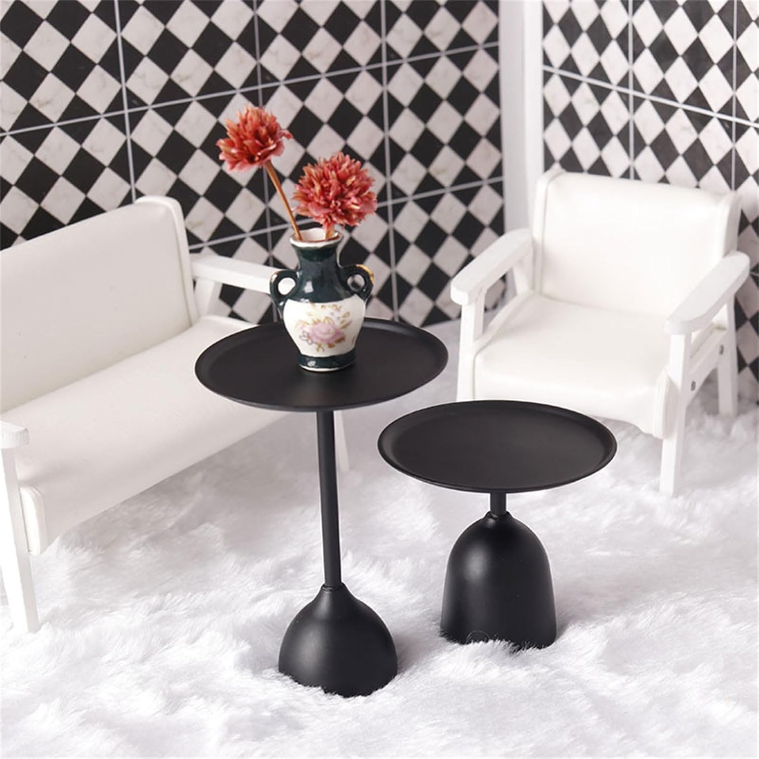 Ideale per hobbisti, modellisti e amanti del design d'interni che cercano accessori realistici per i mobili delle case delle bambole per migliorare l'esposizione delle scene in miniatura. Il suo design semplice si fonde perfettamente con le case delle bambole contemporanee e risolve i disaccordi stilistici. Progetto di interior design in miniatura Migliora le scene in miniatura di allestimenti di soggiorni, progetti di artigianato o vetrine da collezione con questo tavolino in ferro per teiere o decorazioni. Repliche da teatable in miniatura realizzate con precisione di dettagli di mobili simulati in scala 1/12 con rivestimento resistente alla corrosione, perfetto per gli appassionati e i collezionisti di case delle bambole. Con struttura in ferro battuto dal design moderno, durata e funzionalità per la decorazione delle case delle bambole