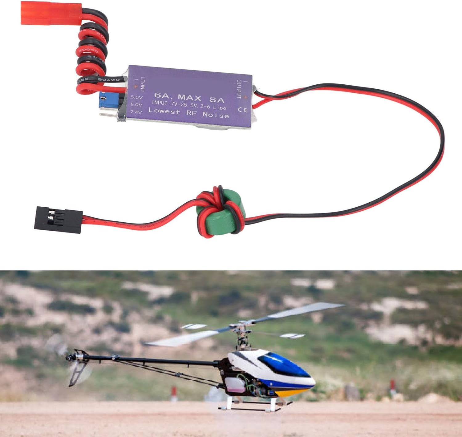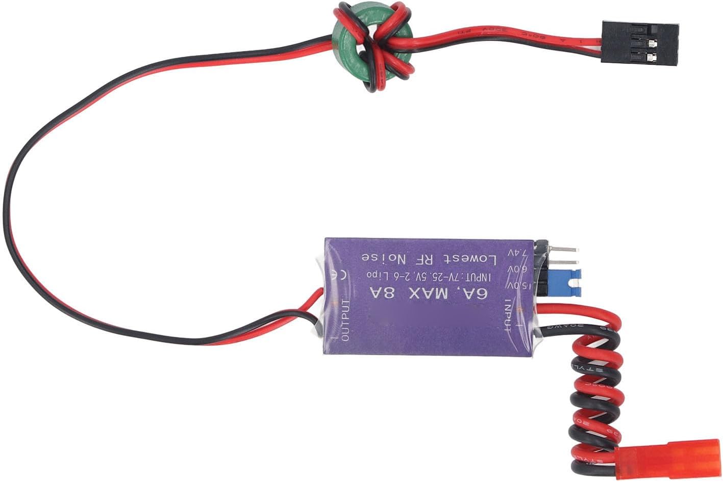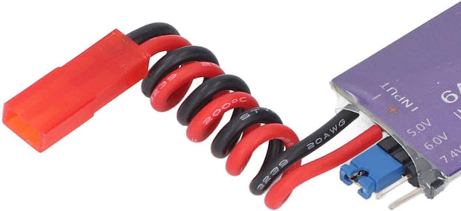 [Efficiente regolatore di tensione esterna] Il regolatore della modalità switch UBEC fornisce energia direttamente al ricevitore senza un pacco batteria separato. [Per elicotteri RC] Tensione CC di uscita per ricevitori, servos e altre attrezzature, ideali per grandi aeroplani elettrici ed elicotteri. [Design ad alta efficienza] CHIP rettificante sincrono con efficienza del 93%, output continuo 6A, corrente massima 8A. [Stabile e versatile] Loop anti-interferenza riduce l'interferenza elettromagnetica, ampia gamma di tensione fino a 25,5 V. [Operamento sicuro] impedisce l'inversione della polarità di ingresso, la luce dell'indicatore di stato per la normale funzionalità di uscita.