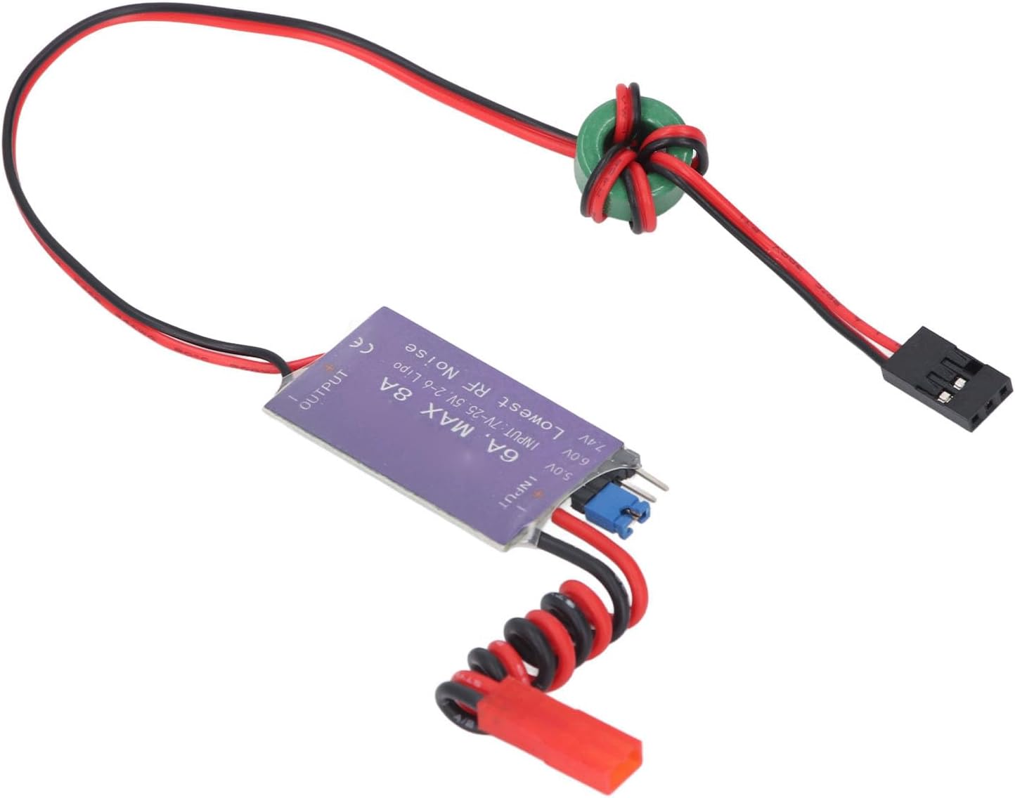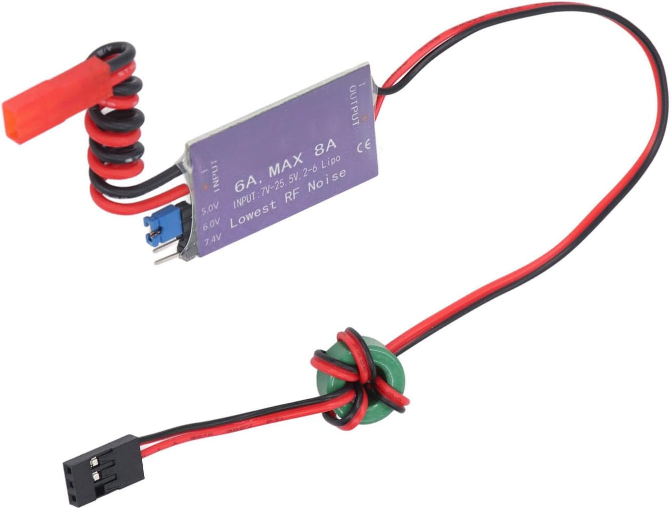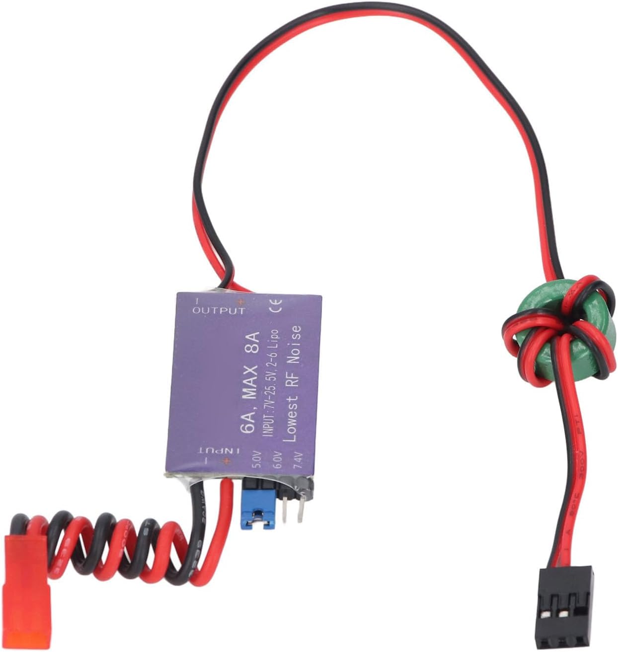 [Efficiente regolatore di tensione esterna] Il regolatore della modalità switch UBEC fornisce energia direttamente al ricevitore senza un pacco batteria separato. [Per elicotteri RC] Tensione CC di uscita per ricevitori, servos e altre attrezzature, ideali per grandi aeroplani elettrici ed elicotteri. [Design ad alta efficienza] CHIP rettificante sincrono con efficienza del 93%, output continuo 6A, corrente massima 8A. [Stabile e versatile] Loop anti-interferenza riduce l'interferenza elettromagnetica, ampia gamma di tensione fino a 25,5 V. [Operamento sicuro] impedisce l'inversione della polarità di ingresso, la luce dell'indicatore di stato per la normale funzionalità di uscita.