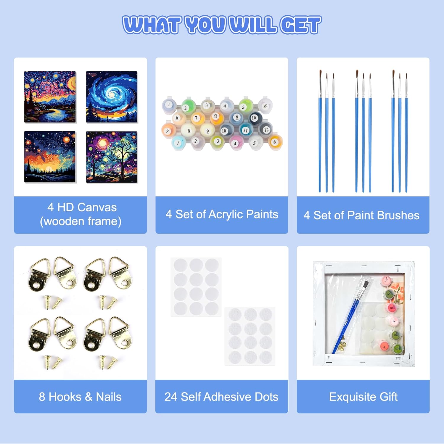 Kit per dipingere con i numeri: dimensioni tela 20,3 x 30,5 cm, motivo semplice e carino, chiaramente prestampato, non richiede abilità di pittura. I principianti devono solo seguire i numeri sulla tela e poi possono creare un grande dipinto da soli Contenuto della confezione: ogni kit di pittura con numeri include tela prestampata (con cornice), due pennelli di diverse dimensioni, un set di pigmenti acrilici colorati, un set di ganci per unghie, un'immagine di riferimento e due punti autoadesivi Passaggi fai da te: in primo luogo, trova il numero di colore sulla tela e inizia a dipingere. In secondo luogo, pulire il pennello e asciugarlo prima di prendere altri colori. In terzo luogo, lasciare asciugare e applicare l'adesivo sui quattro lati del telaio posteriore e infine mostrare il vostro capolavoro Conservazione a lungo termine: la nostra tela di lino ha un buon assorbimento d'acqua e permeabilità e il prodotto finito può essere conservato a lungo. È la decorazione ideale per soggiorno, camera da letto, corridoio o corridoio Decorazione alla moda e idea regalo: il nostro kit di pittura a olio fai da te è perfetto per decorare il soggiorno, la camera da letto o ovunque tu voglia abbinare diversi stili di decorazione. Inoltre, è un'ottima scelta regalo per familiari, cari e amici
