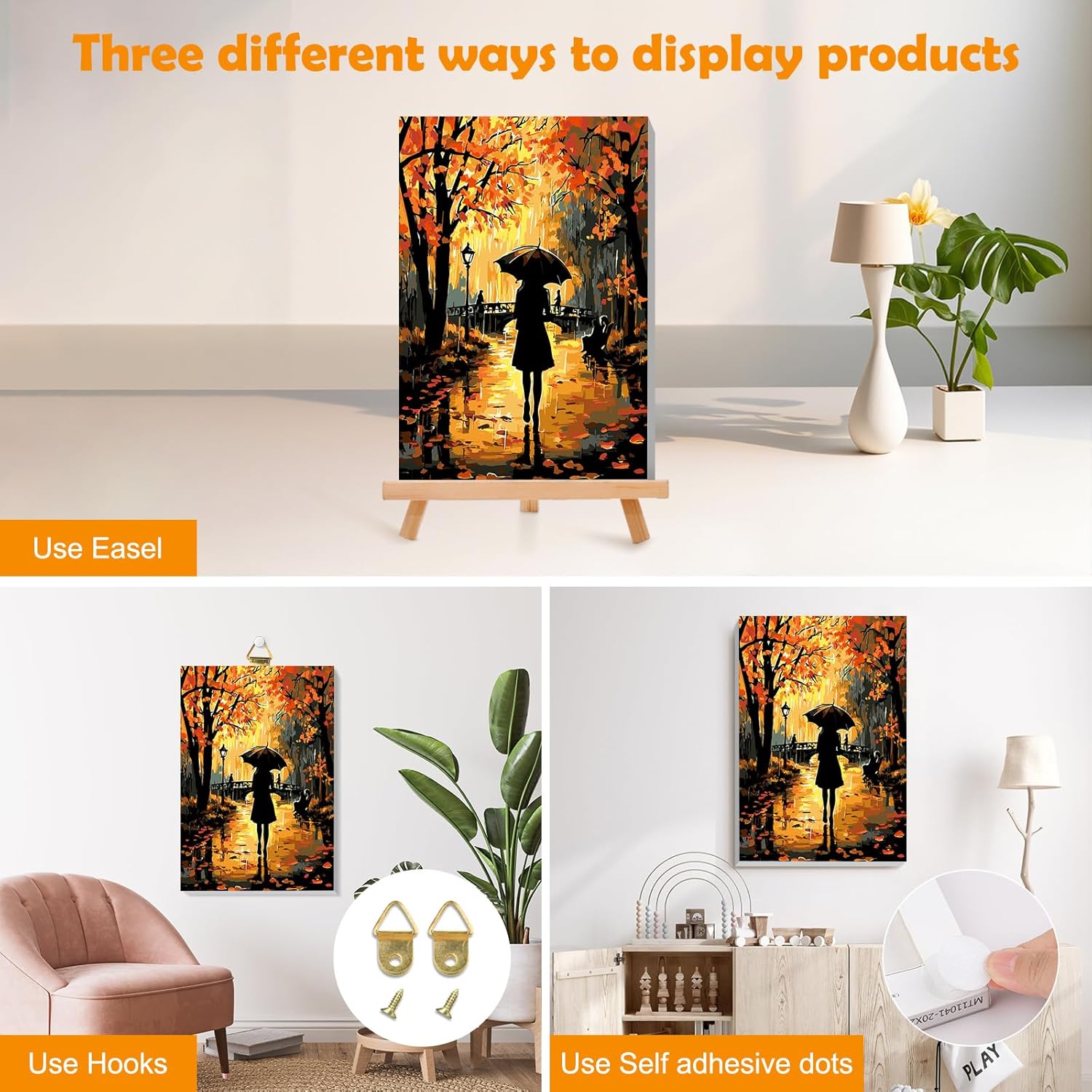 La cosa interessante di dipingere con i numeri per principianti 1. La pittura fai da te con i numeri è molto adatta per i principianti. Molto semplice e interessante, dipingere per numero è un grande hobby. 2. Nessuna abilità richiesta, una buona scelta per interagire con la famiglia attraverso la pittura, migliorare la loro coordinazione per il colore. 3. Dipingere con i numeri per principianti è uno stile di vita alla moda e una decorazione per la casa, rendendo la tua casa più calda. La confezione include: 1 tela prestampata (con cornice). un cavalletto in legno 3 pennelli di diverse dimensioni. 1 set di pigmenti acrilici colorati. 1 x immagine di riferimento 8 punti autoadesivi. 1 set di ganci per unghie. La vernice: 1. La vernice può essere colorata direttamente, non c'è bisogno di aggiungere acqua. 2. La copertura della vernice è forte, il processo di verniciatura in caso di errore, è possibile coprire il colore corretto. 3. La vernice è facile da asciugare, quando non si utilizza, coprire il coperchio. Se la vernice è troppo asciutta, aggiungere 1-2 gocce d'acqua per mescolare uniformemente, ricordarsi di non troppo. Pennelli: 1. Facile da pulire, buon assorbimento dell'acqua. 2. Lavare il pennello in modo pulito quando si cambia colore o si smette di dipingere. 3. Per la parte più grande, è possibile utilizzare il pennello più grande per dipingere, e per la parte più piccola, è possibile utilizzare il pennello più piccolo per dipingere. Nota: 1. Lavare il pennello quando si finisce ogni giorno o si cambia colore. 2. Seguire la parte superiore verso il basso, da sinistra a destra per dipingere il colore. 3. È possibile decidere il turno di disegno in base al proprio favore personale o a turno dei numeri. 4. Forniamo abbastanza vernice da usare, non spreca in caso di carenza di vernice.