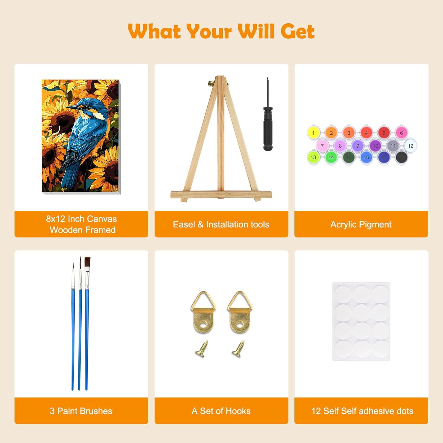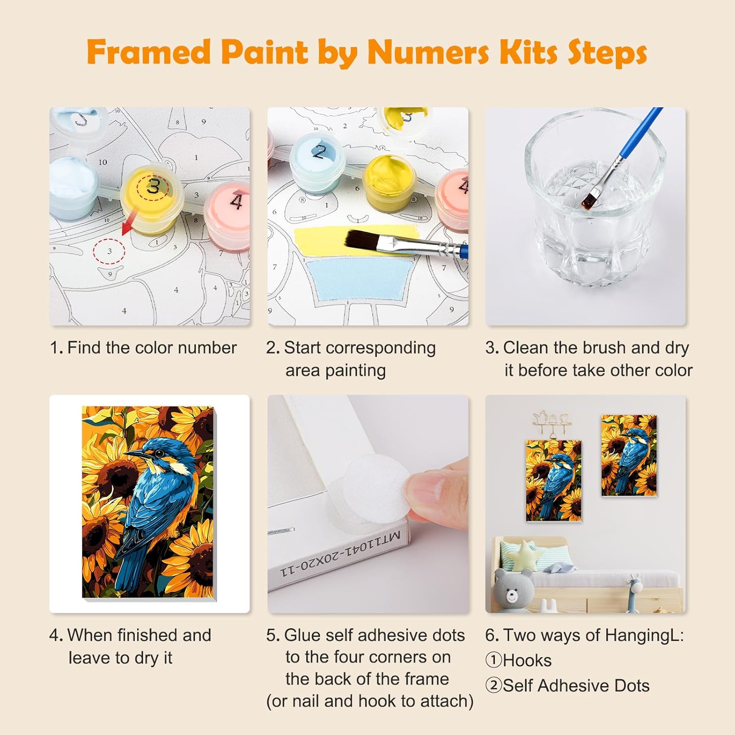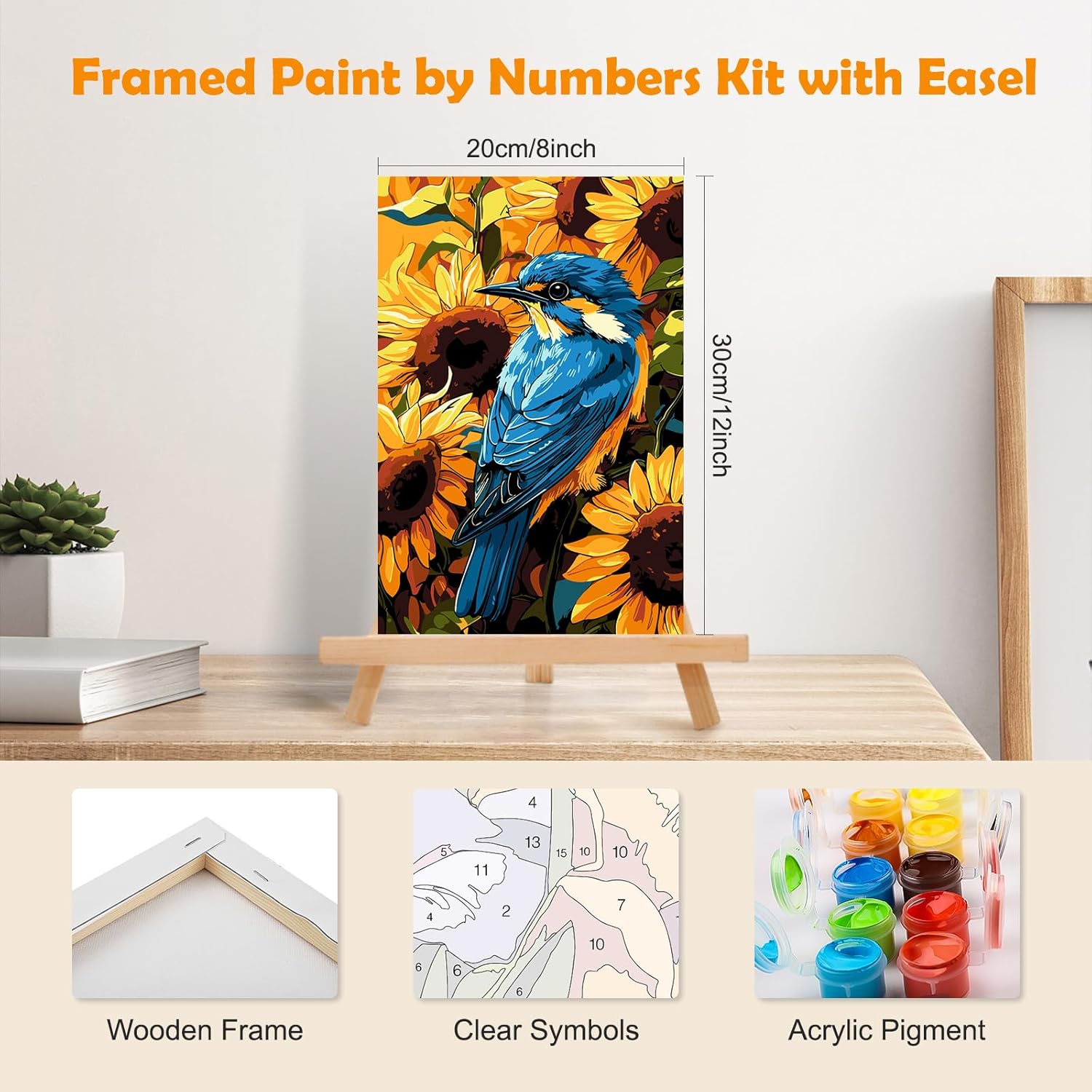 Kit per dipingere con i numeri: tela da 8 x 30,5 cm con cornice e cavalletto, motivo semplice e carino, texture chiaramente prestampata, non richiede abilità di pittura. Basta seguire i numeri sulla tela e poi possono creare un grande dipinto da soli Pigmenti acrilici di alta qualità: la vernice che forniamo è realizzata in vernice acrilica sicura e sana, che può essere utilizzata con fiducia. Inoltre, la vernice acrilica non ha bisogno di essere diluita e può essere utilizzata dopo l'apertura, il che è molto conveniente Contenuto della confezione: ogni kit di pittura per numero include una tela con cornice in legno, un cavalletto in legno, tre pennelli di diverse dimensioni, un set di pigmenti acrilici colorati, un set di ganci per unghie, un'immagine di riferimento e otto punti autoadesivi Fasi del fai da te: prima di tutto, trova il numero di colore sulla tela e inizia a dipingere. In secondo luogo, pulire il pennello e asciugarlo prima di prendere altri colori. In terzo luogo, lasciare asciugare e applicare i punti sui quattro lati del telaio posteriore e infine mostrare il vostro capolavoro Decorazione alla moda e idea regalo: il nostro kit di pittura a olio fai da te è perfetto per decorare il soggiorno, la camera da letto o ovunque tu voglia abbinare diversi stili di decorazione. Inoltre, è un'ottima scelta regalo per familiari, cari e amici