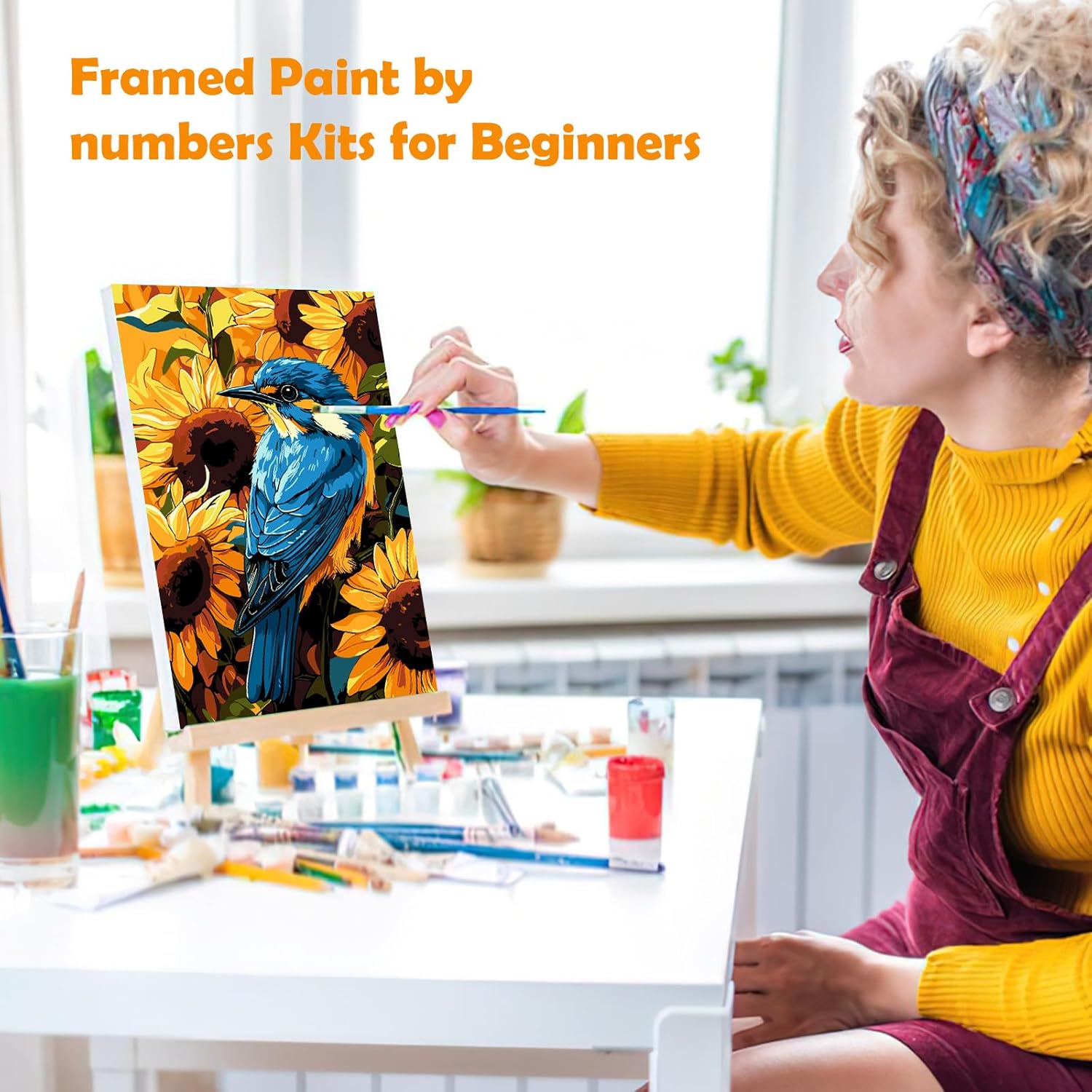 MOGTAA Dipingere con i numeri, per adulti e principianti, con cornice, pittura a girasole con numeri, per adulti, con cavalletto, kit fai da te per pittura a olio, artigianato artistico per