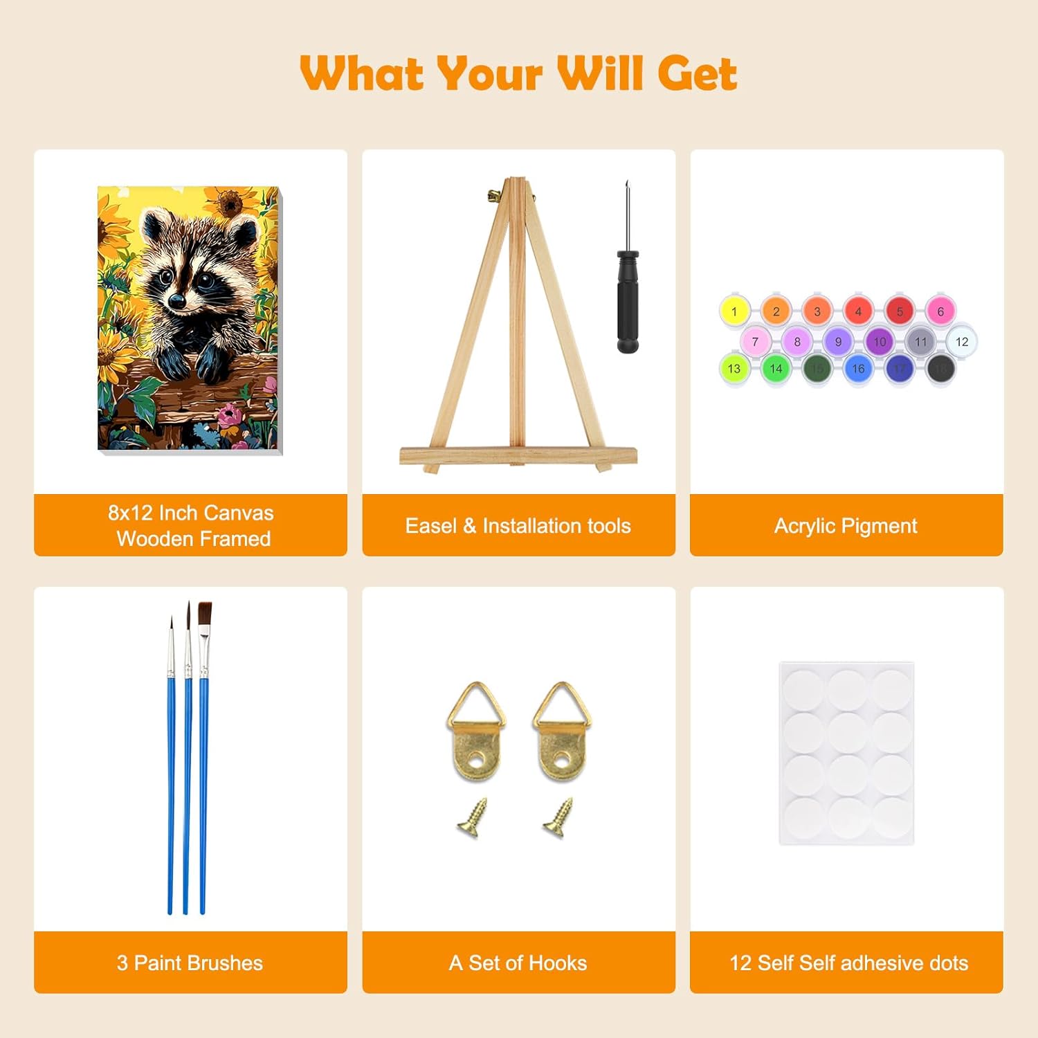 MOGTAA Dipingere con i numeri, per adulti e principianti, con cornice, pittura a procione con i numeri, per adulti, con cavalletto, kit per pittura a olio fai da te, artigianato artistico per la