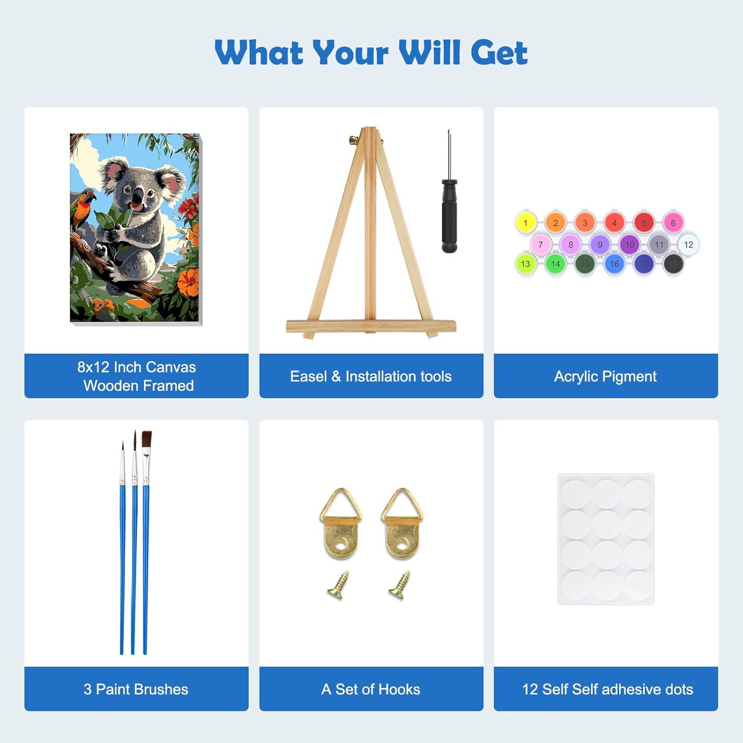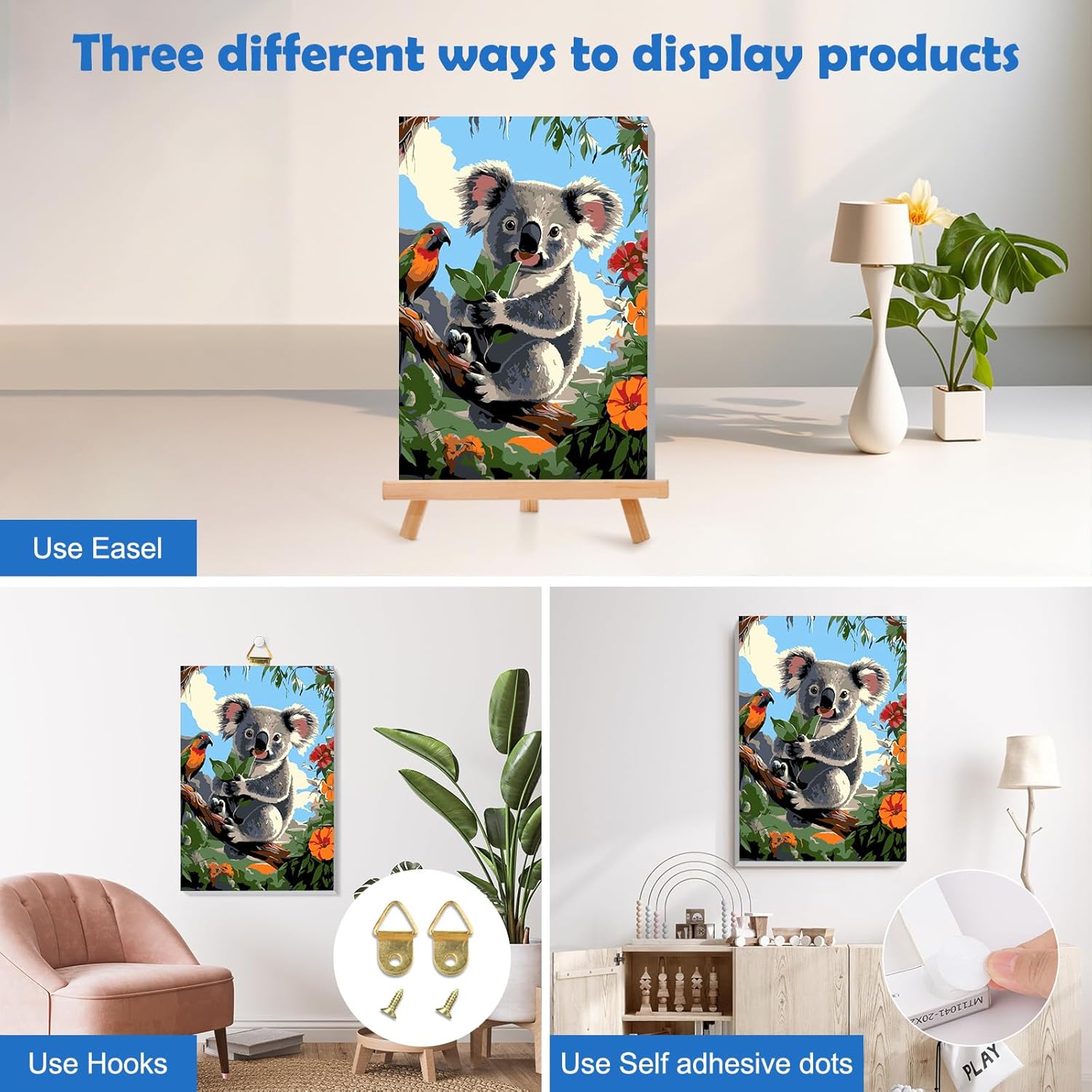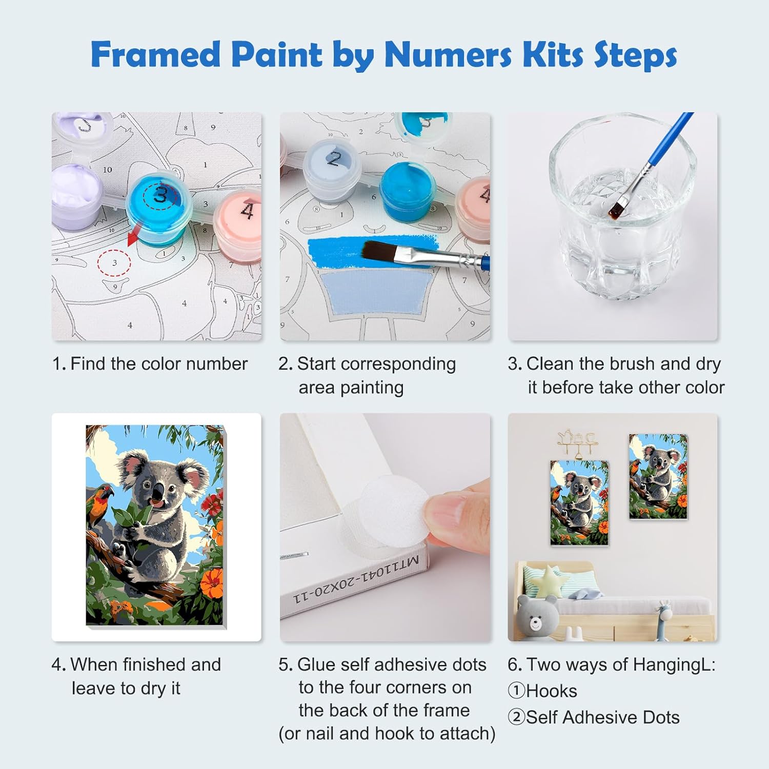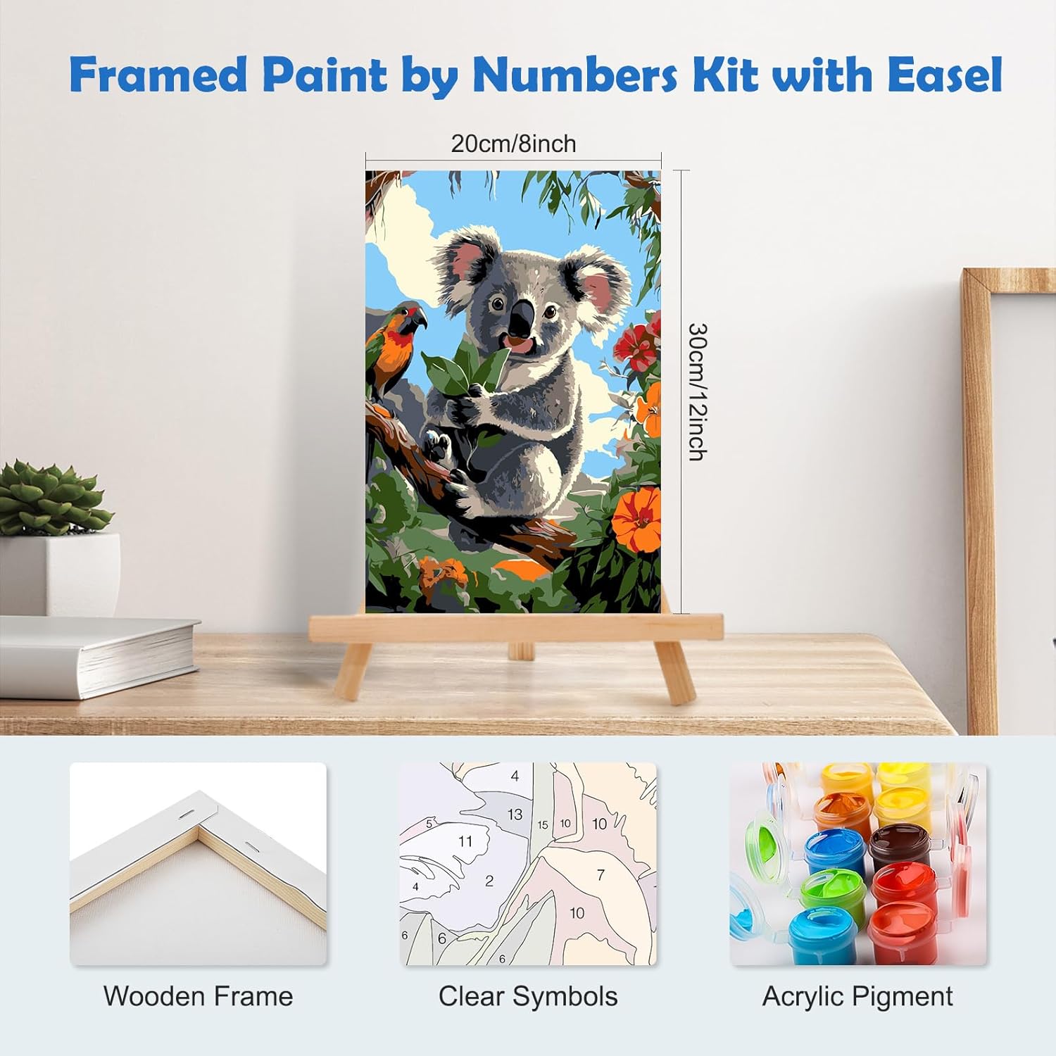 MOGTAA Koala - Dipingere con i numeri, per adulti e principianti, con cornice, fiori con numeri, per adulti, con cavalletto, kit fai da te per pittura a olio, artigianato artistico per decorazione