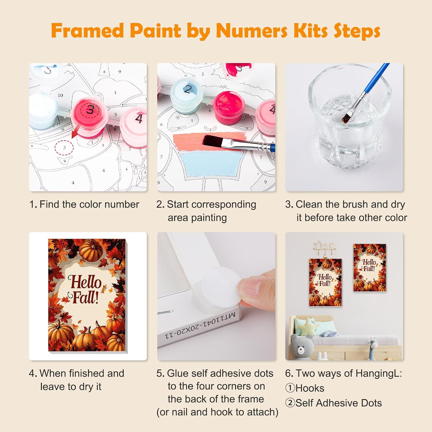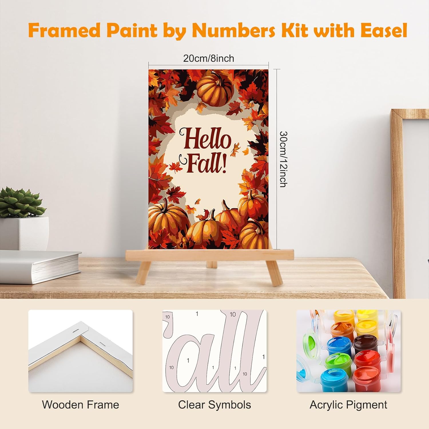 MOGTAA Pittura autunnale a zucca con i numeri, per adulti con cornice, dipingere con i numeri, con cavalletto in legno, set fai da te, pittura a olio, immagini acriliche, per decorazione della casa
