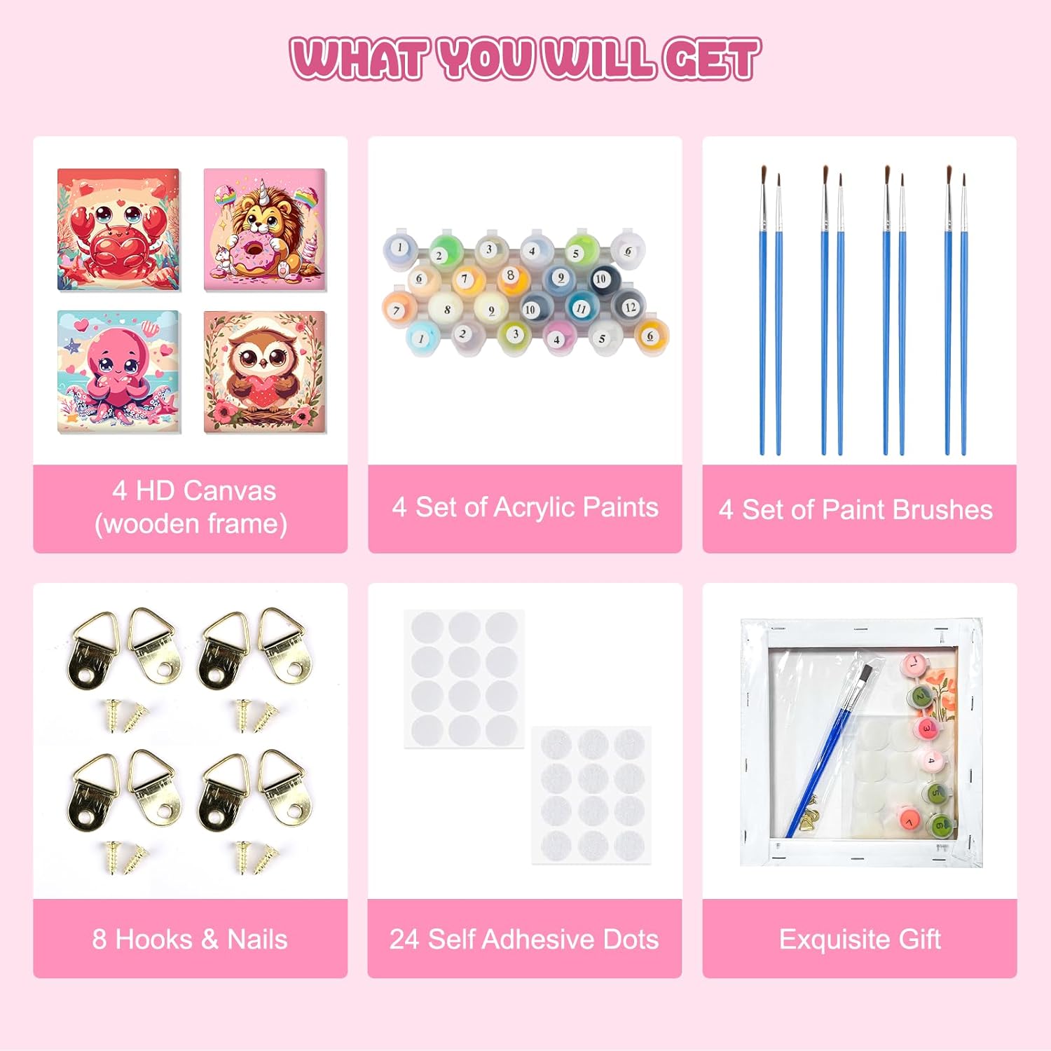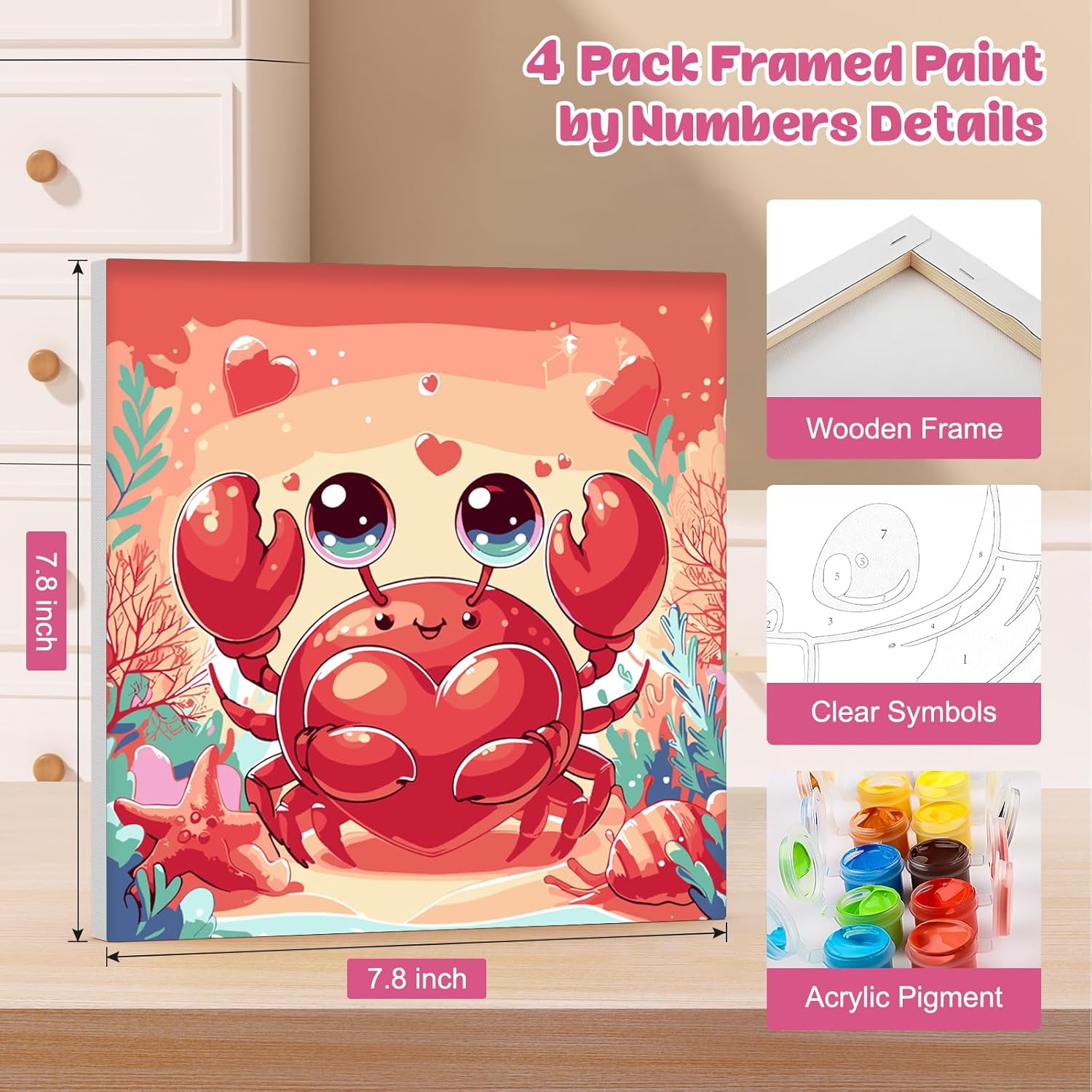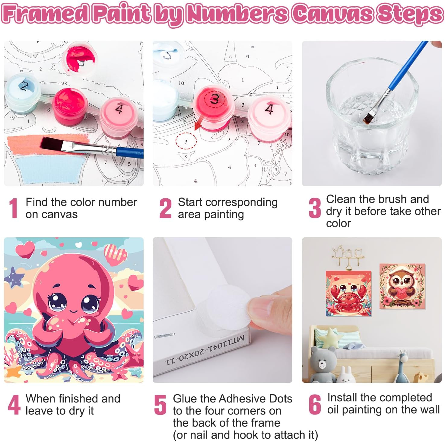 Kit per dipingere con i numeri: tela da 8 x 8 pollici, motivo semplice e carino, trama prestampata chiara, nessuna abilità di pittura necessaria. I principianti devono solo seguire i numeri sulla tela e poi possono dipingere loro stessi una grande immagine Cosa ottieni: ogni kit per dipingere con i numeri include una tela prestampata (con cornice), due pennelli di diverse dimensioni, un set di pigmenti acrilici colorati, un set di ganci per unghie, un'immagine di riferimento e due punti autoadesivi Fasi fai da te: in primo luogo, trova il numero di colore sulla tela e inizia a dipingere. In secondo luogo, pulire il pennello e asciugarlo prima di prendere un altro colore. In terzo luogo, lasciarlo asciugare e incollare l'adesivo sui quattro lati sul telaio posteriore, e infine mostrare il tuo capolavoro Conservazione a lungo termine: la nostra tela di lino ha un buon assorbimento d'acqua e permeabilità e il prodotto finito può essere conservato per lungo tempo. È la decorazione ideale per soggiorno, camera da letto, corridoio o sala Scelta di decorazione e regalo alla moda: il nostro kit di pittura a olio fai da te è perfetto per decorare il tuo soggiorno, camera da letto o ovunque tu voglia per adattarsi a diversi stili di decorazione. Inoltre, è una grande scelta regalo artigianale per la famiglia, i propri cari e gli amici