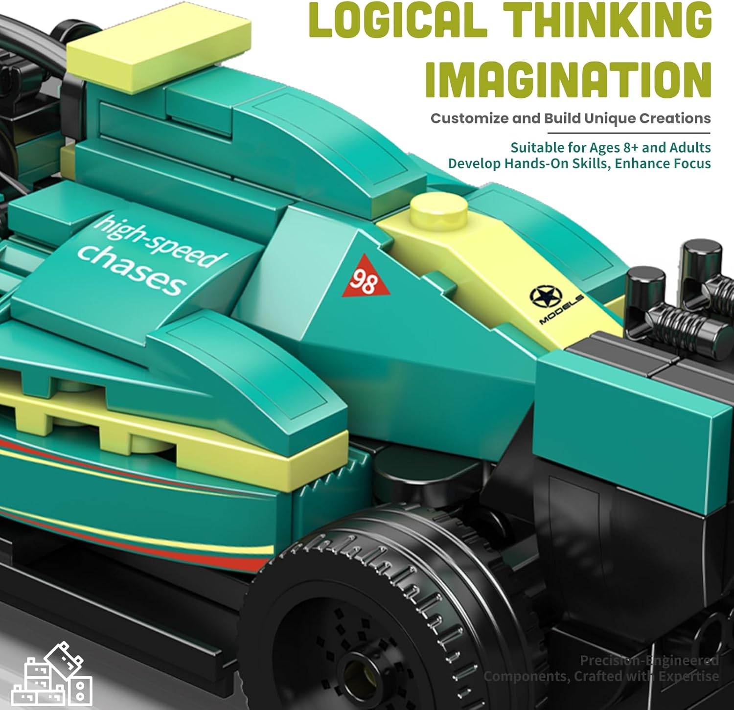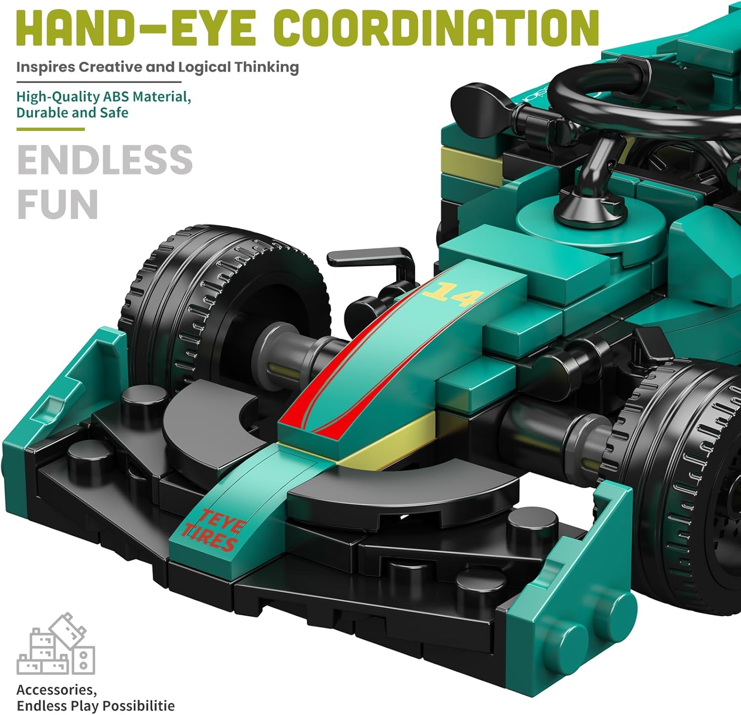 Kit di costruzione realistico per un'auto da corsa F1: con 308 pezzi, i bambini dagli 8 anni in su ricreano un'auto da corsa dettagliata che assomiglia a vere auto da corsa nel design e nella forma. Dimensioni precise del modello per la vetrina: il modello finito misura 19,1 x 7,2 x 4,5 cm (7,5 x 2,8 x 1,8 pollici), ideale per l'esposizione e il gioco. Istruzioni per la costruzione chiare con immagini a colori: le istruzioni illustrate passo passo a colori consentono una costruzione facile e di successo. Componenti preordinati per un avvio rapido: tutte le 308 parti sono imballate in sacchetti numerati, rendendo il processo di costruzione chiaro e organizzato. Kit entry-level ideale per i giovani appassionati di corse: questo kit offre un'esperienza di costruzione adatta all'età che promuove le capacità motorie e la comprensione tecnica.