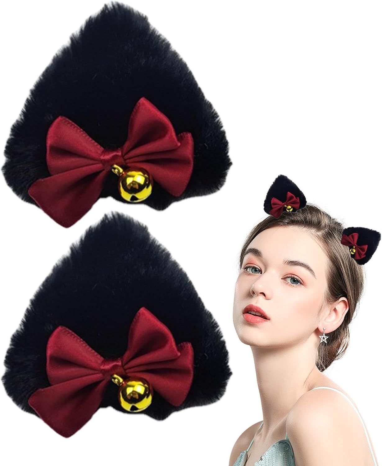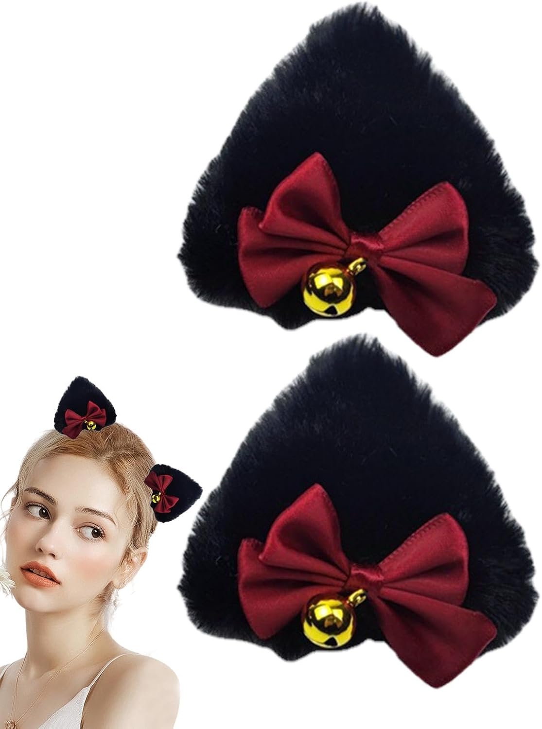 CARATTERISTICHE UNICHE: Trasforma la tua pettinatura con questi adorabili fermagli per capelli con orecchie di gatto e un design unico di fiocchi rossi e campanelli dorati. Il tocco giocoso e divertente aggiunge un elemento creativo e bello a qualsiasi outfit, perfetto per un look affascinante. QUALITÀ SICURA: I nostri fermagli per capelli con orecchie di gatto sono realizzati con materiali sicuri e peluche di alta qualità, con una consistenza morbida che resiste sia alla lanugine che allo sbiadimento. Queste clip sono perfette per un uso a lungo termine, non si deformano o danneggiano facilmente e offrono comfort e durata eccellenti. Acconciatura essenziale: migliora qualsiasi acconciatura con i nostri fermagli per capelli con orecchie di gatto. Aggiungi un tocco di raffinatezza al tuo look, che si tratti di uno stile semplice o complicato. Perfetto per tutti i tipi di capelli e li mantiene puliti e comodi per tutto il giorno. MULTIUSO: preparati a brillare con questi fantastici fermagli per capelli con orecchie di gatto. Il loro design intricato e gli attraenti strass sono perfetti per aggiungere un tocco di eleganza a una festa, un banchetto, un appuntamento e un matrimonio. Non importa dove tu vada, questo accessorio versatile catturerà sicuramente l'attenzione di tutti e metterà in risalto il tuo stile. Ottima scelta regalo: migliora il tuo stile con questi adorabili fermagli per capelli con orecchie di gatto. Regala ai tuoi cari una scelta sorprendente e adorabile per compleanni, Natale, Halloween e altro ancora, e rendila la scelta perfetta per familiari o amiche di sesso femminile
