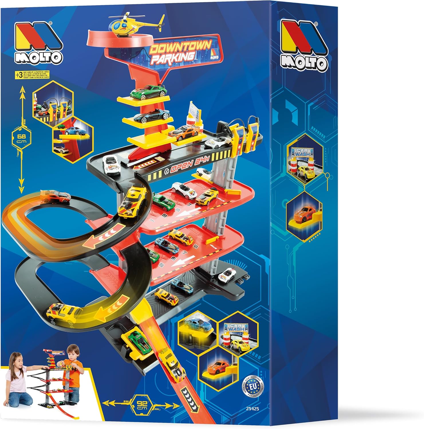 🚗【PARCHEGGIO URBANO A 4 LIVELLI CON 10 AUTO】Porta il gioco a nuovi livelli! Questo parcheggio include 4 livelli di gioco, 10 auto giocattolo, rampe a spirale, un ascensore funzionante e stazioni di servizio, offrendo un'esperienza unica e divertente per i piccoli automobilisti. 🏎️【SOLLEVATORE FUNZIONALE E RAMPE A SPIRALE】Il sollevatore per auto sale e scende mentre le rampe a spirale regalano emozioni a ogni corsa. I bambini si divertiranno senza fine! 🛠️【STAZIONI INTERATTIVE E DIVERTENTI】Con stazioni di ricarica, un autolavaggio e aree di rifornimento, questo parcheggio incoraggia il gioco di ruolo e lo sviluppo delle abilità sociali mentre i bambini si prendono cura e organizzano le loro auto. 📏【DIMENSIONI E CARATTERISTICHE】Con dimensioni di 68 x 92 x 69 cm e un peso di 1,50 kg, questo box è adatto a bambini dai 3 anni in su. Facile da montare e prodotto nell'UE con materiali di alta qualità. ✨【MOLTO】è un'azienda riconosciuta a livello nazionale e internazionale, presente in più di 100 paesi e con una gamma di prodotti di oltre 300 referenze. In questi 60 anni di vita, Molto ha consolidato il suo marchio come sinonimo di fiducia, qualità e design, mantenendo il giocattolo tradizionale adattato alle nuove generazioni di bambini. Tutti i nostri giocattoli sono progettati per essere stabili, robusti e durevoli.