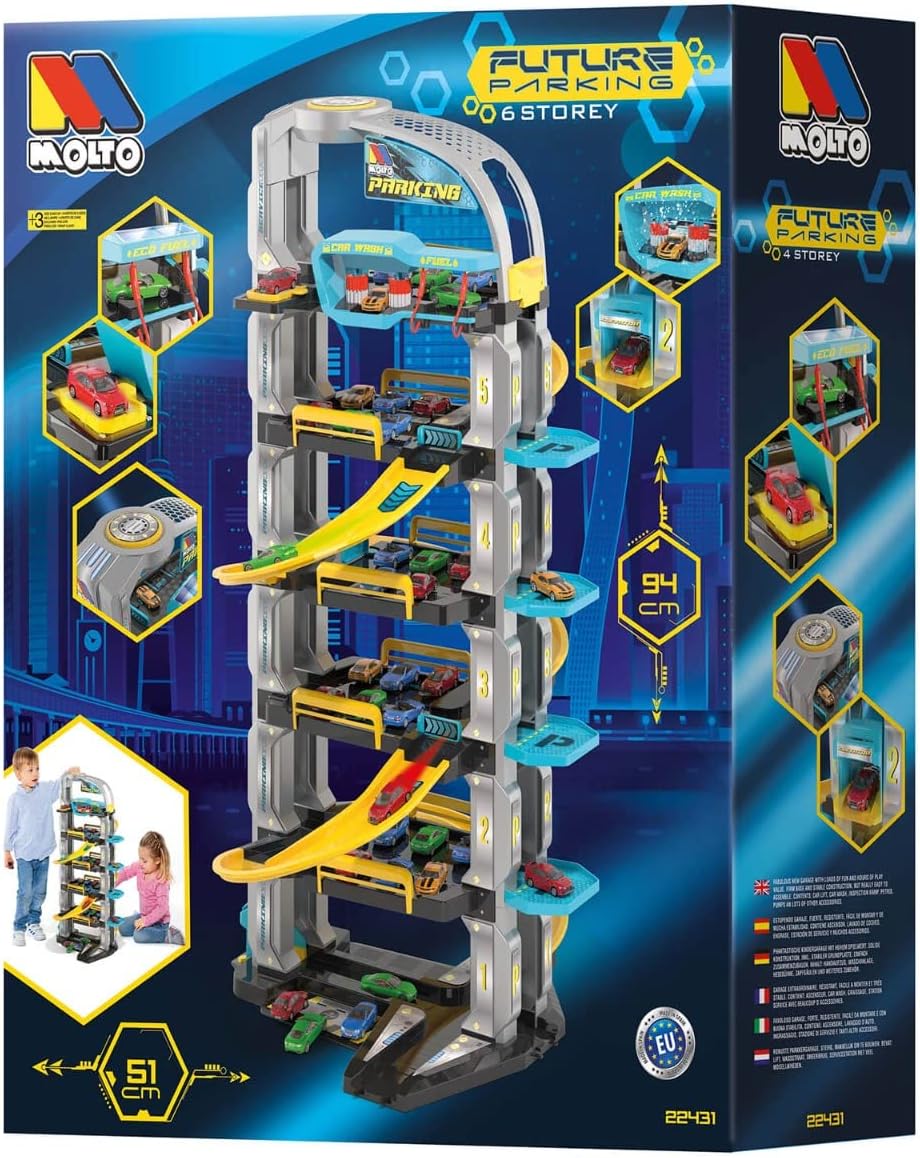 🏎️【Parcheggio per bambini MOLTO】Gestite il vostro parcheggio con rampe, lavanderia, ascensore e stazione di servizio. Questo parcheggio per bambini è alto 6 piani e può ospitare una moltitudine di auto. Con il parcheggio per bambini Molto avrete ore e ore di sano divertimento lontano dagli schermi. 🏫 【Apprendere attraverso il gioco】Esercitate le vostre abilità di autista e meccanico con questo favoloso parcheggio giocattolo Molto e i vostri piccoli potranno gestire il loro parcheggio con garage. I suoi 4 piani e i molteplici accessori e aree di gioco offrono enormi possibilità di dare sfogo alla loro immaginazione e creatività. 👶 【Giocattoli educativi】I giocattoli del parco incoraggiano lo sviluppo cognitivo dei bambini e dei neonati in modo che imparino attraverso il gioco fin dalla più tenera età. I vostri bambini si divertiranno giocando e svilupperanno la loro immaginazione, le abilità sociali e il linguaggio. 🔧【Misure】62 x 47 x 94 cm ✨【MOLTO】è un'azienda riconosciuta a livello nazionale e internazionale, presente in più di 100 paesi e con una gamma di prodotti di oltre 300 referenze. In questi 60 anni di vita, Molto ha consolidato il suo marchio come sinonimo di fiducia, qualità e design, mantenendo il giocattolo tradizionale adattato alle nuove generazioni di bambini. Tutti i nostri giocattoli sono progettati per essere stabili, robusti e durevoli.