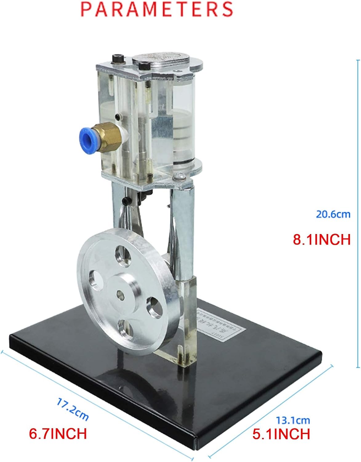 ALTA QUALITÀ: realizzata in acciaio inossidabile spazzolato, la piastra inferiore è liscia, robusta e resistente, fissata con viti, tutti i tipi di parti sono rigorosamente collegati, volani grandi e piccoli e l'insegnamento è più conveniente. COME FUNZIONA: Il motore a vapore utilizza la differenza di pressione come fonte di energia per guidare, per dimostrare il principio di funzionamento del motore a vapore. Utilizzare la differenza di pressione del gas per spingere il pistone per far muovere il pistone su e giù. AMPIE APPLICAZIONI: perfetto per progetti scientifici per bambini, giocattoli educativi, apprendimento fisico o meccanico, oggetti di scena dimostrativi per insegnanti in classe, regalo di compleanno per amici, famiglie, bambini, ecc. FACILE DA USARE: collegare il connettore di alimentazione dell'aria, accendere l'interruttore di aspirazione dell'aria e capovolgere delicatamente il volano a mano e la macchina può funzionare normalmente. Dopo l'uso, spegnere la fonte d'aria e spegnere l'interruttore della presa d'aria. SPECIFICHE: 17,2 x 13,1 x 20,6 cm/6,7 x 5,1 x 8,1 pollici (L x P x A). Nota: tutte le parti mobili di questo modello sono realizzate con materiali autolubrificanti e non è possibile aggiungere olio lubrificante.