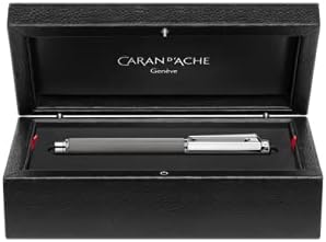 DESIGN DELLO STRUMENTO DI SCRITTURA - Dimensioni della penna stilografica con il cappuccio chiuso 136,3 mm senza cappuccio 128,2 mm con il cappuccio fissato sul retro 171,9 mm ASTA - Fusto esagonale in ottone con attributi dello stemma (cappuccio, clip, punta del fusto) in argento placcato e rodiato Pulsante del cappuccio con stemma dei Caran d'Ache (esagono verniciato di nero) Cappuccio per avvitare e clip a molla Punta a molla in oro 18 carati, placcatura rodio CARTUCCE E RICAriche INTENTE - Dotato di pompa a pistone Compatibile con tutte le cartucce d'inchiostro Chromatics di piccole dimensioni CUSTODIA - Custodia Varius specifica Dimensioni: 19,5 x 9,7 x 6,5 cm Peso: 0,700 kg Garanzia internazionale e manuale d'uso di Caran d'Ache REGOLAMENTO - Swiss Made