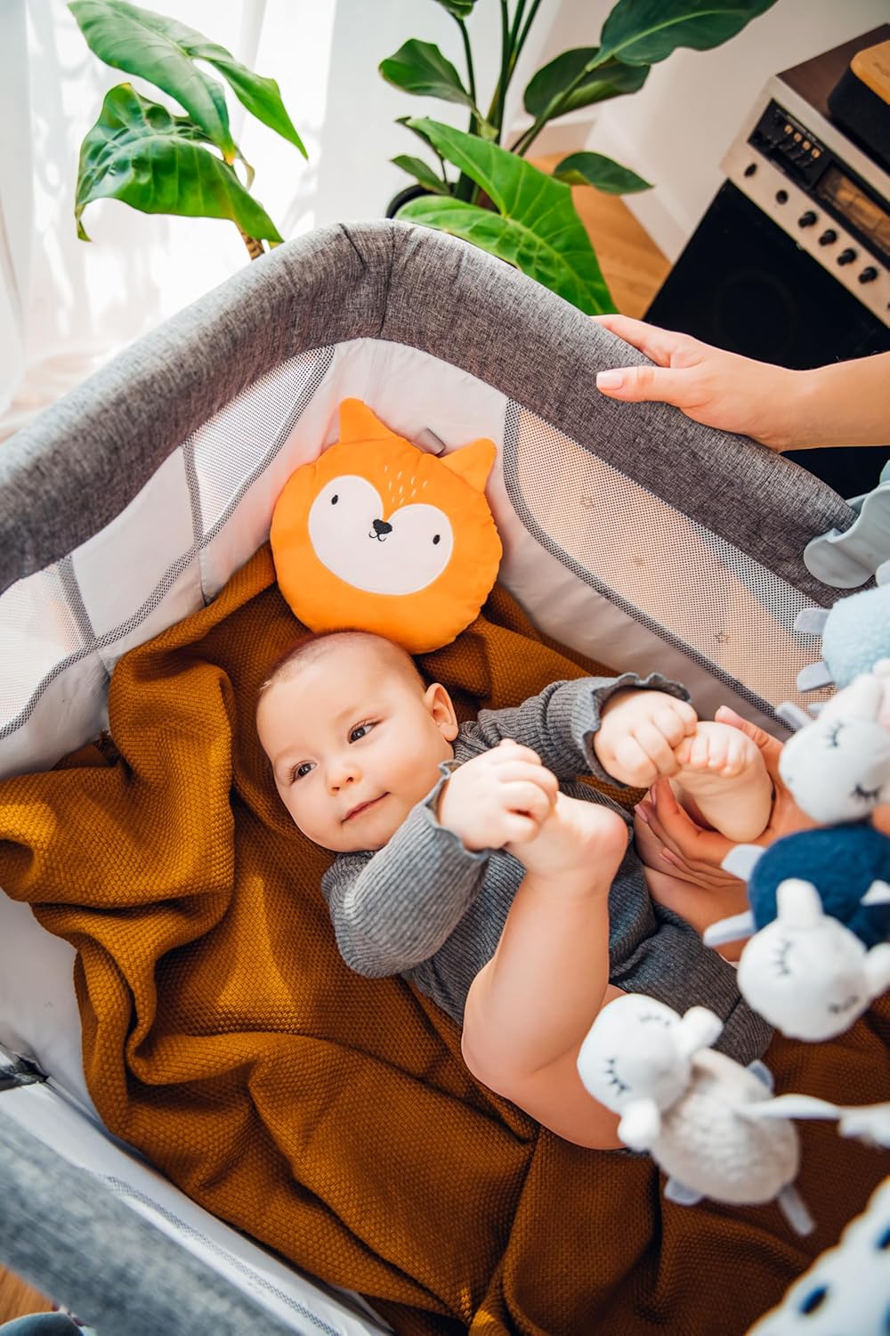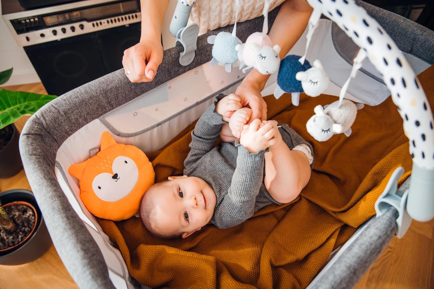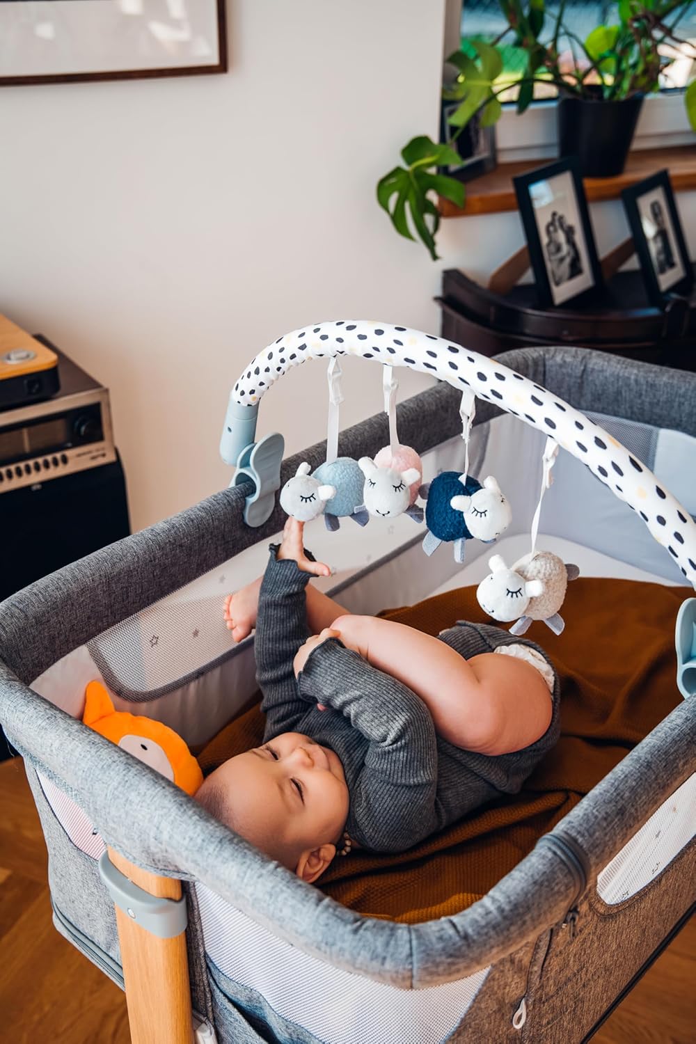 Da 0 a 5 mesi: la gruccia è adatta per neonati, neonati e bambini a partire dal primo giorno di vita fino a circa 5 mesi. Ha le dimensioni di 83 x 6,5 x 4,5 cm e pesa circa 500 g Facile da montare: l'arco è dotato di due pratici morsetti che consentono un facile montaggio a incastro in pochi secondi su una culla, un passeggino, un seggiolino per auto o una culla. Larghezza di montaggio: 35-65 cm Con 4 giocattoli sensomotori: i giocattoli stimolano lo sviluppo motorio e audiovisivo del bambino e la sua percezione nei primi mesi. I giocattoli possono essere rimossi dal gancio e utilizzati separatamente Angolo di inclinazione regolabile: l'archetto ha un angolo di inclinazione regolabile in modo continuo in modo da adattarsi perfettamente alla portata delle mani del bambino, così i giocattoli saranno sempre a portata di mano Igienico: i giocattoli e la custodia possono essere lavati in lavatrice con ciclo delicato. La staffa può essere pulita con un panno umido. Disinfettabile con disinfettanti in commercio