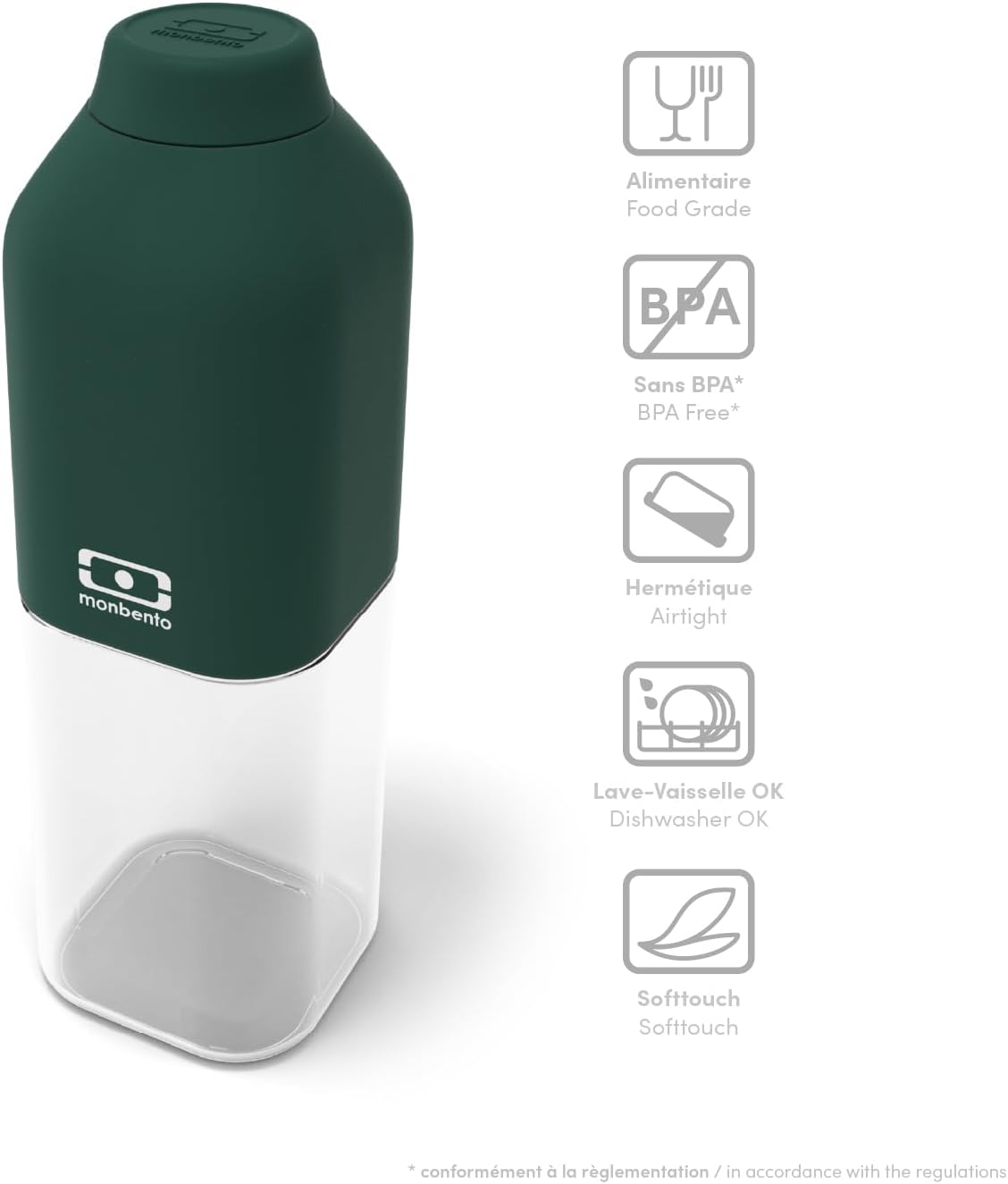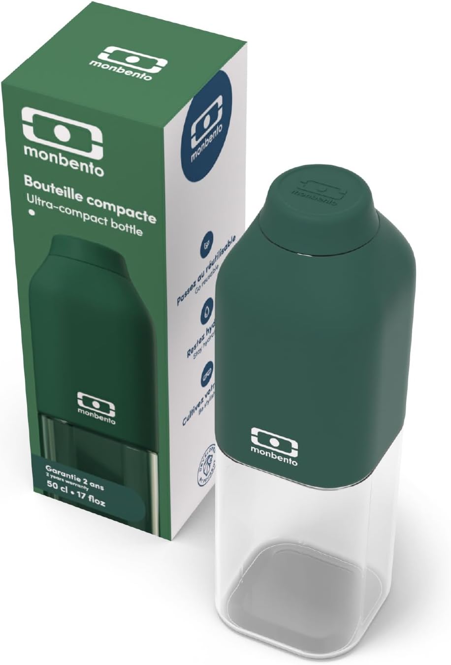 💪 DUREVOLE E RESISTENTE: la borraccia riutilizzabile MB Positive M in verde scuro è garantita senza BPA (secondo la legislazione). È realizzato in Tritan, una plastica di alta qualità che offre una trasparenza simile al vetro. Questo materiale leggero garantisce la robustezza di questa borraccia da 500 ml. 🌟 DESIGN FRANCESE: la forma quadrata e il peso ridotto sono ottimizzati per poter portare facilmente la bottiglia d'acqua ovunque: in borsa, nello zaino o anche in valigia. Ultraleggera, compatta ed ermetica: grazie ad una capacità totale di 500 ml, la bottiglia in plastica riutilizzabile MB Positive M Green Dark ti permette di avere la massima capacità nel minimo spazio! L'apertura a vite con guarnizione in silicone garantisce la chiusura ermetica di questa bottiglia di plastica e mette fine alle perdite sul fondo della borsa. Pratica e comoda da usare: La superficie soft touch rende questa piccola bottiglia di plastica riutilizzabile molto morbida. Grazie alla sua maggiore capacità rispetto alla sorella minore MB Positive S, questa bottiglia di plastica è la compagna perfetta per le tue prossime uscite. Puoi anche mettere la bottiglia MB Positive M da 500 ml in lavastoviglie. 🎁🌲 Regalo riuscito: la bottiglia di plastica riutilizzabile MB Positive M in verde scuro e il suo colore è intenso come quello degli alberi della foresta più belli. Facile da abbinare al resto del set da pranzo, questa bottiglia d'acqua è davvero la ciliegina sulla torta 🚗✌ GARANZIA E SERVIZIO CLIENTI: La bottiglia d'acqua riutilizzabile MB Positive M in verde scuro ha una garanzia di 2 anni. Dalla sede monbento con sede in Francia, siamo a tua disposizione in caso di necessità, pronti ad accompagnarti nell'utilizzo dei tuoi nuovi pranzi on the go!