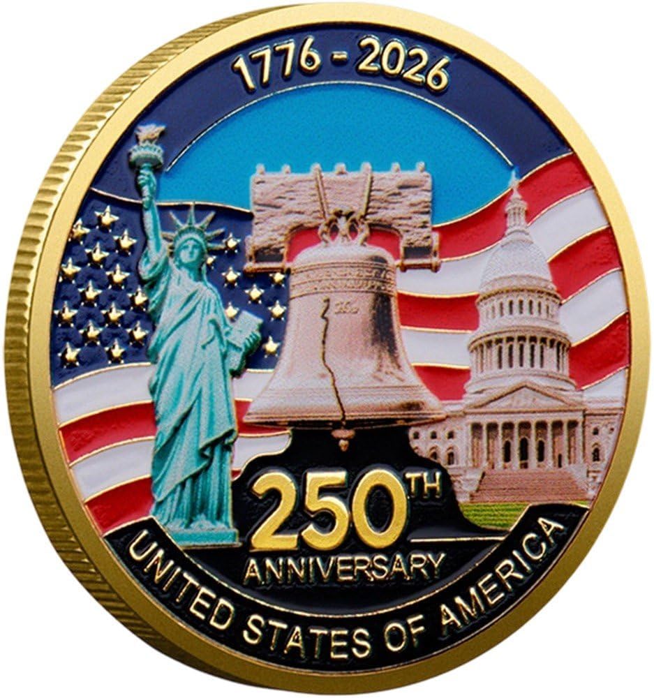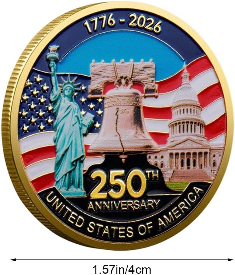 Realizzato in metallo resistente con incisioni dettagliate e una finitura audace. Moneta commemorativa per celebrare il 250° anniversario degli Stati Uniti. Un omaggio iconico coraggio, sacrificio e alla . Ideale esporre, regalare o come ricordo duraturo 'orgoglio degli Stati Uniti. Un grande regalo per qualcuno che ha servito questo Paese e non si è mai voltato indietro.
