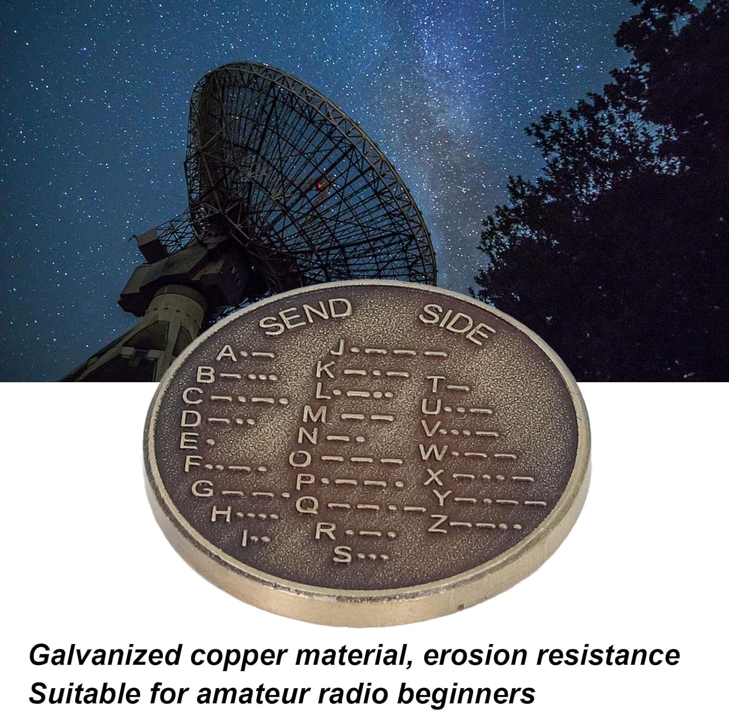 [IMPARA FACILMENTE IL CODICE MORSE] Questa moneta di addestramento al codice Morse CW è progettata per rendere l'apprendimento del codice Morse divertente e coinvolgente.La moneta presenta chiari simboli del codice Morse, che ti consentono di esercitarti e padroneggiare il linguaggio di crittografia senza sforzo. sia per i principianti che per gli appassionati, funge sia strumento educativo che affascinante oggetto collezione. [GIOCO DI INDOVINAMENTO INTERATTIVO] Trasforma l'apprendimento in un gioco emozionante con questa moneta in codice Morse.Sfida i tuoi amici e familiari a decodificare i messaggi nascosti, rendendo il processo di padronanza del codice Morse interattivo e divertente.Ideale per feste, aule o esercitazioni solista, questa moneta aggiunge un elemento di eccitazione al tuo viaggio di apprendimento. [DESIGN COMPATTO E LEGGERO] Misurando solo 30x30x3 mm, questa moneta in codice Morse è compatta e leggera, rendendola facile trasportare in tasca o in borsa. Le sue dimensioni portatili ti consentono di esercitarti con il codice Morse sempre e ovunque. Nonostante le sue piccole dimensioni, la moneta è resistente e costruita per durare, offrendo praticità senza compromettere la qualità. [RAME ZINCATO DI ALTA QUALITÀ] Realizzata in rame zincato di alta qualità, questa moneta in codice Morse è resistente all'erosione e all'ossidazione, garantendo una lunga durata.Il materiale robusto previene la deformazione, rendendolo adatto a vari ambienti.La finitura elegante aggiunge un tocco di eleganza, rendendolo un ottimo per gli appassionati del codice Morse. [VERSATILE ED EDUCATIVO] Che tu sia un radioamatore principiante, un appassionato del linguaggio di crittografia o un genitore alla ricerca di uno strumento educativo unico, questa moneta in codice Morse è perfetta per te. È un oggetto versatile che suscita curiosità e apprendimento sia nei bambini che negli adulti, rendendolo una preziosa aggiunta a qualsiasi collezione o classe.