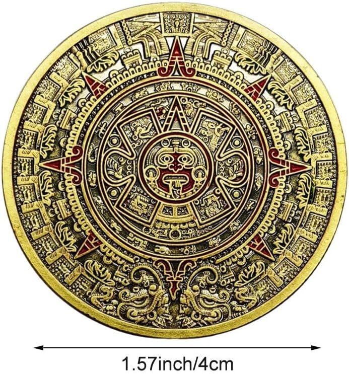 Display versatile: posiziona una moneta accattivante a casa, in ufficio o in azienda per attirare positività e prosperità, oppure portala con te come moneta personale. Adatto per la collezione: lo stile vintage è squisito ed è perfetto per completare libri illustrati e oggetti da collezione da aggiungere alla tua collezione! Design straordinario: questa moneta fortunata da 1,57 pollici di diametro è incisa con una delicata profezia maya azteca, che simboleggia potere, ricchezza e buona fortuna. Materiale di alta qualità: realizzato in materiale di alta qualità, ad alta resistenza, resistente all'usura, antiruggine e durevole. Le monete commemorative non possono essere utilizzate come normali monete d'oro. Regalo ideale: la squisita moneta portafortuna è un regalo premuroso e significativo per amici, familiari o colleghi e augura loro felicità e successo.