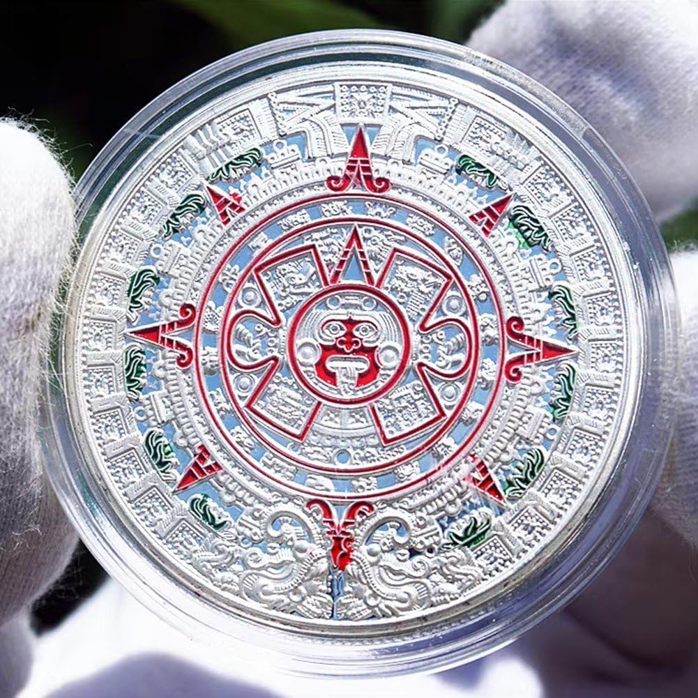 Adatto alla collezione: lo stile vintage è squisito e perfetto per arricchire libri illustrati e oggetti collezione con cui arricchire tua collezione! Esposizione versatile: posiziona questa moneta accattivante nella tua casa, in ufficio o nel negozio per attirare energia positiva e prosperità, oppure portala con te come ricordo. Materiale di alta qualità: realizzato con materiale di alta qualità, altamente resistente, antiusura, antiruggine e durevole. Le monete commemorative non possono essere utilizzate come normali monete d'oro. Design straordinario: questa moneta portafortuna dal diametro di 1,57 pollici è incisa con una delicata profezia Maya-Azteca, che simboleggia potere, ricchezza e buona fortuna. Regalo ideale: questa squisita moneta portafortuna è un regalo premuroso e significativo per famiglia o i colleghi, per augurare loro buona fortuna e successo.