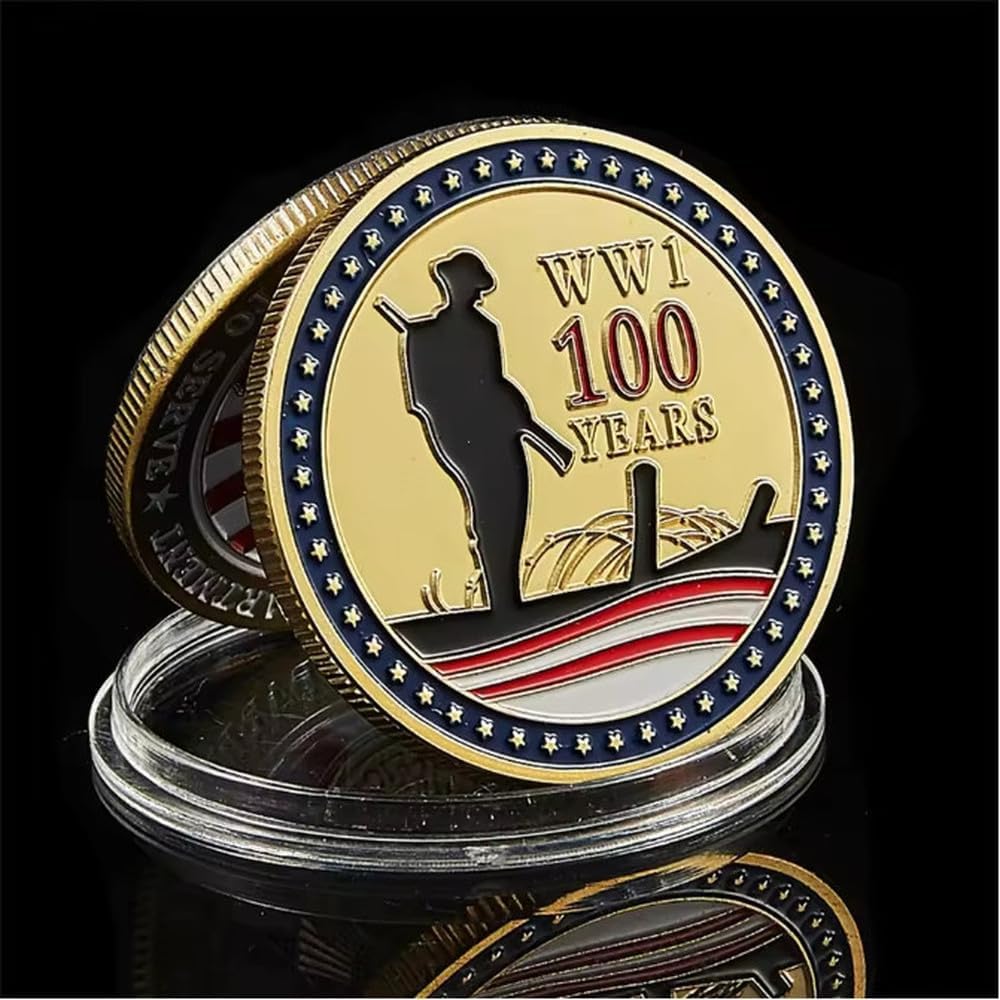 Monete Commemorative 1918-2018, Monete da Collezione Placcate in Oro per Il Centenario della Prima Guerra Mondiale, Monete da Sfida Mondiale