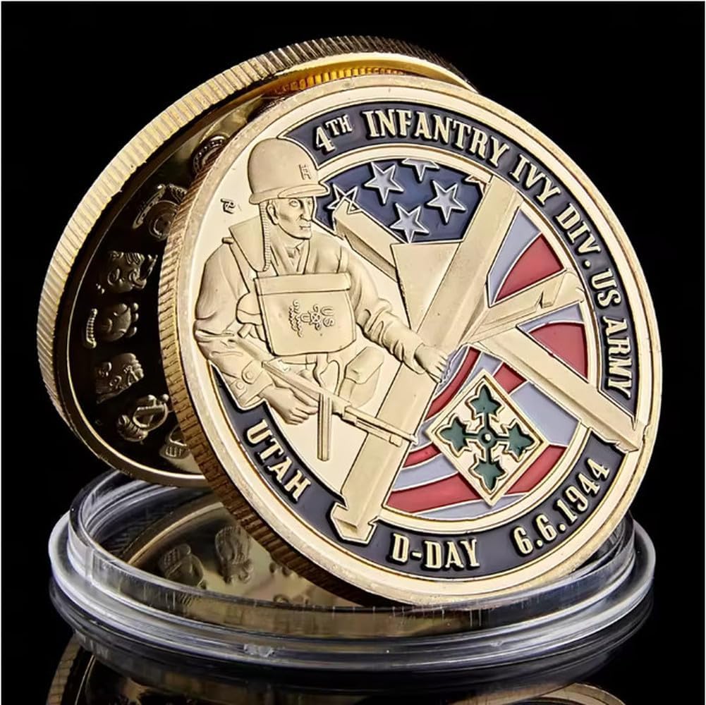 Monete Commemorative 1944.6.6 4A Divisione Ivy dell'Esercito degli Stati Uniti, Moneta da Sfida Placcata in Oro, Collezione di Monete del D-Day dello Utah, Regali