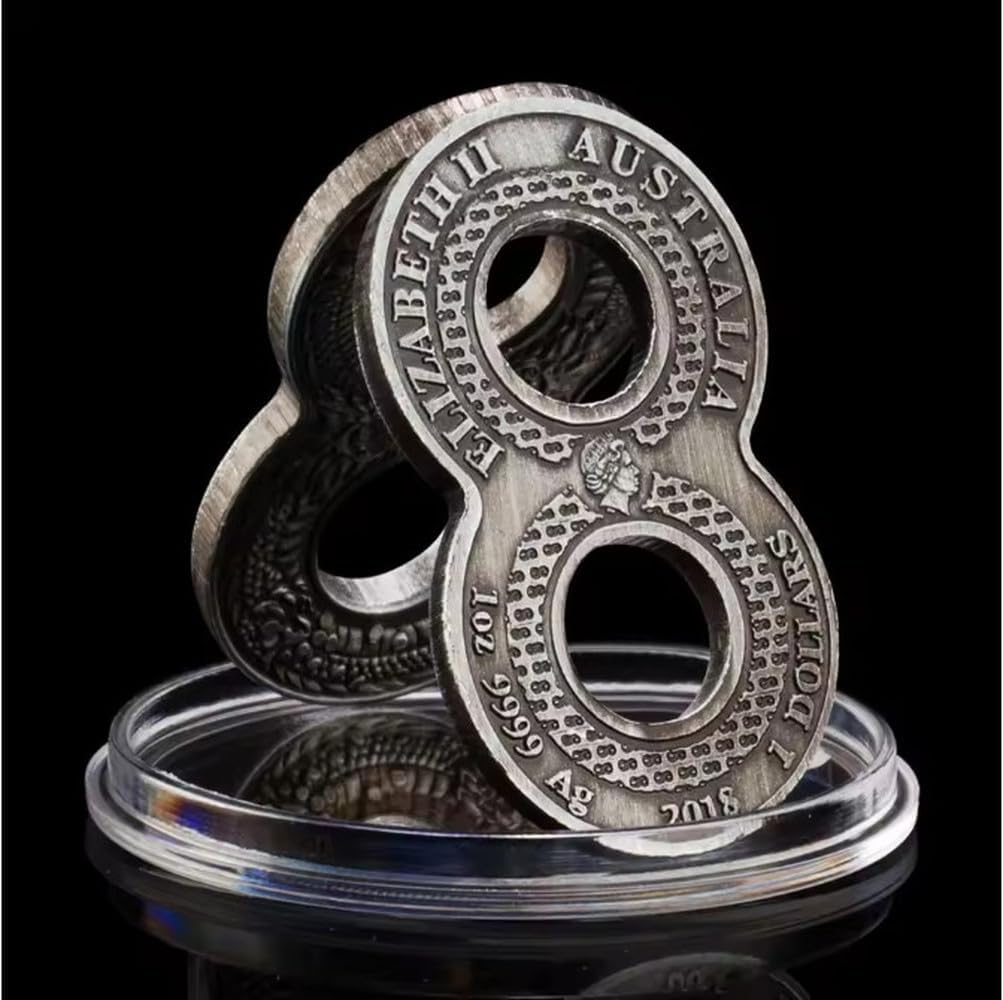 Monete Commemorative 2018, Moneta da Sfida Placcata in Argento Antico con Drago Australiano, A Forma di 8, Collezione di Regali in Metallo Elisabetta II
