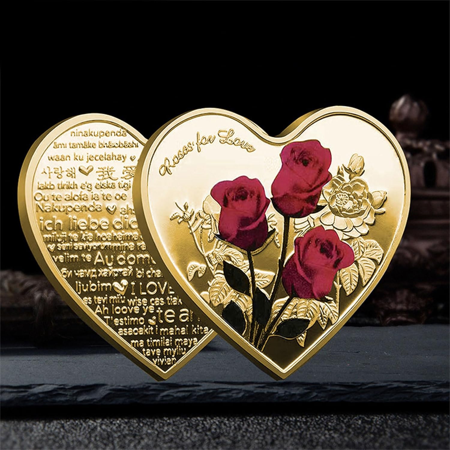 Mostra tuo amore con questa raffinata moneta in metallo con cuore unico a forma cuore, regalo perfetto per esprimere tua sensazione. progettazione a doppia faccia della moneta d'amore presenta modello da lato e diversi tipi "I Love You" dall'altro 52 tipi), esprimendo forte amore. Adatto a persone come coppia, coniugi, amanti, amici ecc. Che vogliono mostrare loro apprezzamento e loro sentimento. A custodi sentimento dietro questa moneta metallo, significativi che saranno tesoro per anni a venire. Realizzata in metallo resistente con meticolosa artigianato, questa moneta vanta cuore distintivo a forma fascino a qualsiasi ambiente.